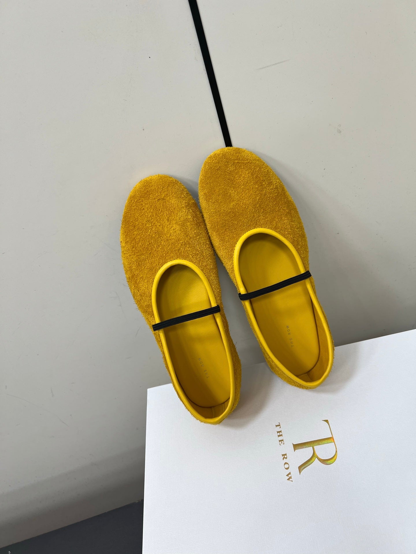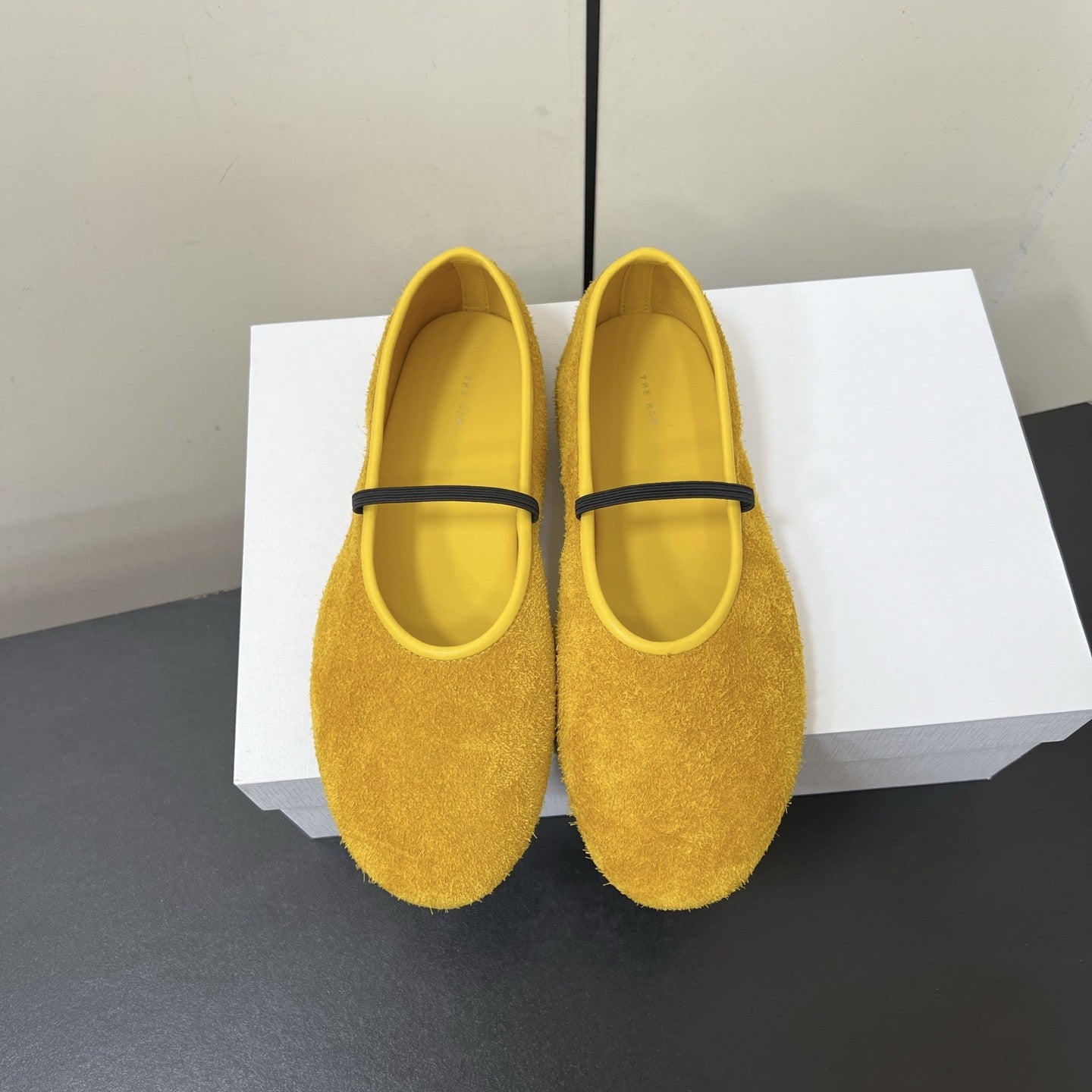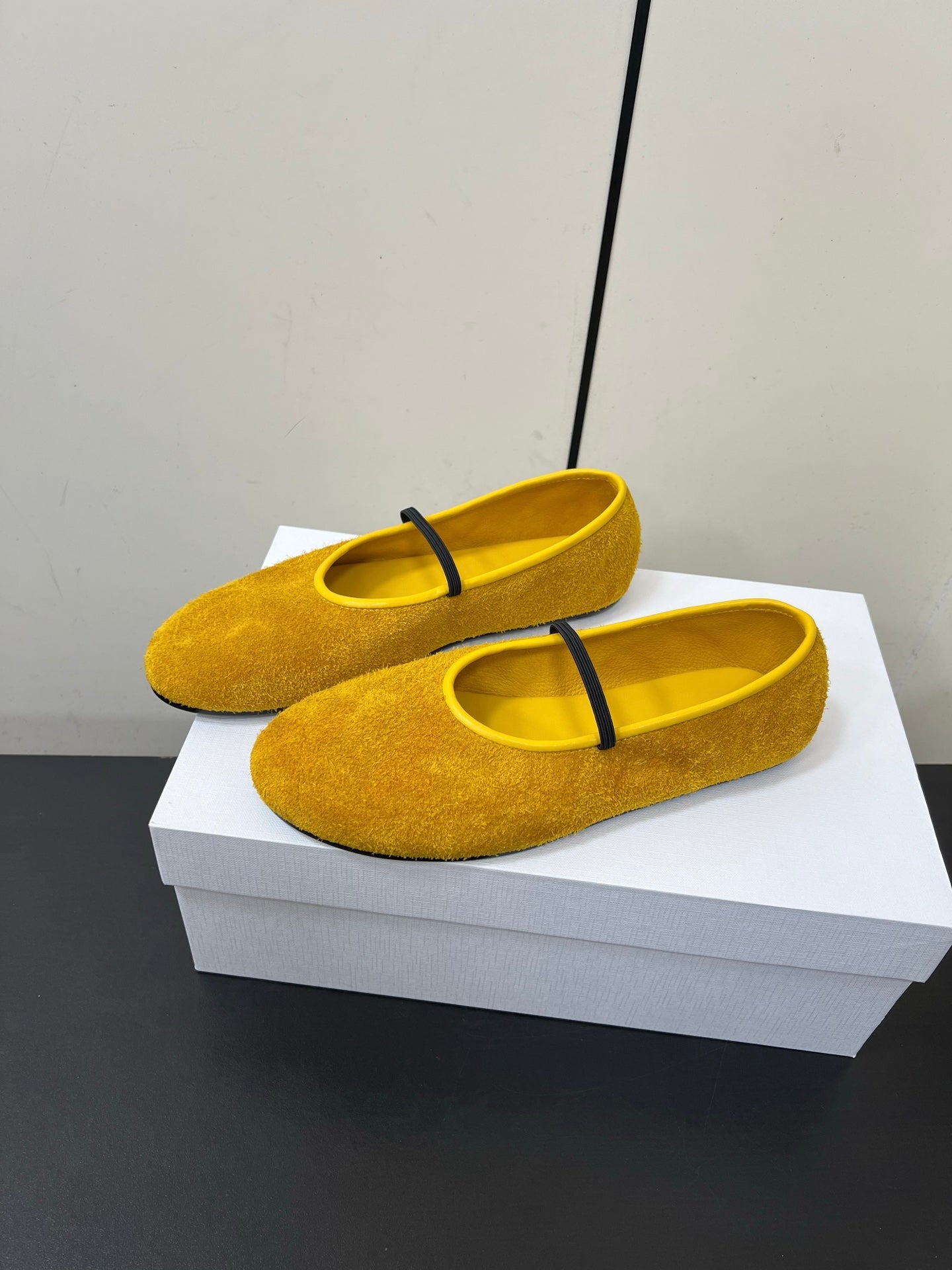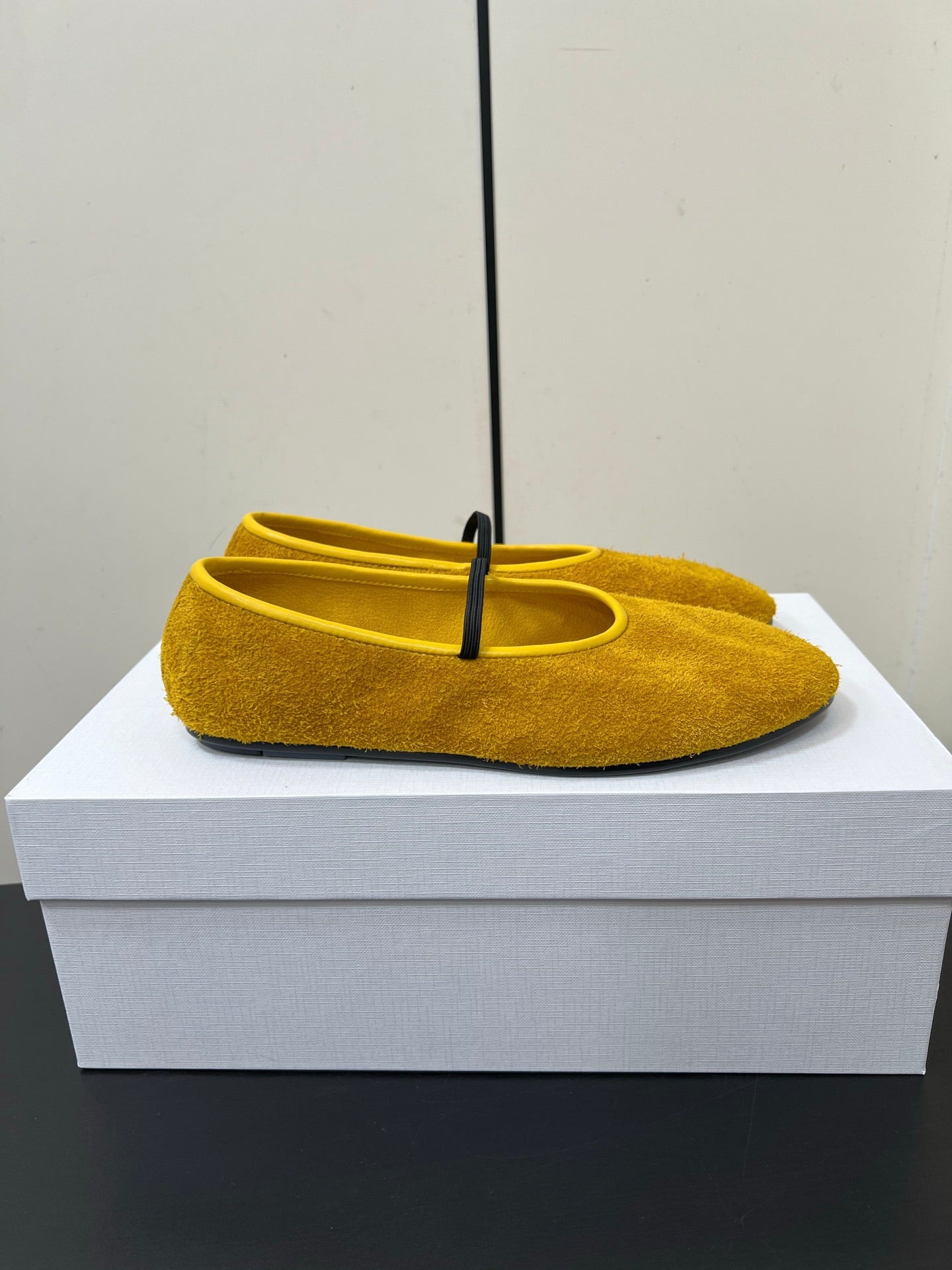 Scarpetta da ballo elastica in pelle scamosciata color ambra e oro 340037