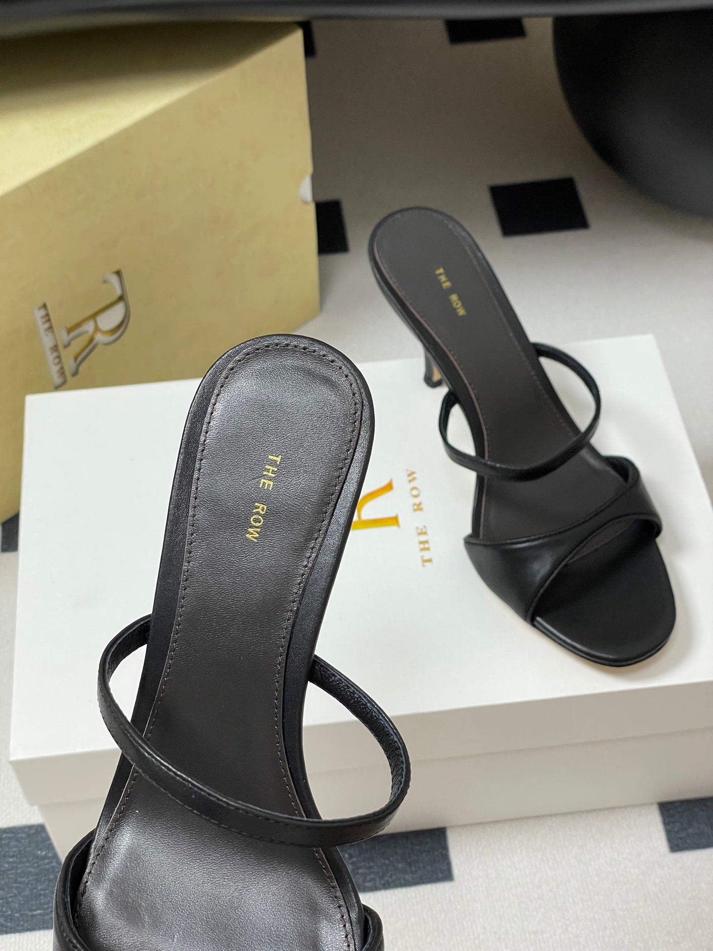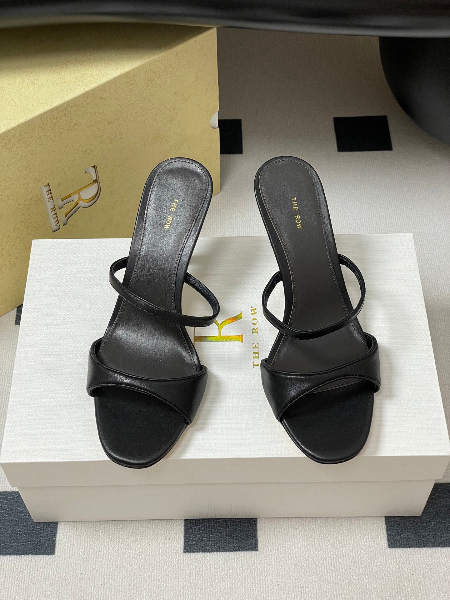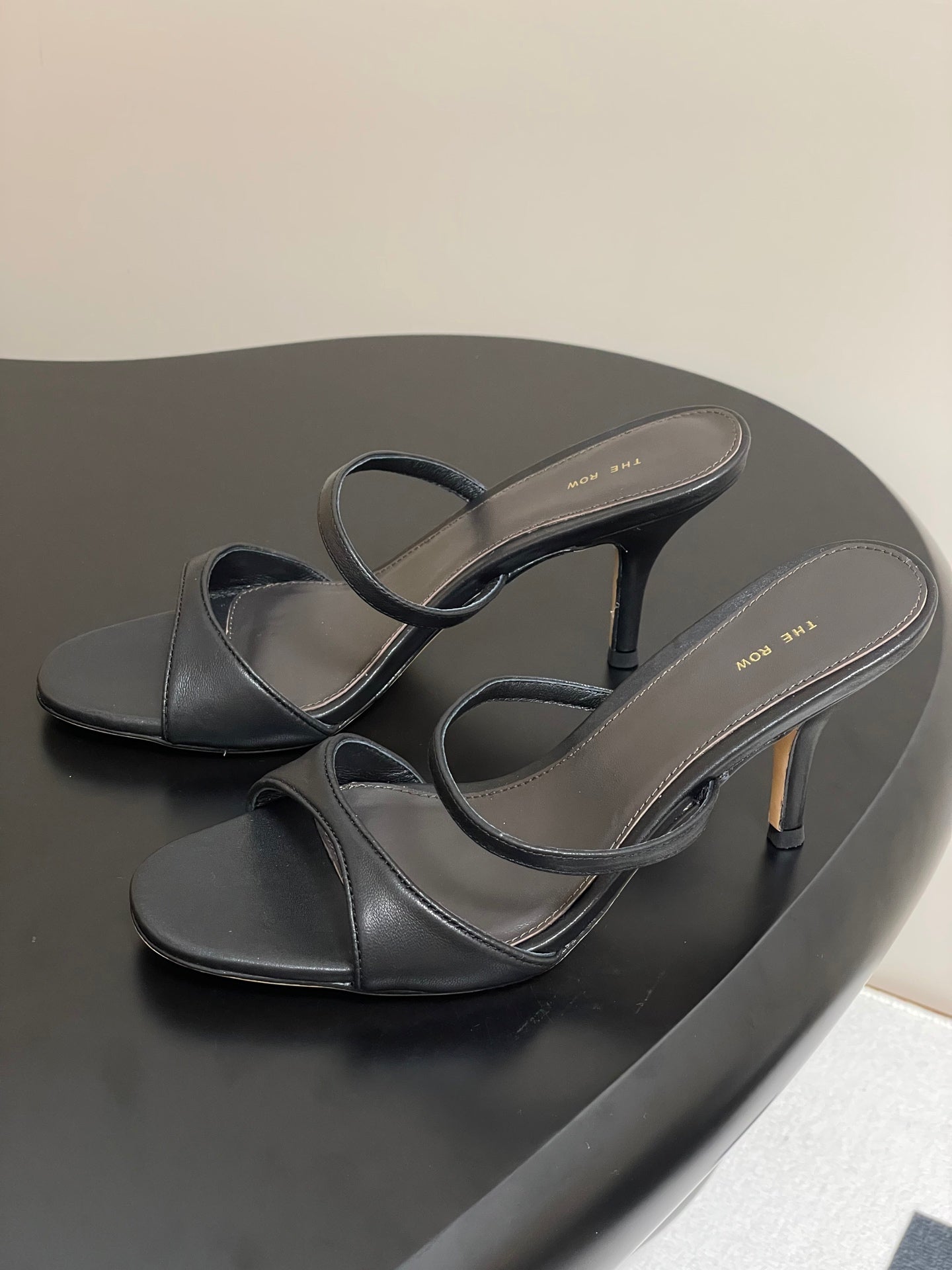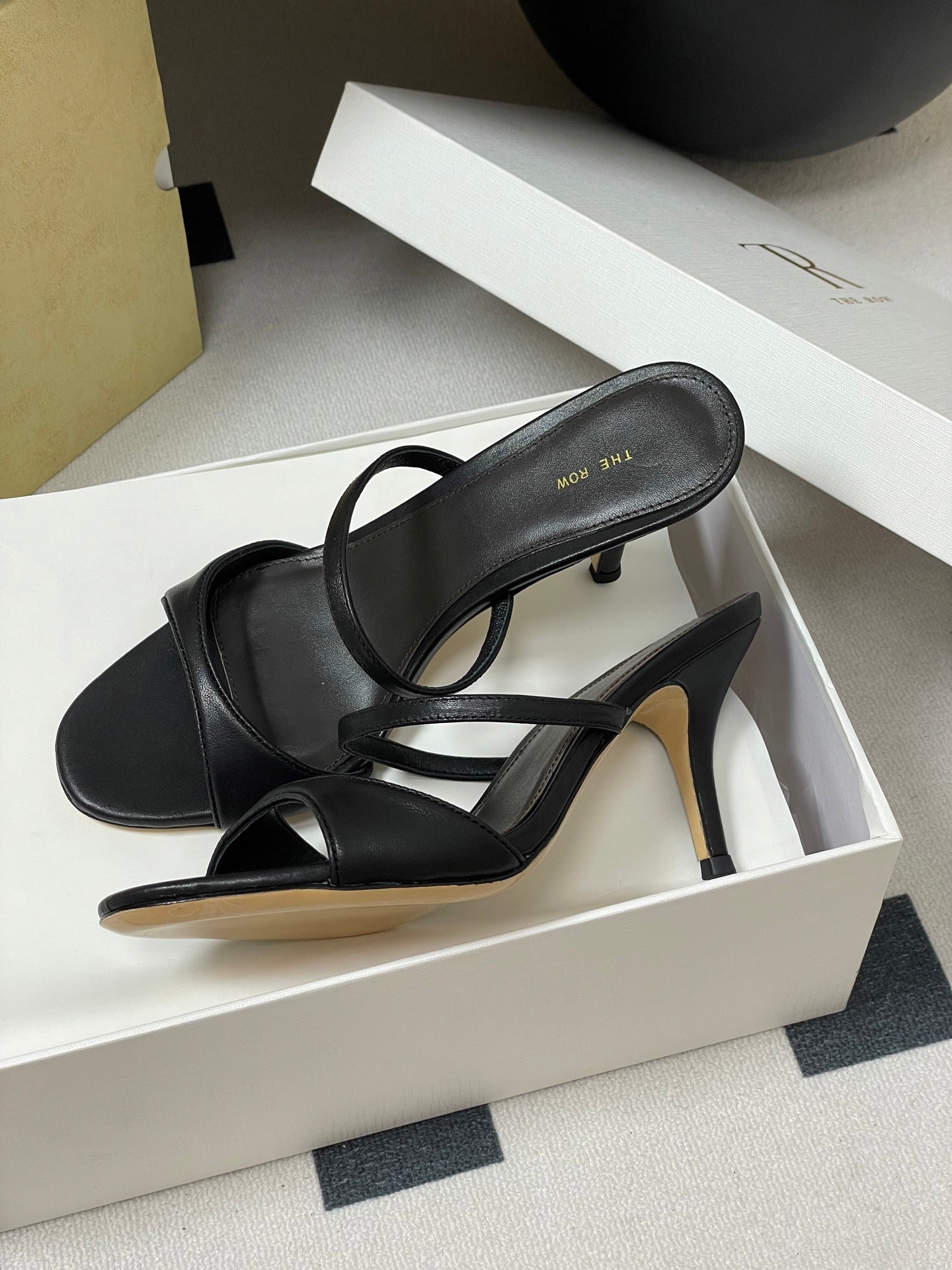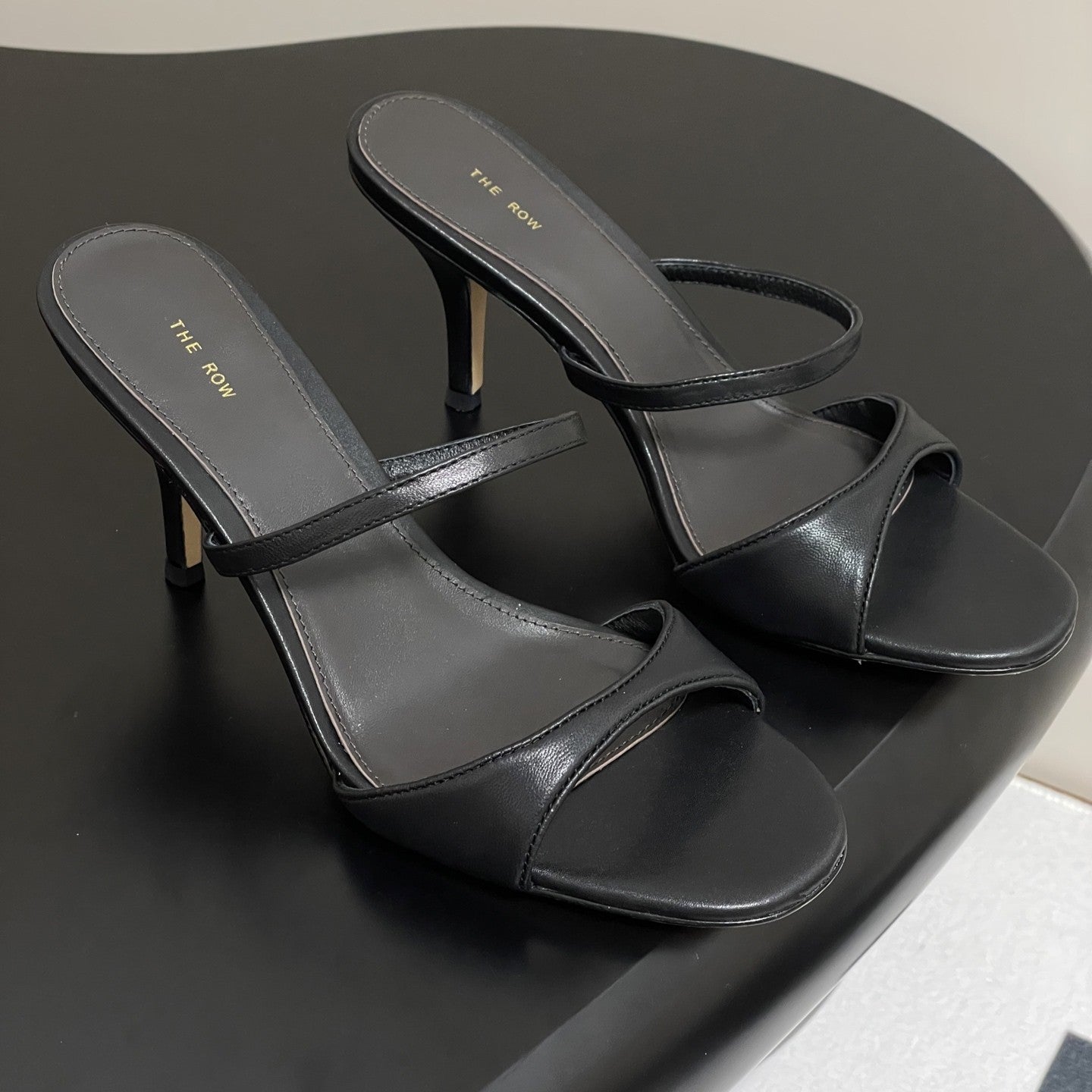Sandali con tacco alto e cinturino The Row 25S, 85 mm, in pelle di pecora nera 286208