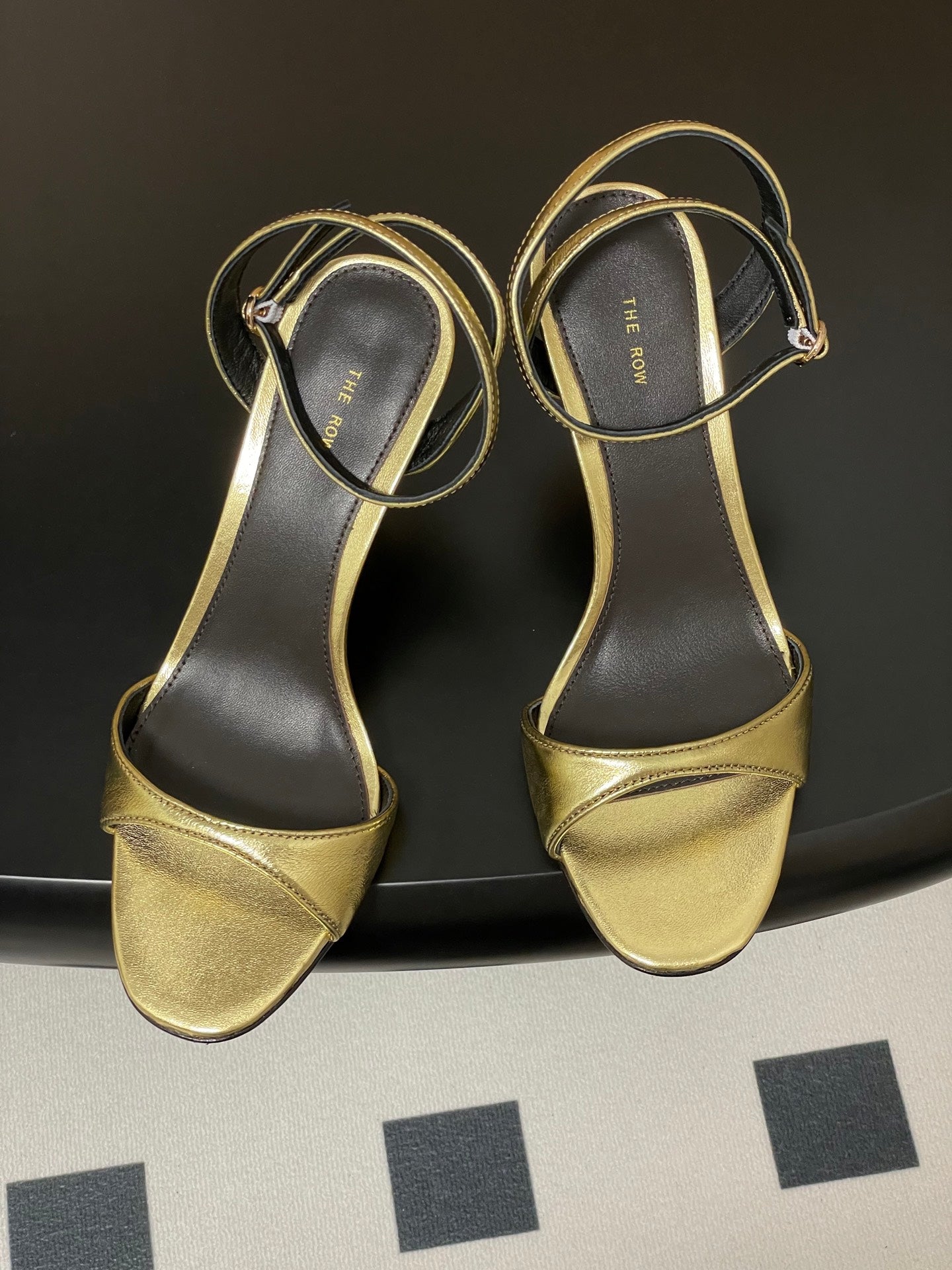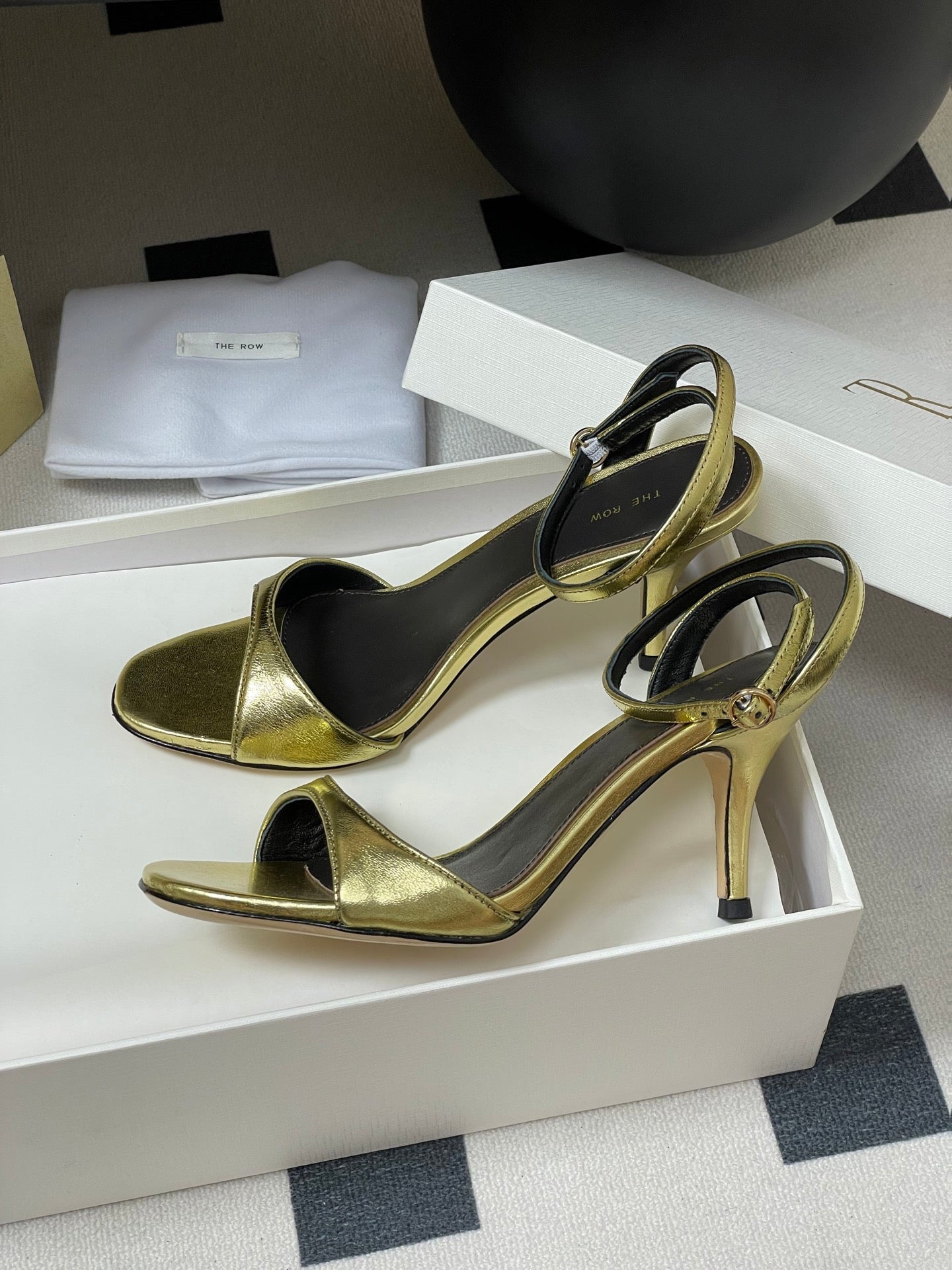 Sandali con tacco alto e cinturino The Row 25S 85 mm in pelle di vacchetta metallizzata nera e oro 286193