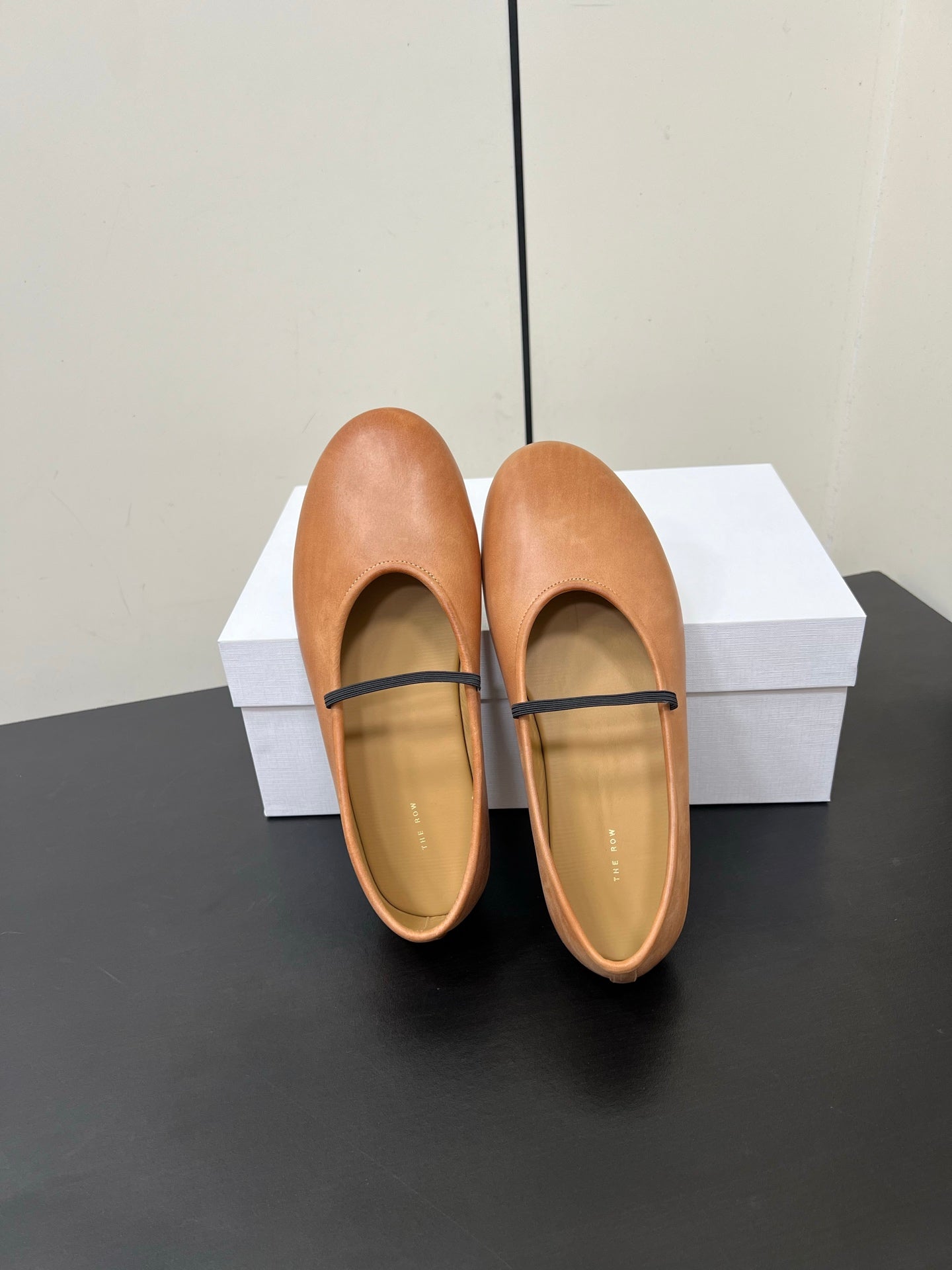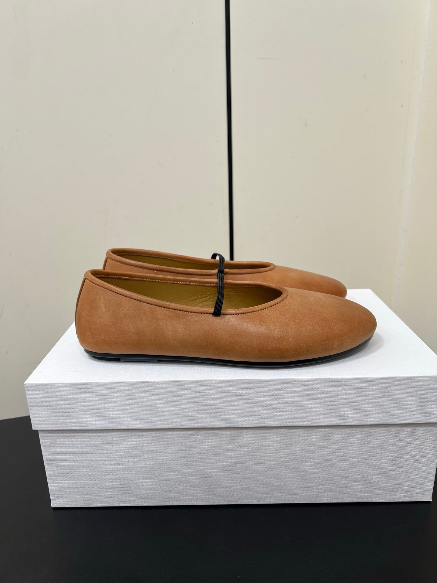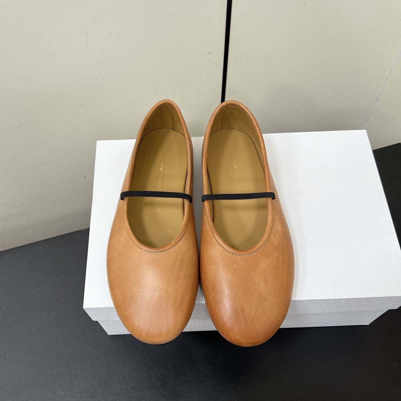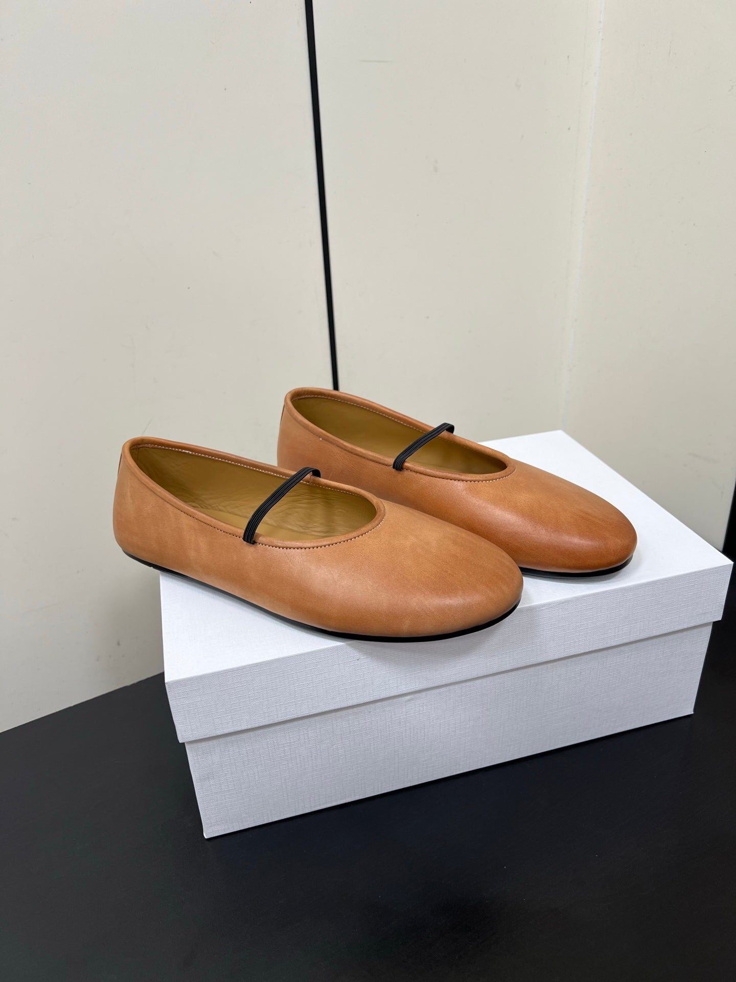 Scarpetta da ballo elastica The Row in pelle di vitello color oro 340035