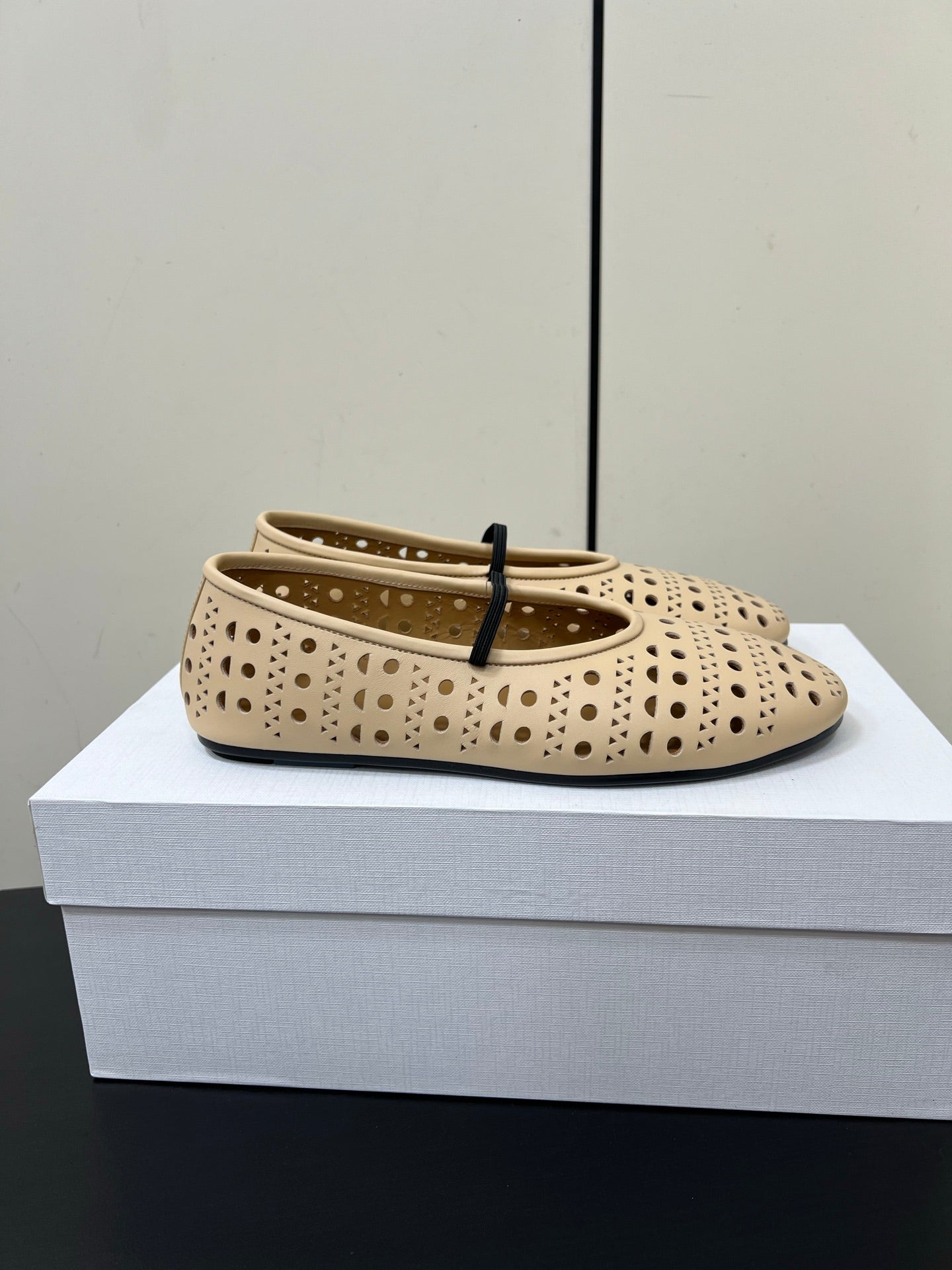 The Row Garden Mary Janes Flats Beige Pelle di vitello 340032