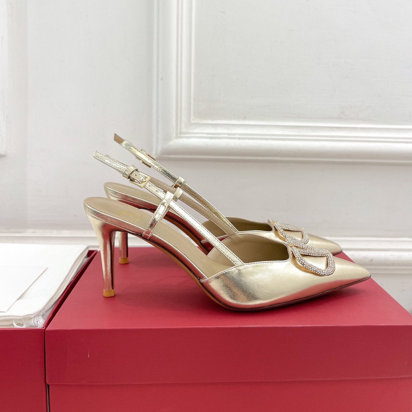 décolleté vlogo slingback 80 in pelle di vitello metallizzata oro