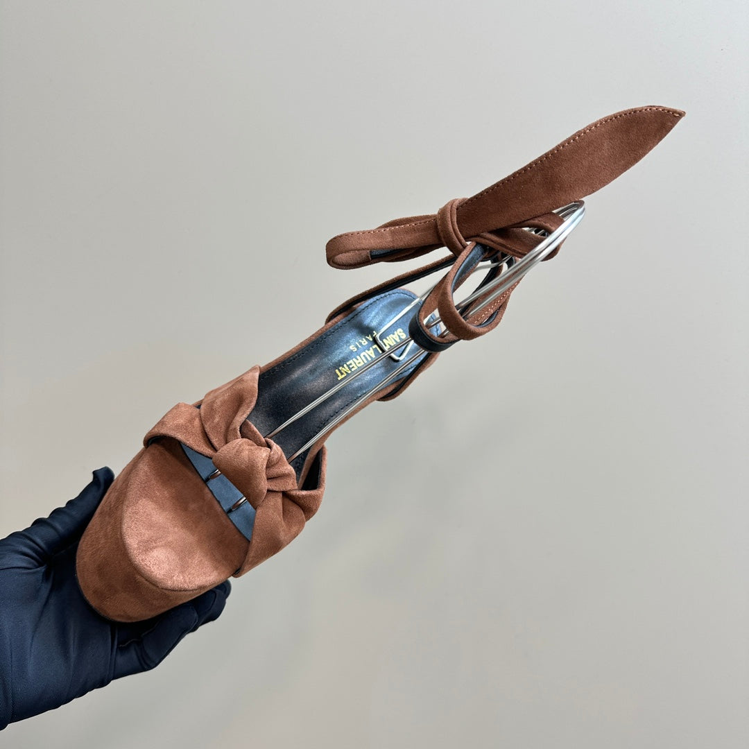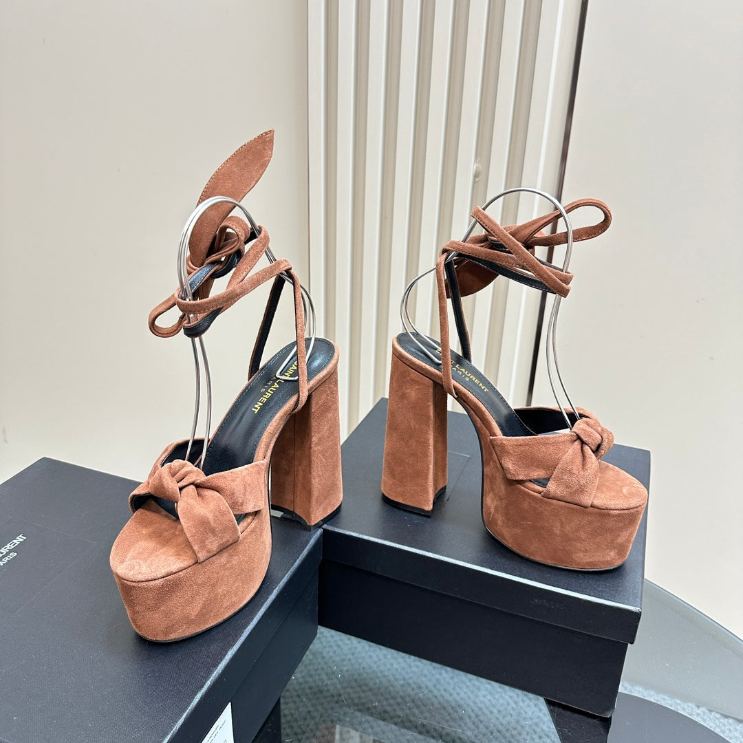 SANDALI CON PLATEAU BIANCA IN CAMOSCIO MARRONE SIENA