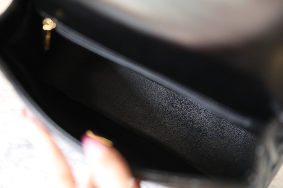 Borsa a patta piccola 24B con manico superiore, 25 cm, in pelle di agnello nera