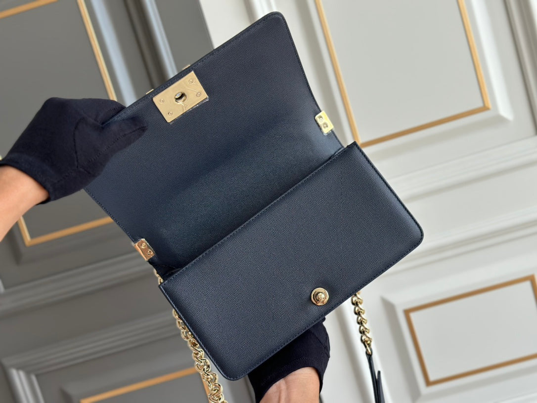 ragazzo taglia media 25 blu scuro chevron caviale ghw