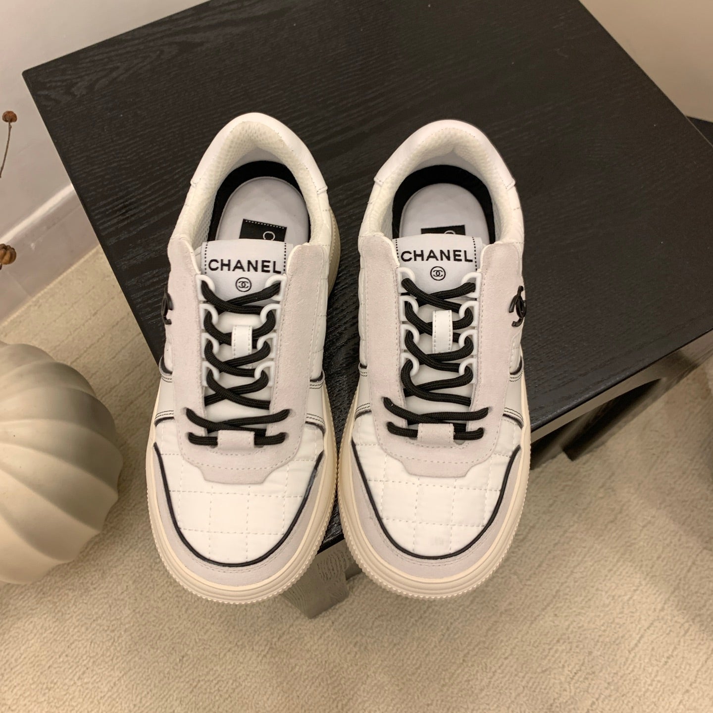 CC Alexander McQueen Sneakers Cream Gray Black Leather and Ceiling Fabric 537191