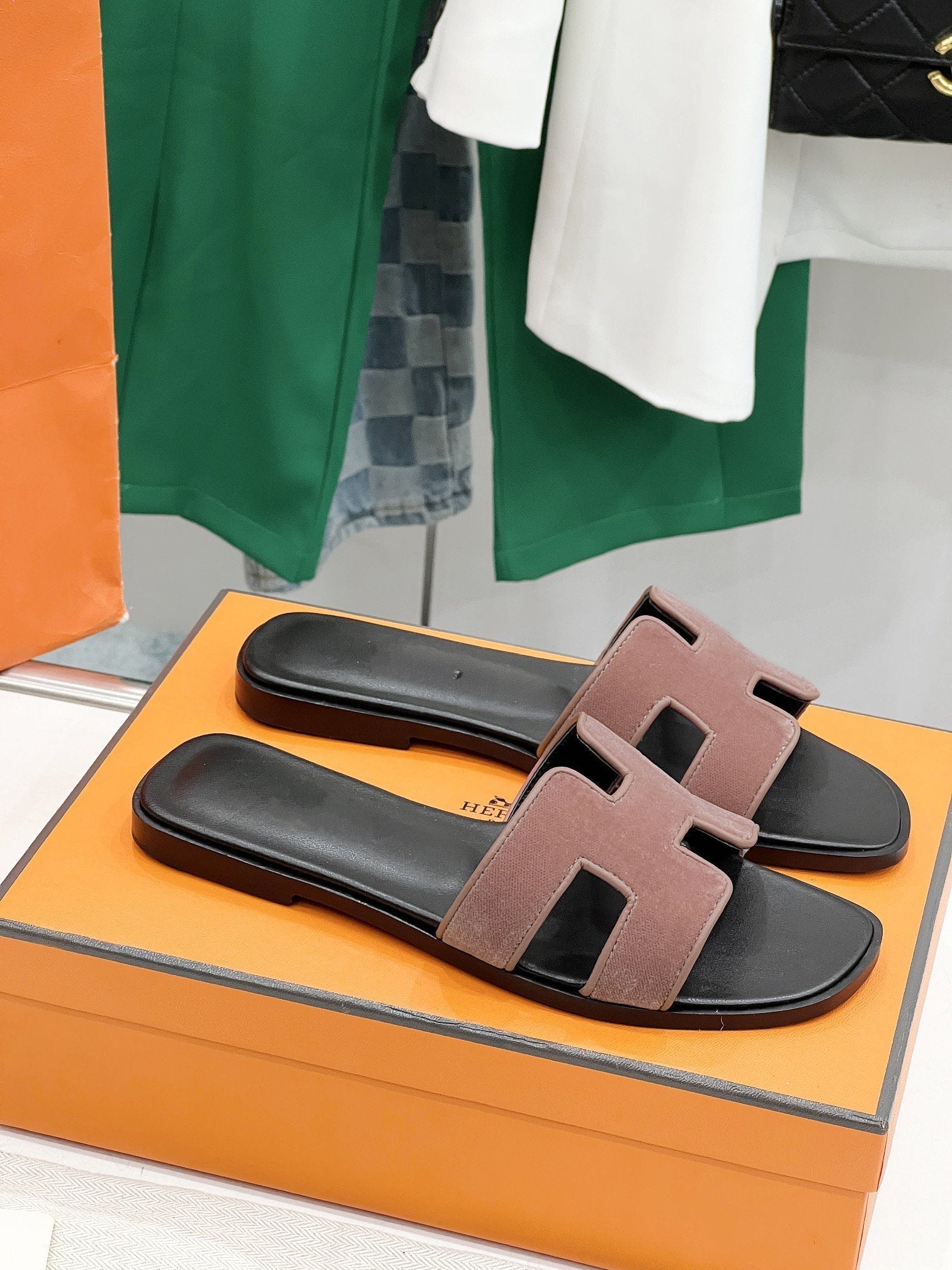 - Material: Sandal in velvet goatskin with iconic "H" cut-out.