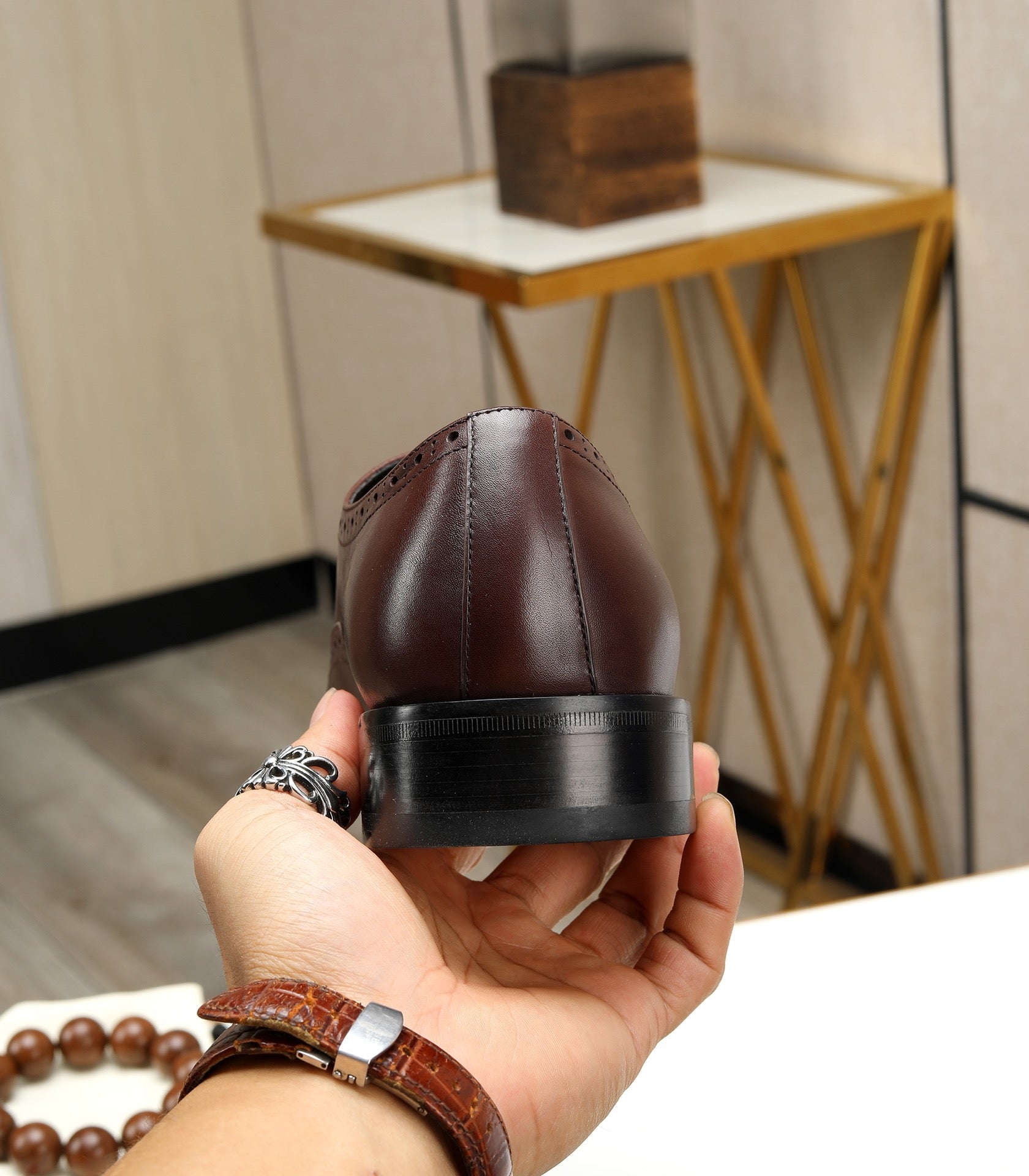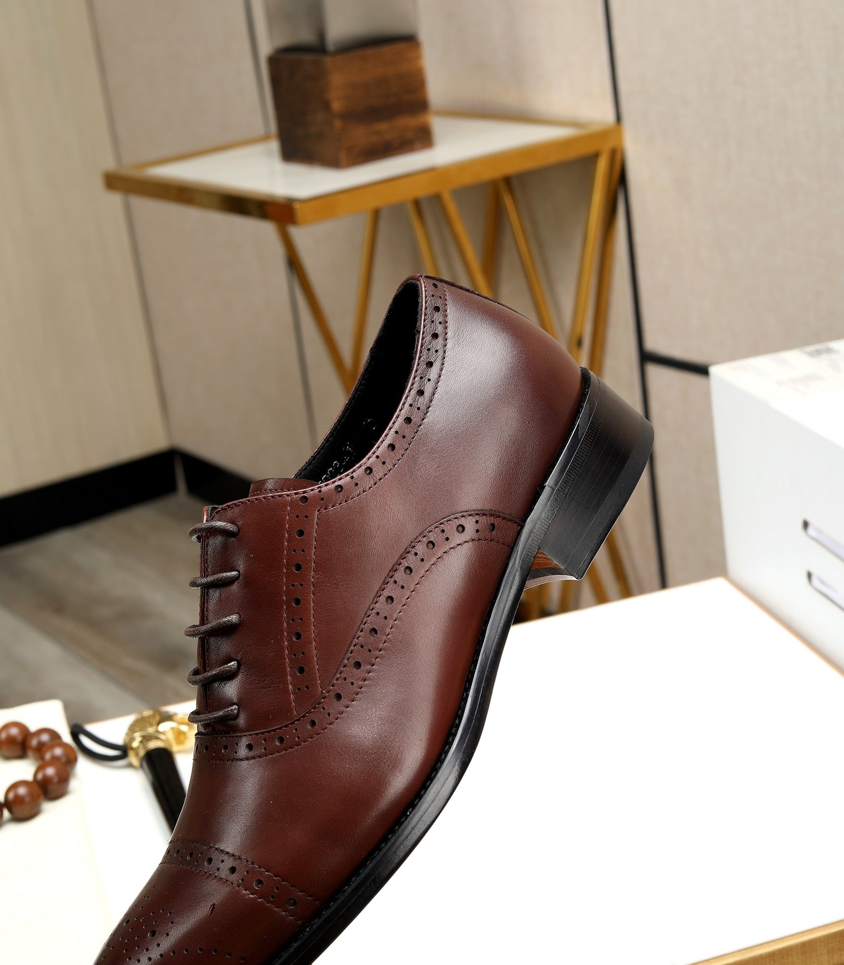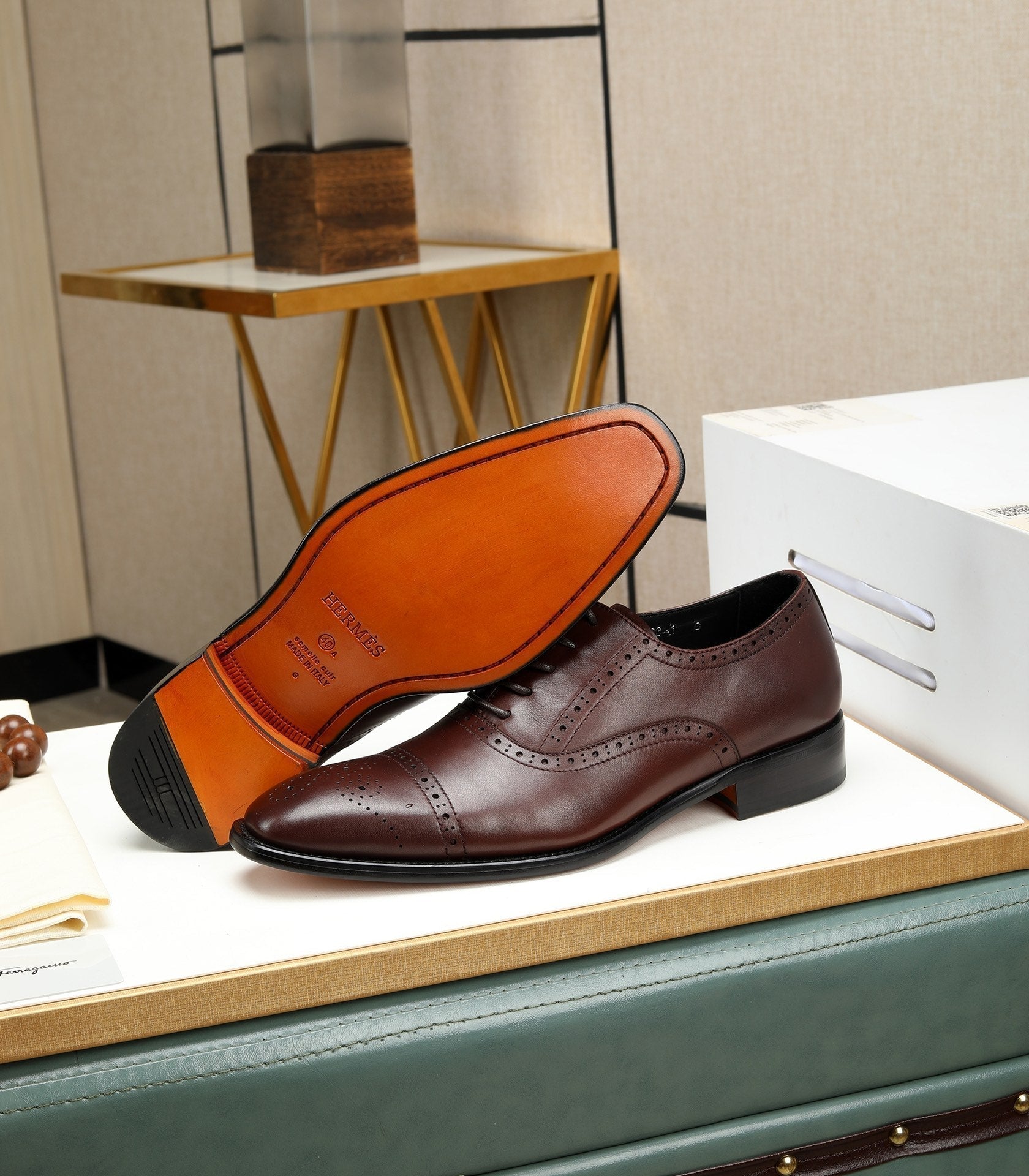 HM OXFORD LACE-UP RUSSET WITH PATTERN CALFSKIN