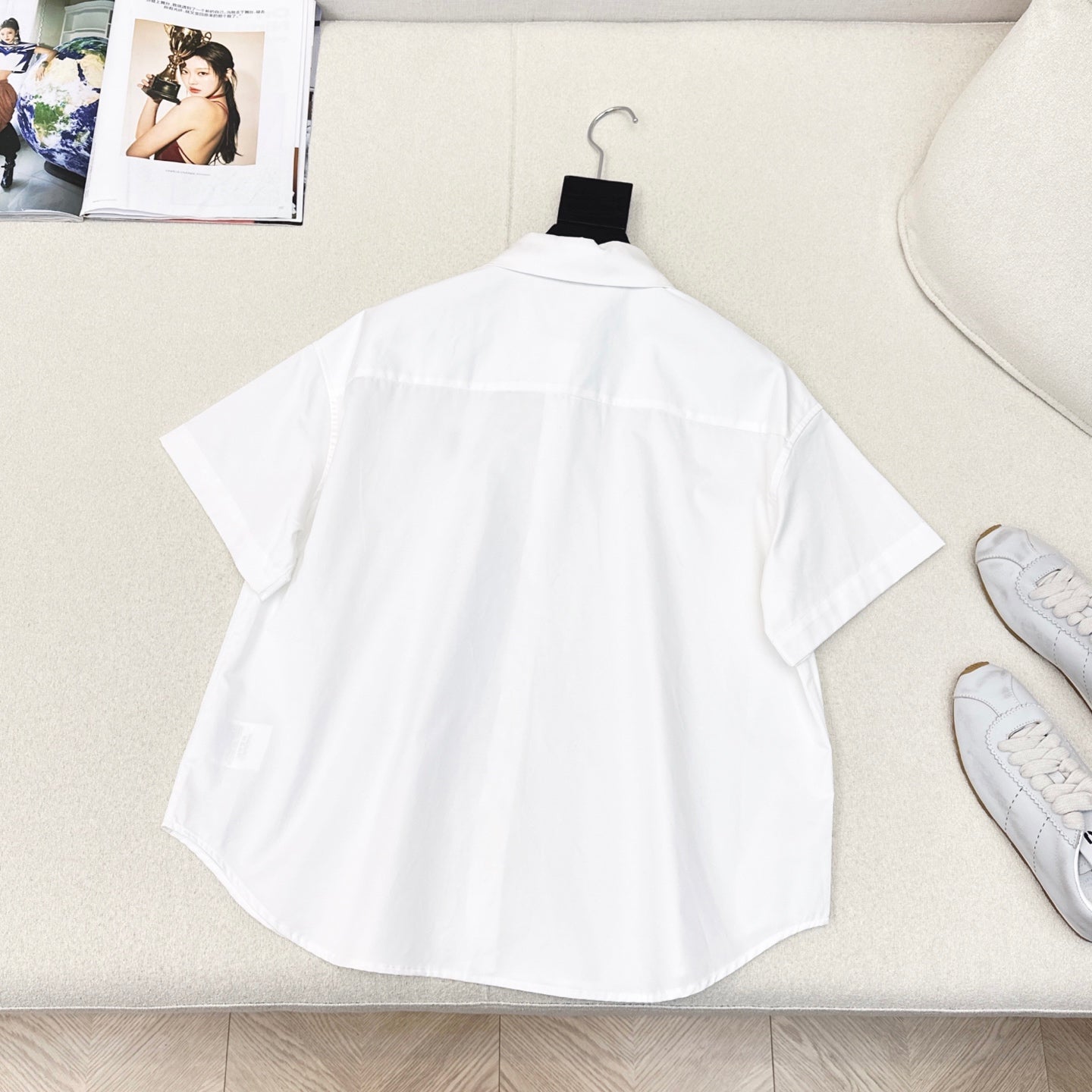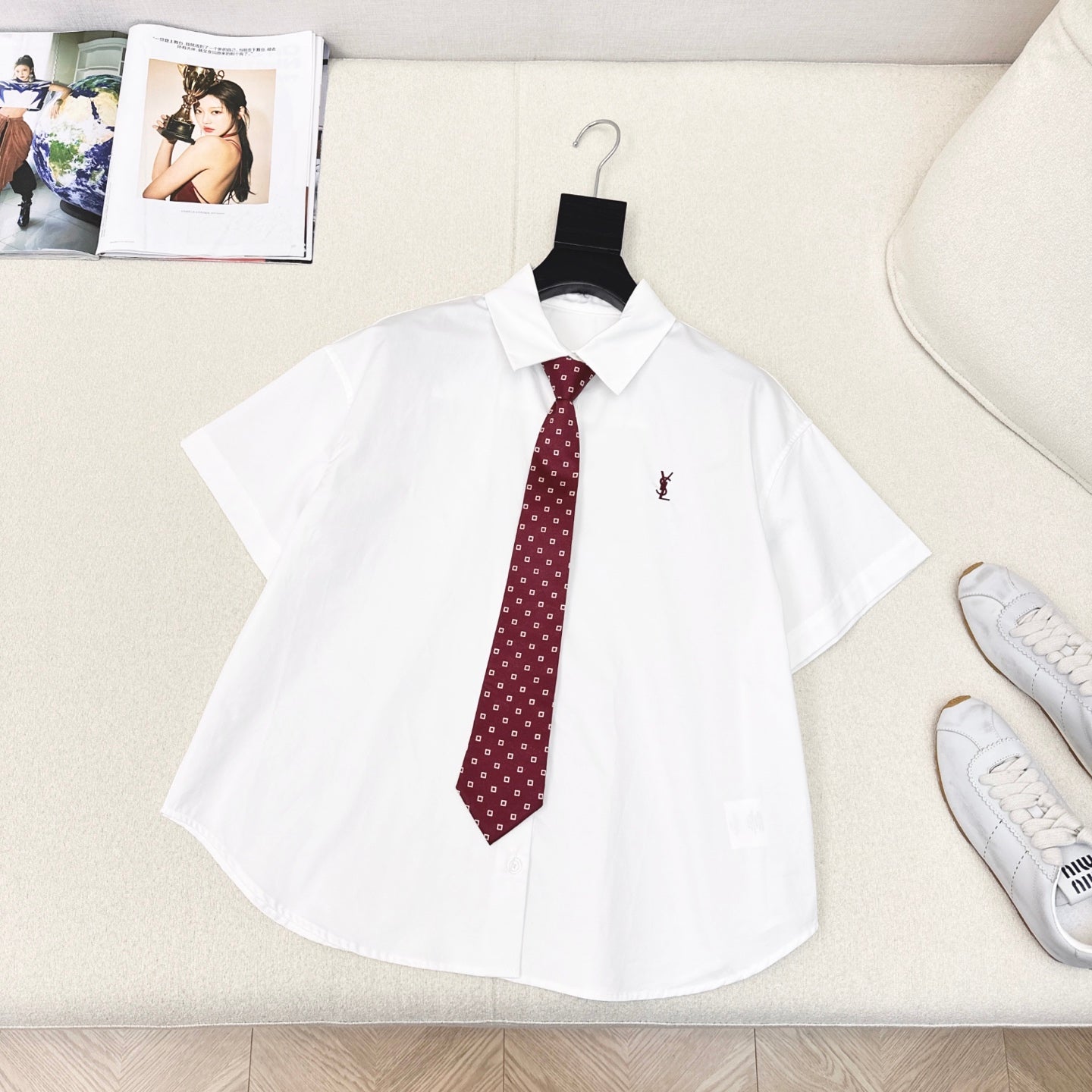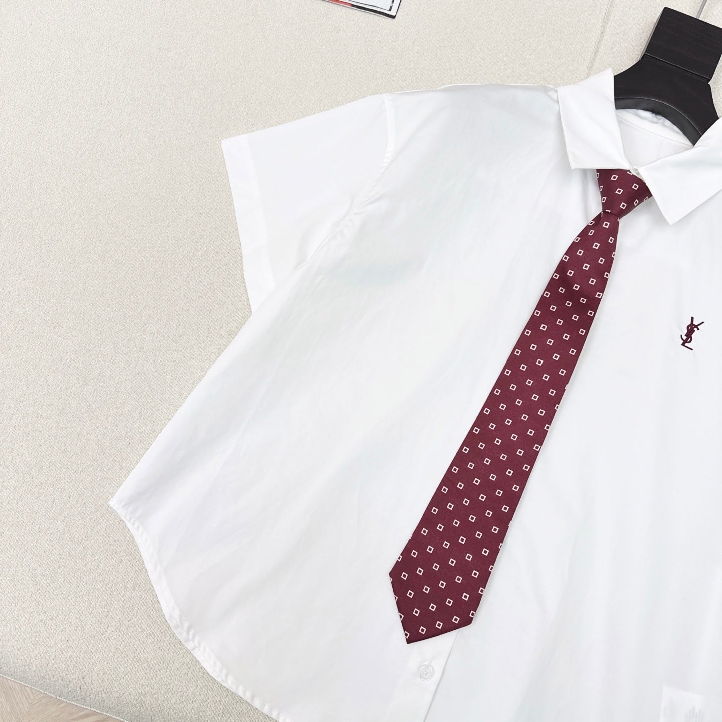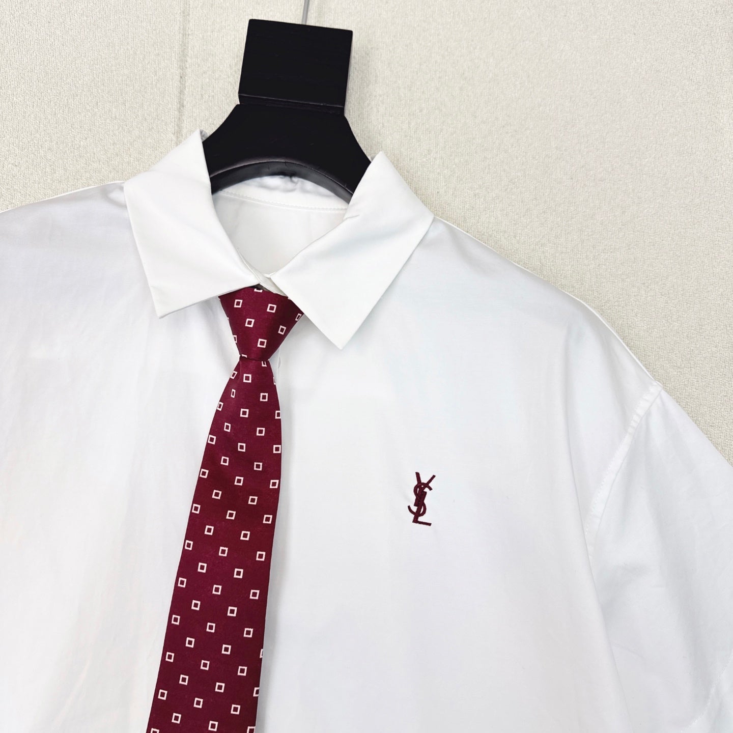YSL 25 Polka Dot Tie Short-sleeved Shirt White Red Cotton 544580