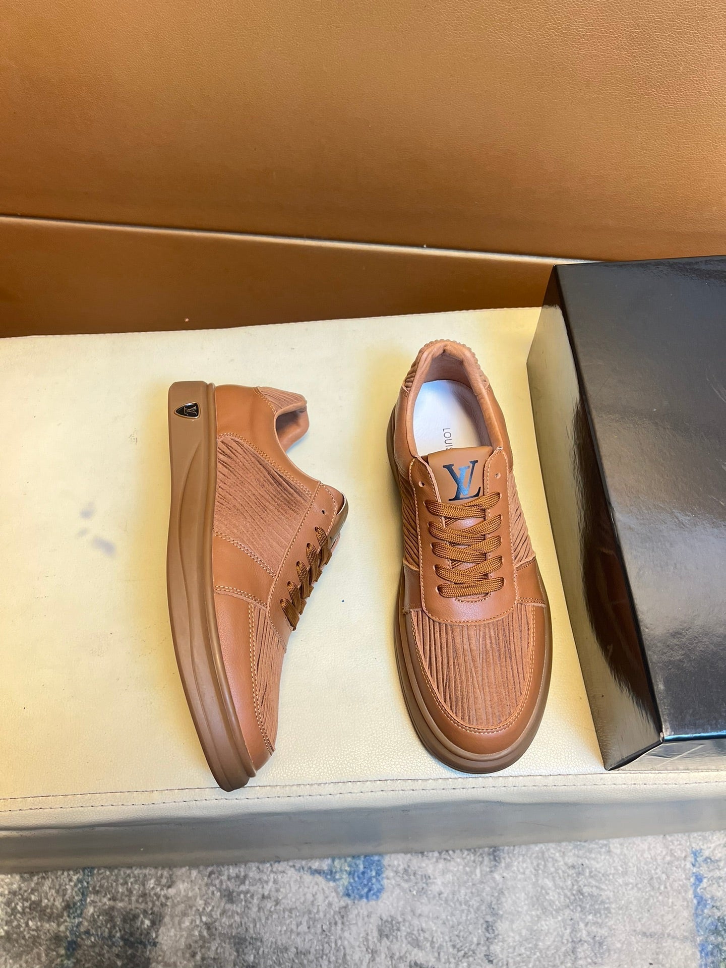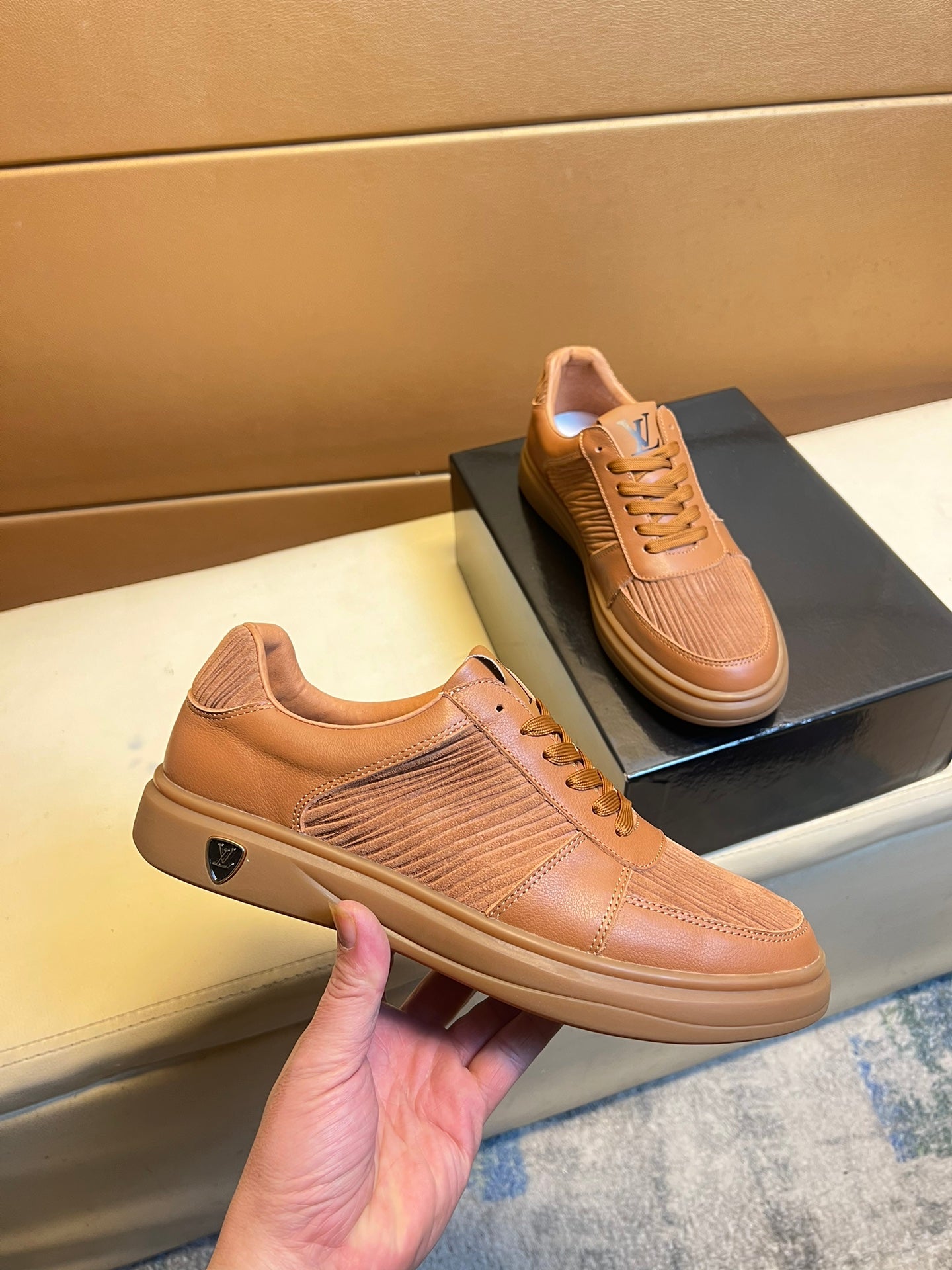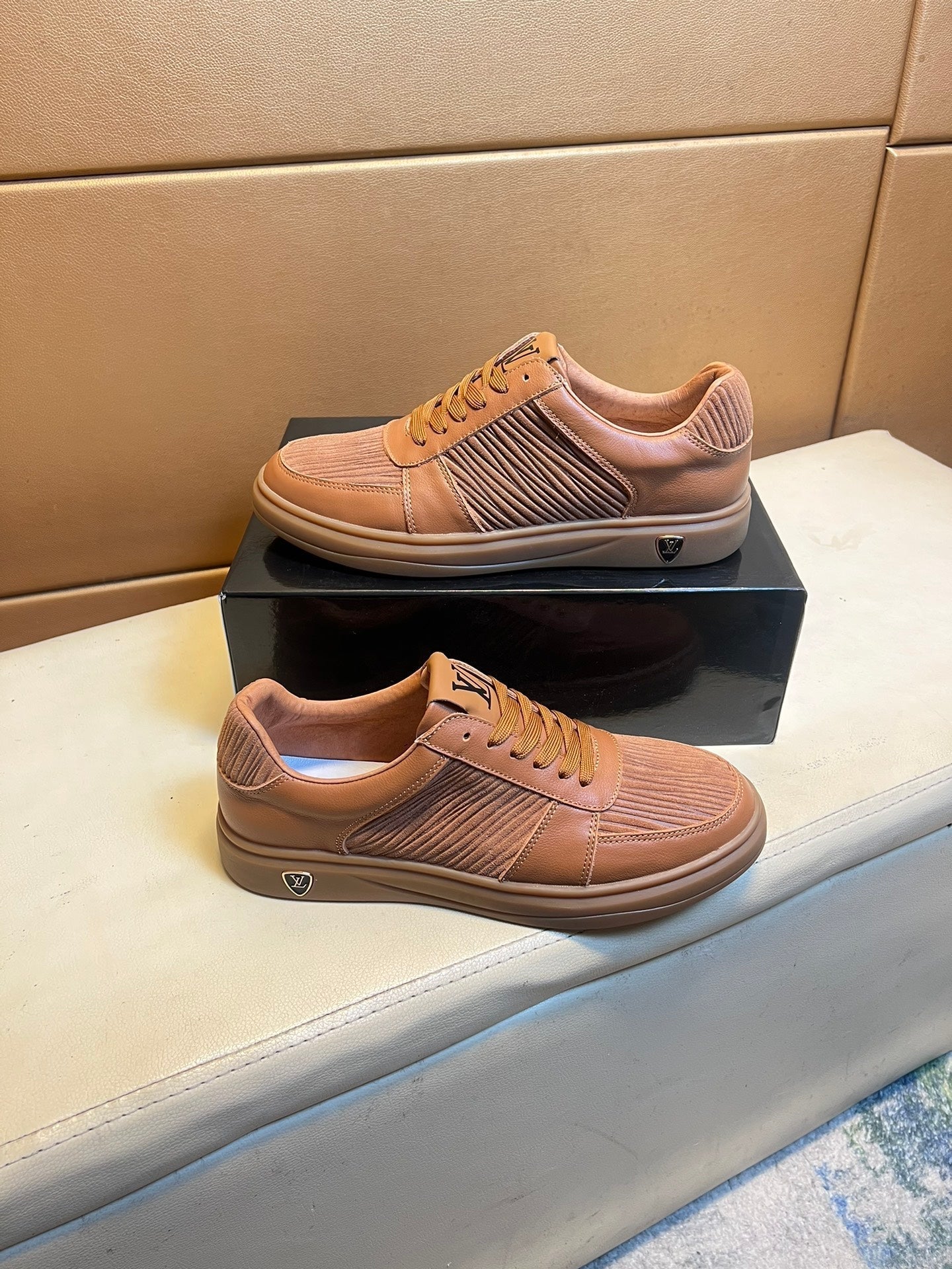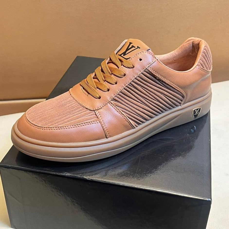 LV SNEAKERS IN RUSSET BROWN CALFSKIN AND SUEDE