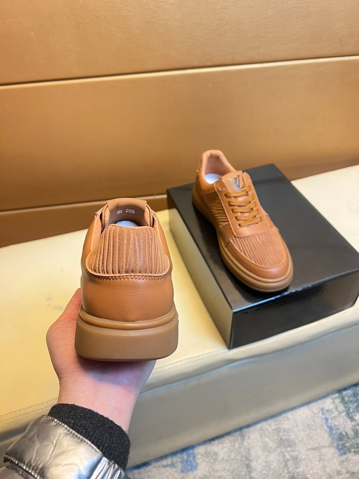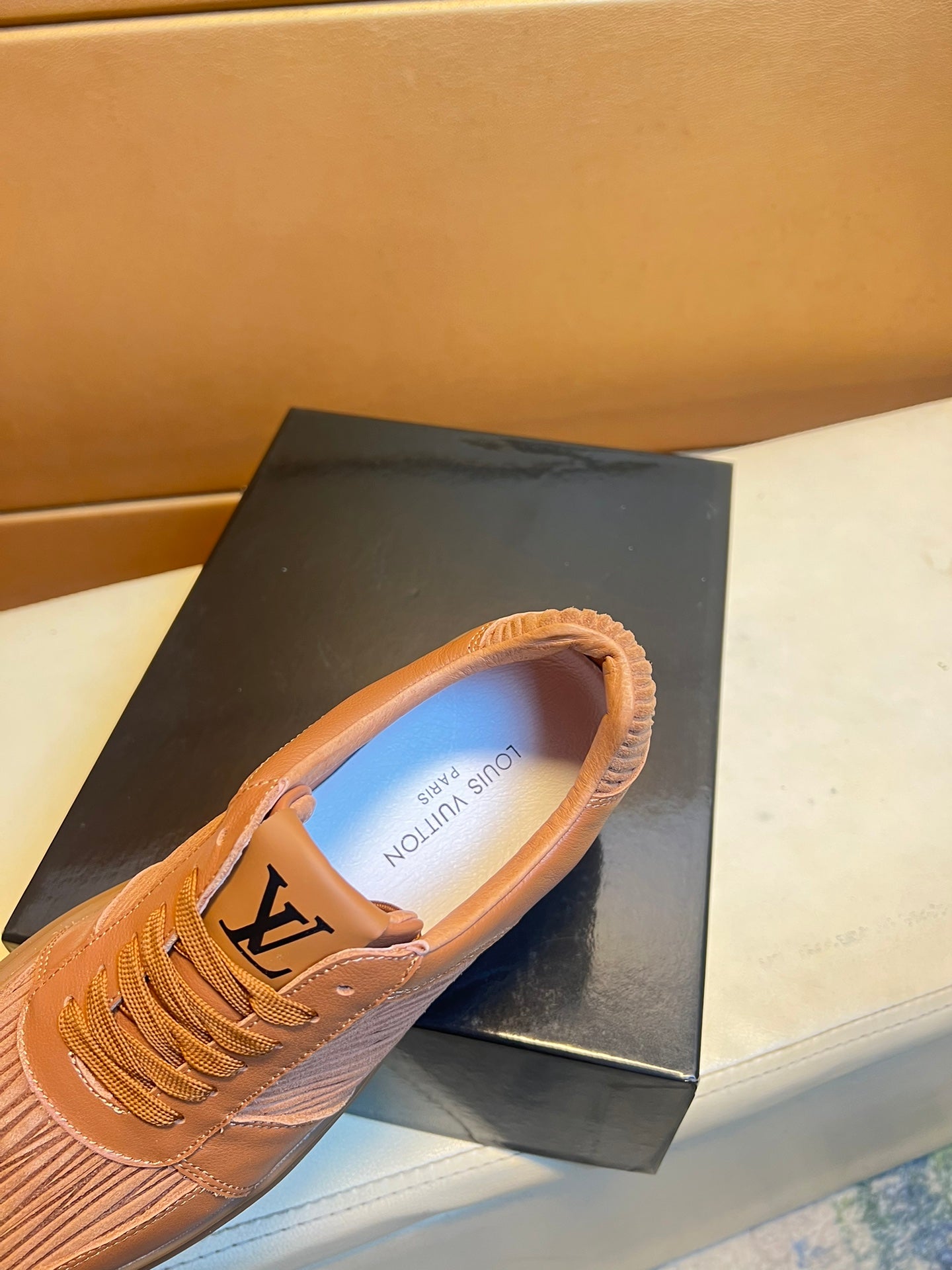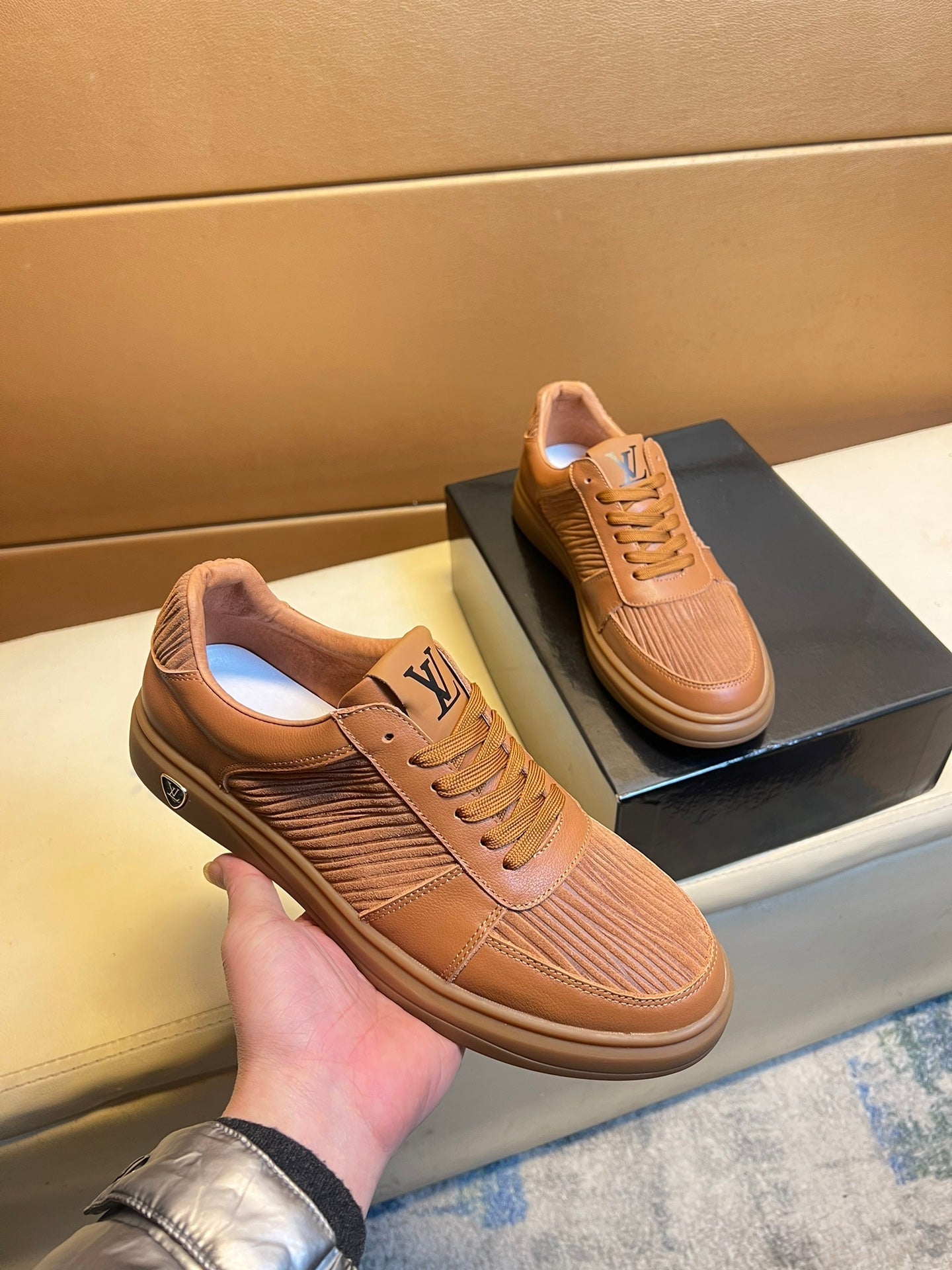 LV SNEAKERS IN RUSSET BROWN CALFSKIN AND SUEDE