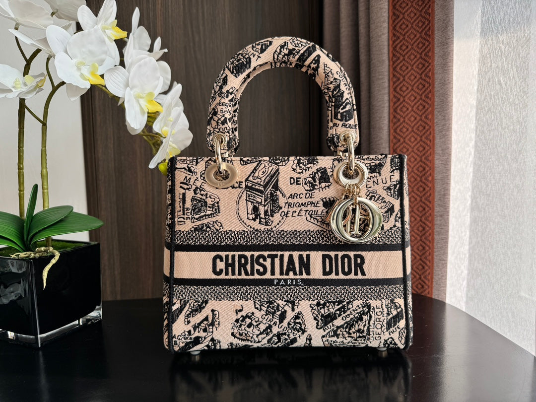 medium lady 24 black pink embroidery canvas