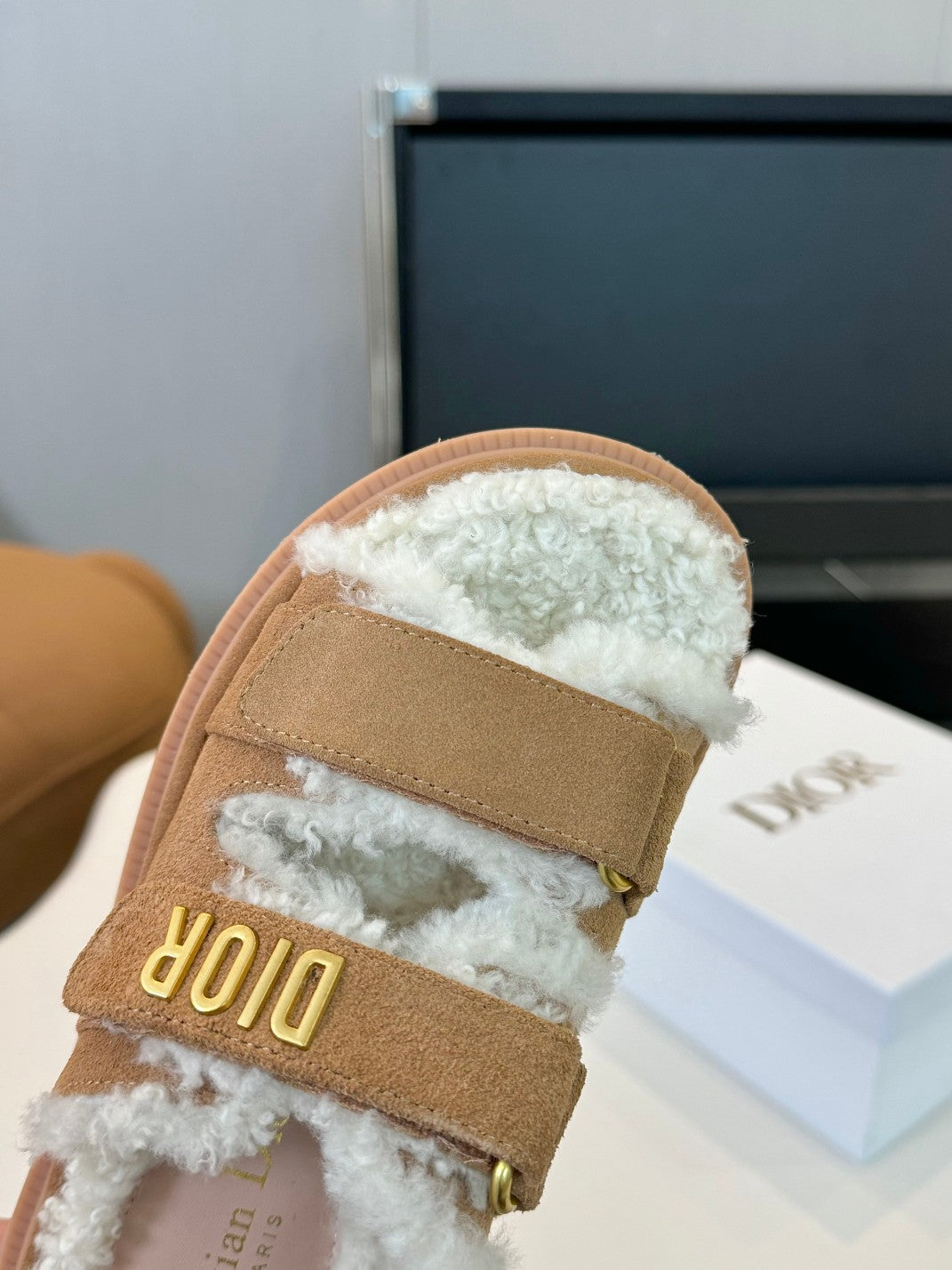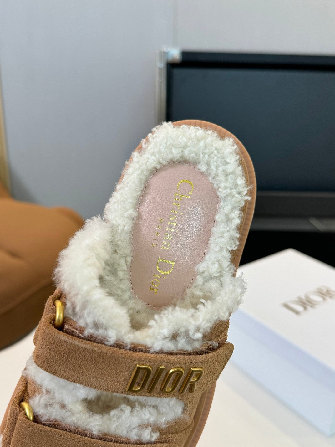 CD Dioract Slide Brown Suede And Fleece Lining