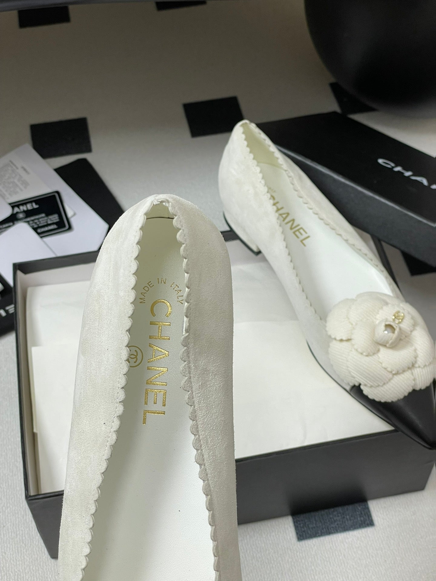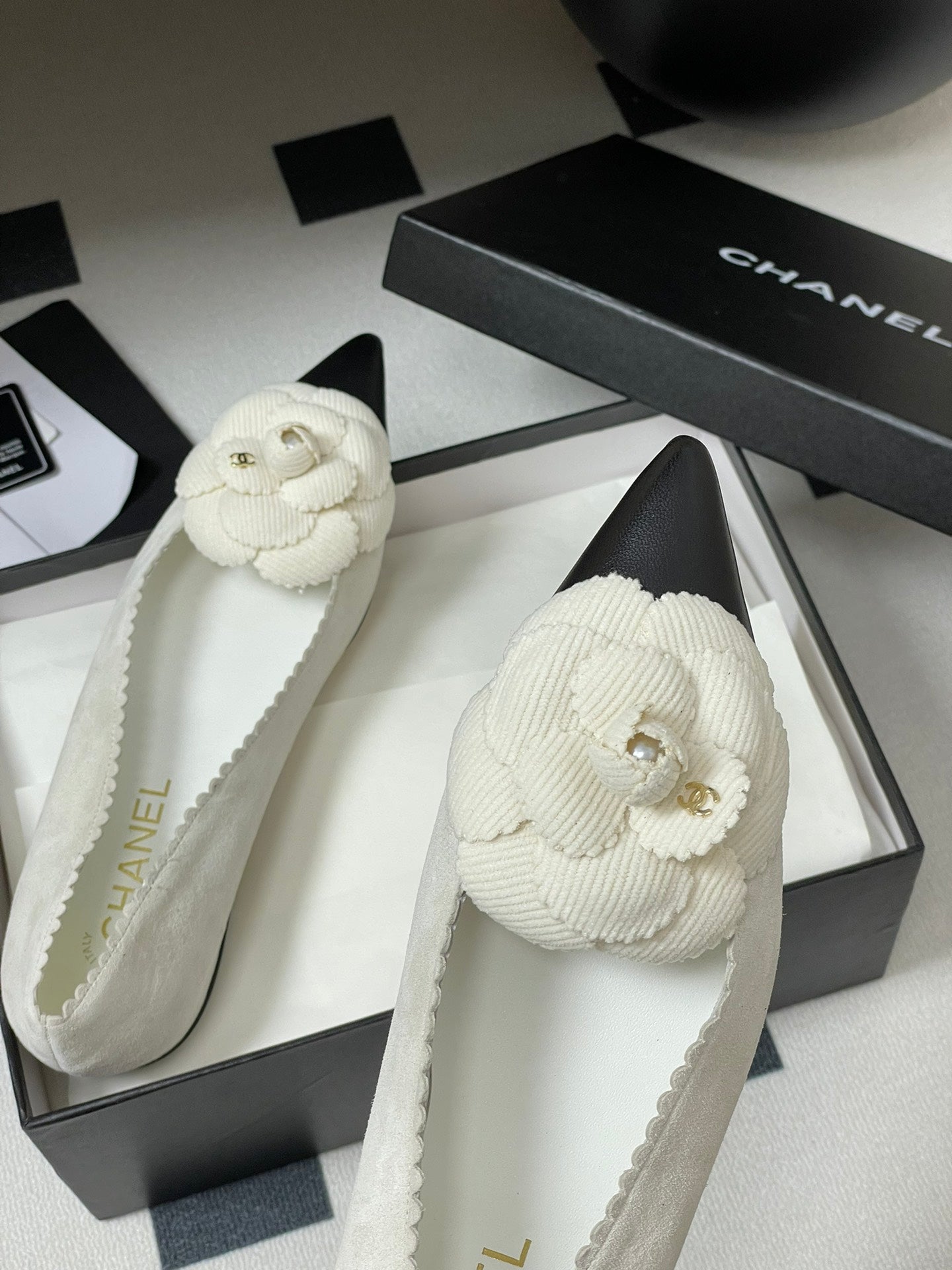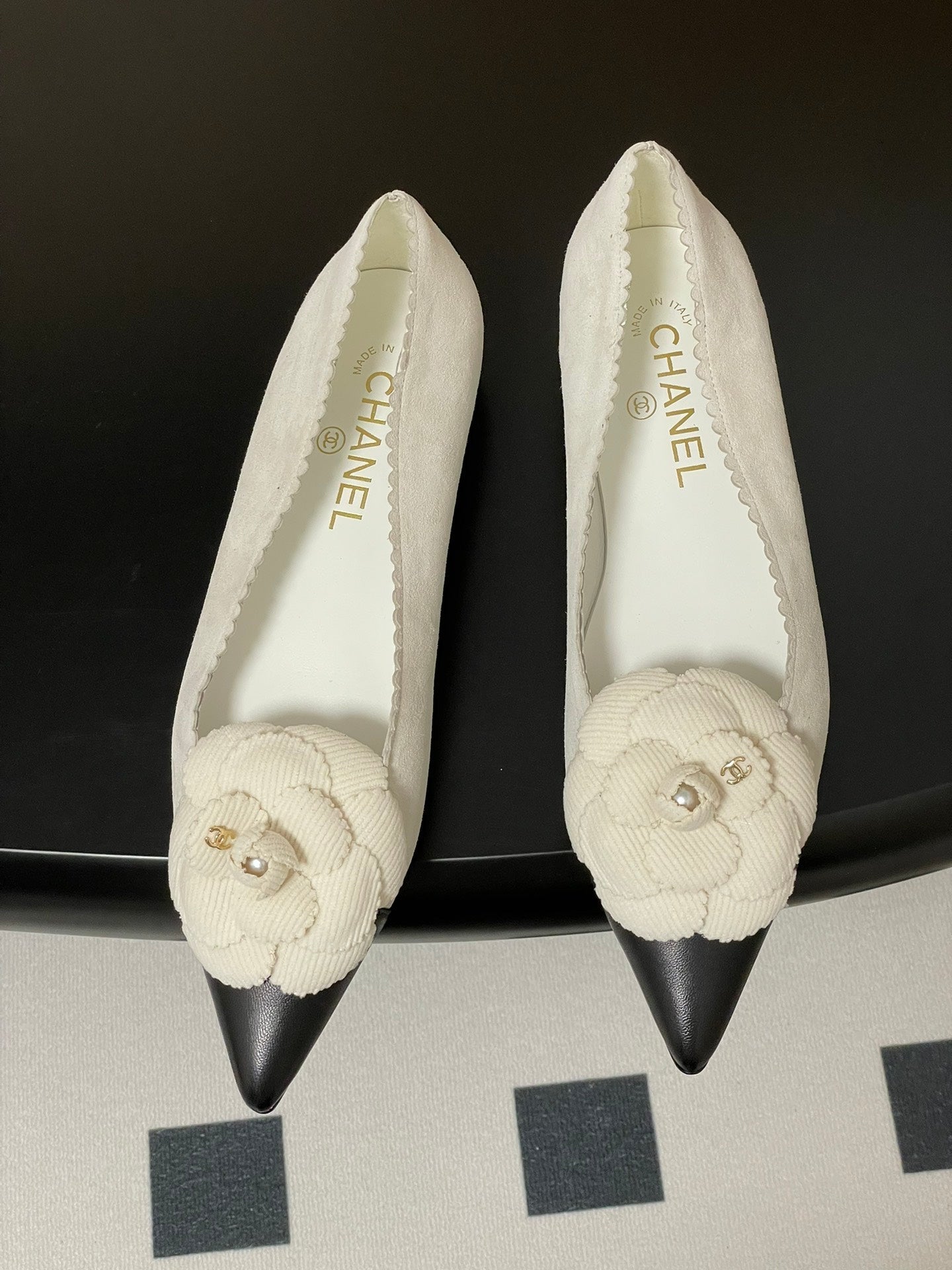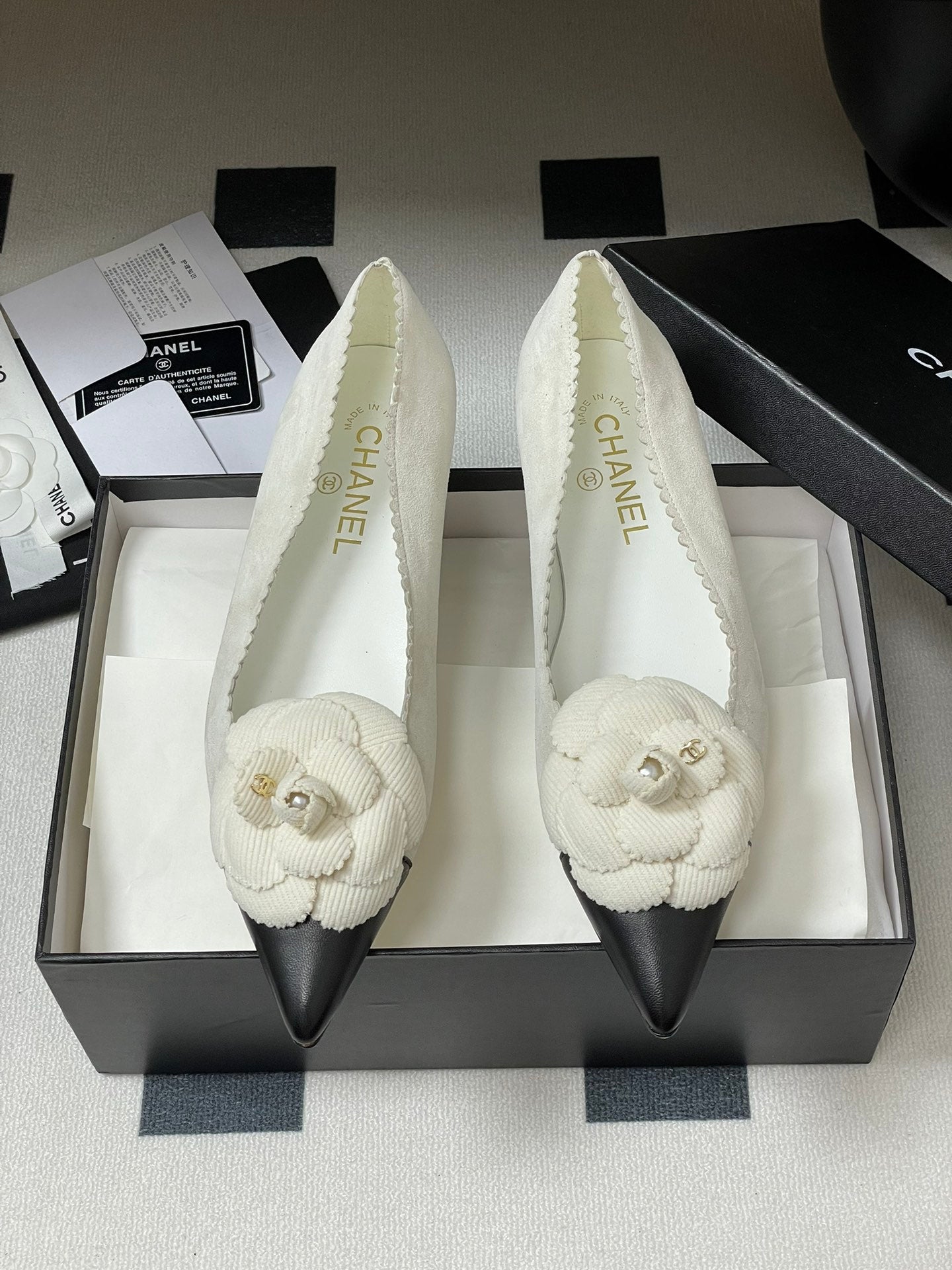 CC 25C Classic Camellia Pointed High Heels Flat 15mm White Suede 247609