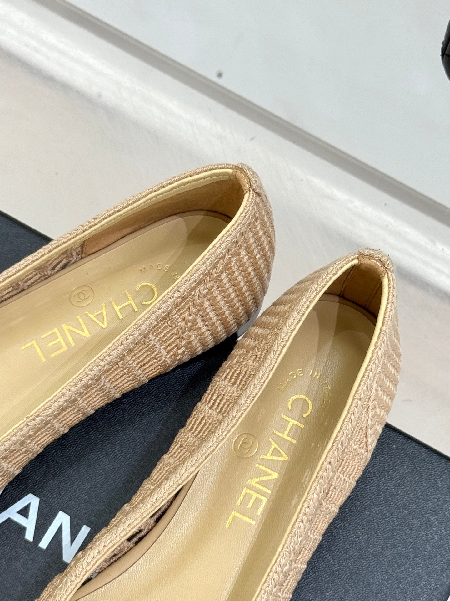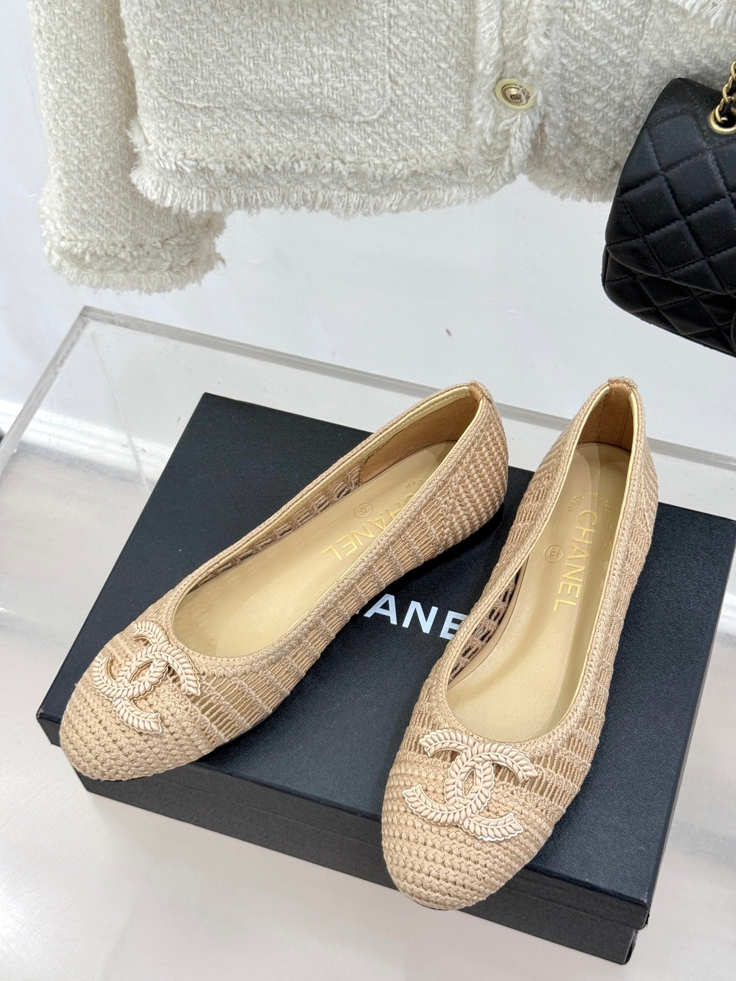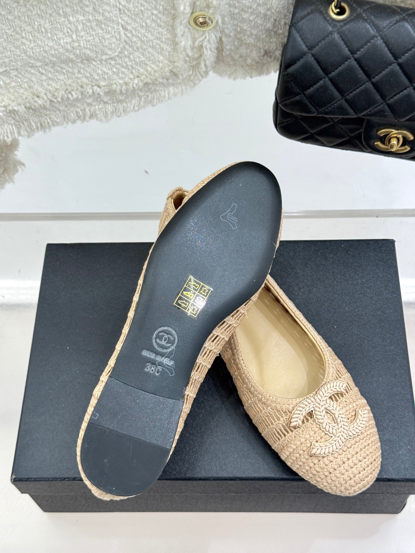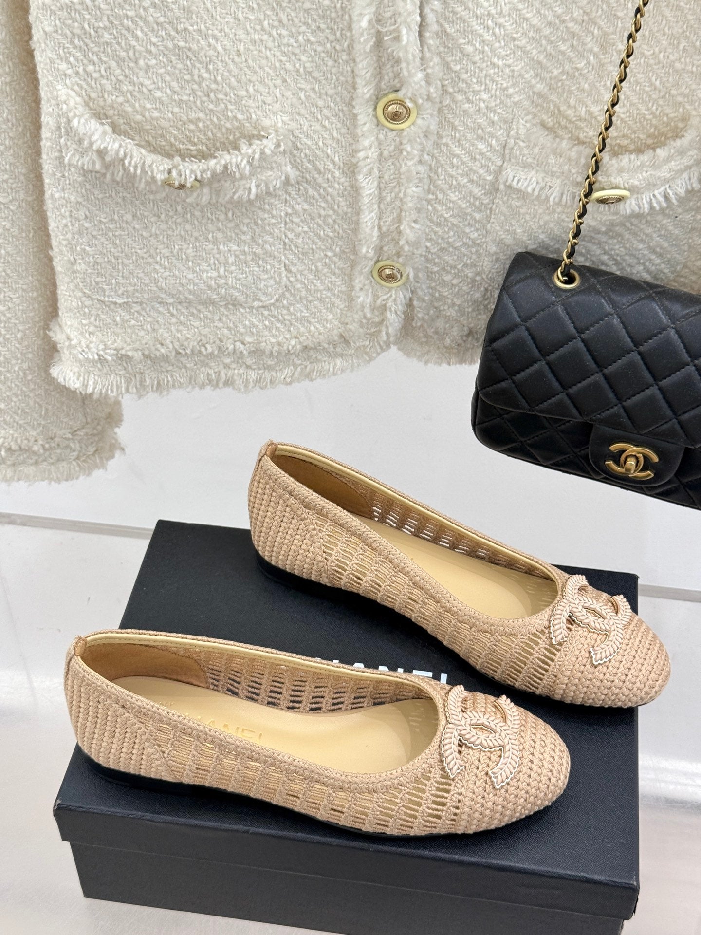 CC 25P Hollow Double C Ballet Flats 15mm Beige Raffia 265642