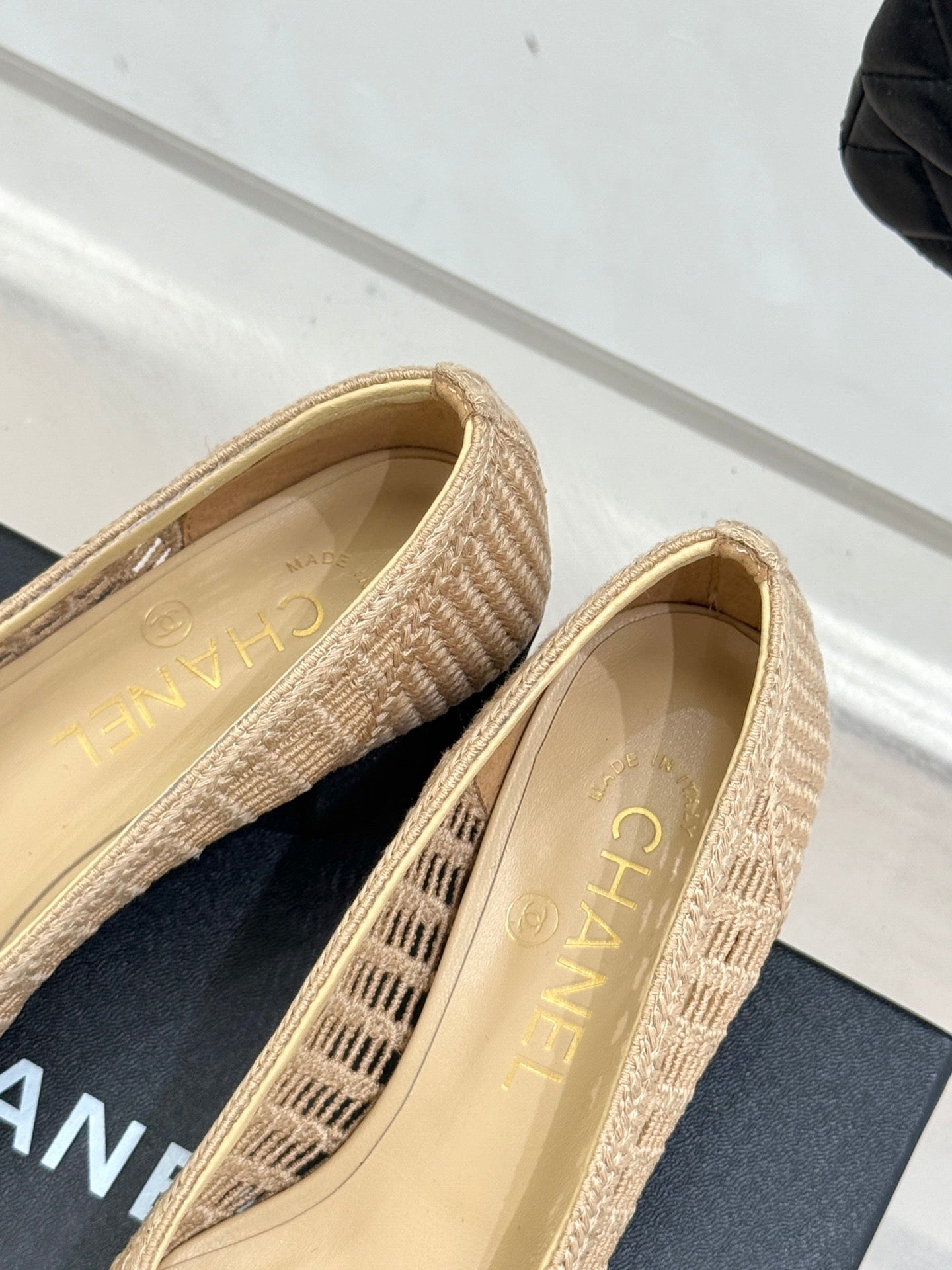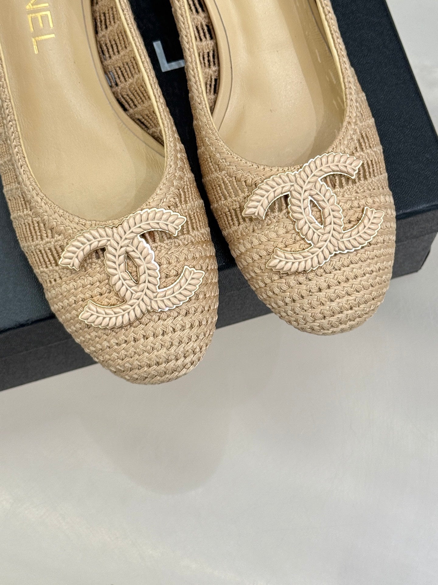 CC 25P Hollow Double C Ballet Flats 50mm Beige Raffia 265638