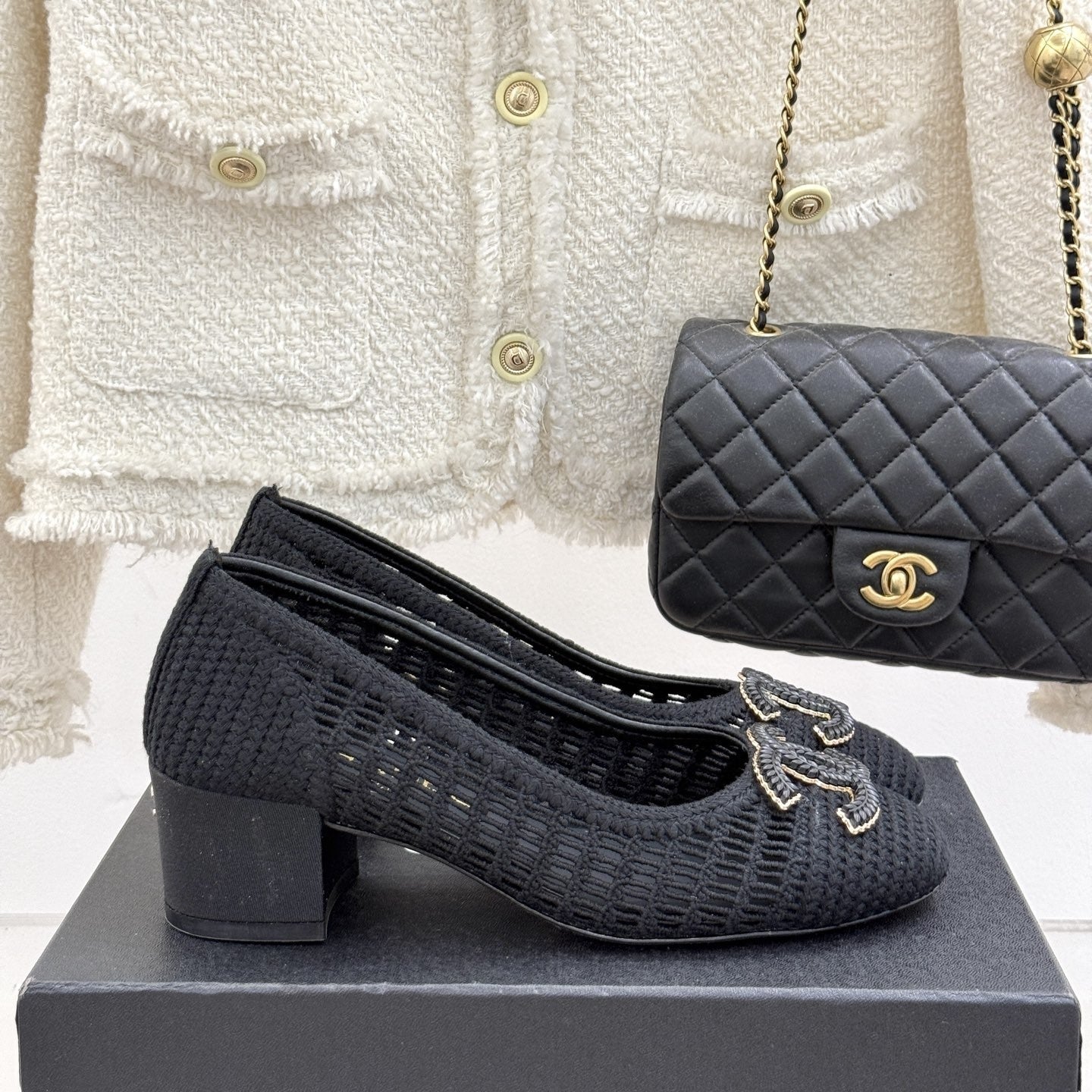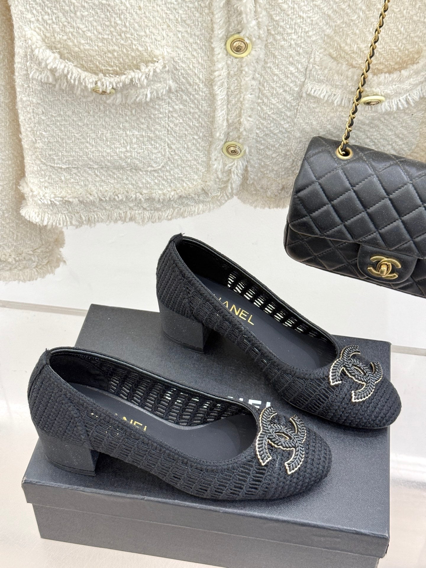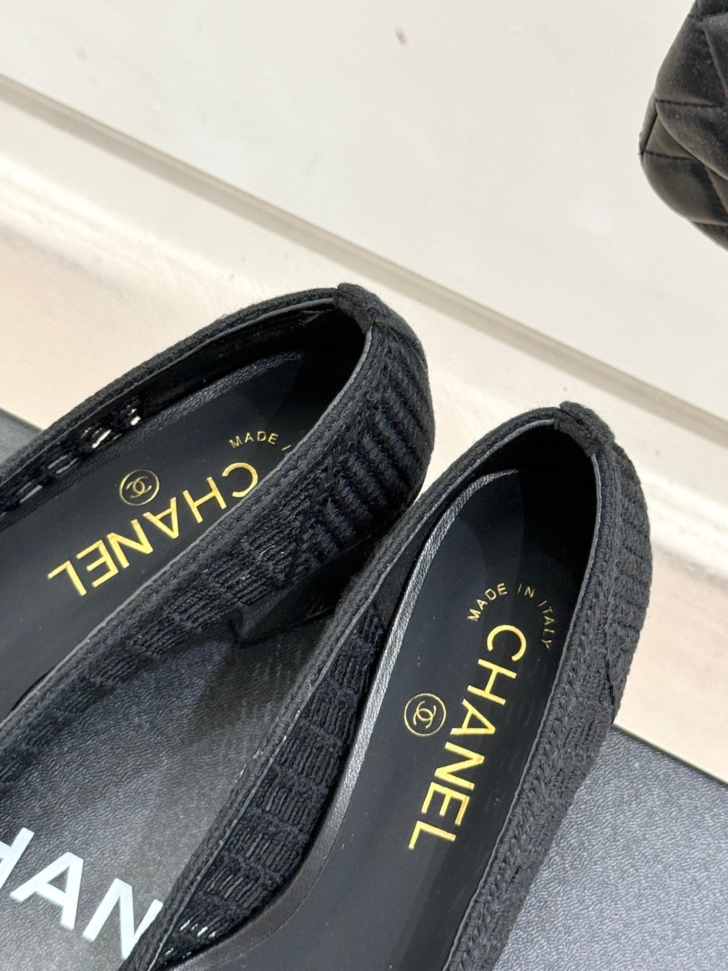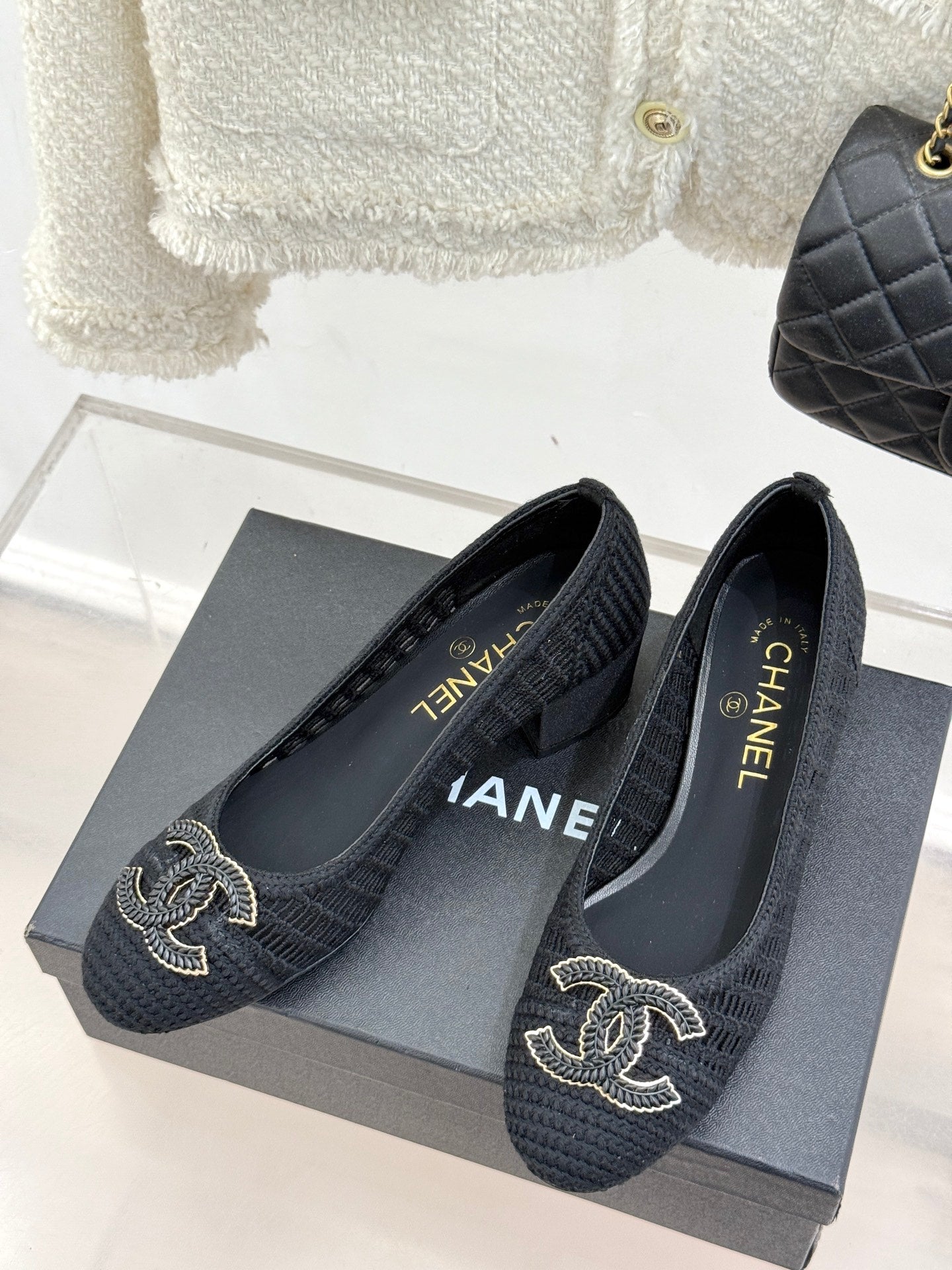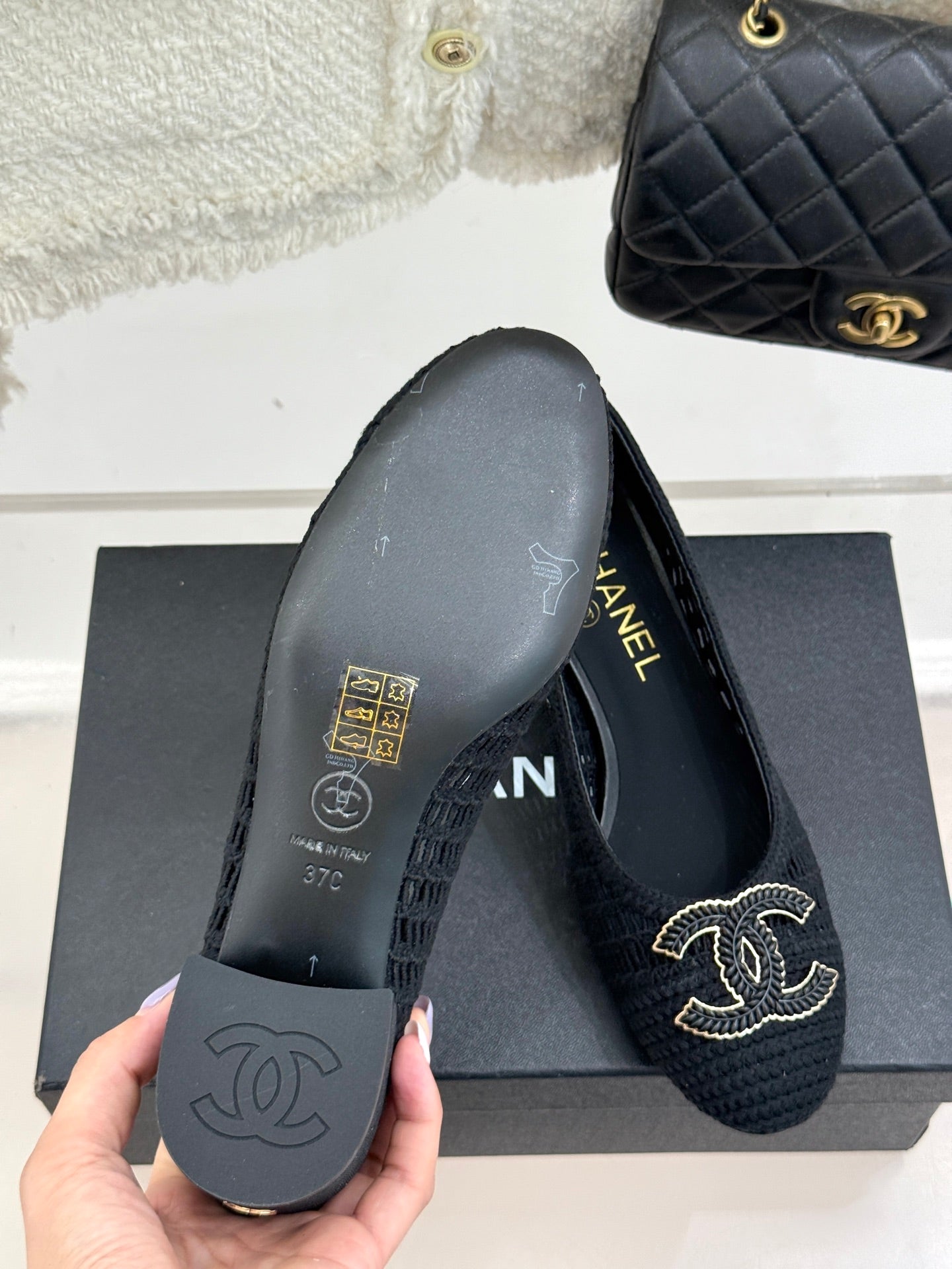 CC 25P Hollow Double C Ballet Flats 50mm Black Raffia 265639