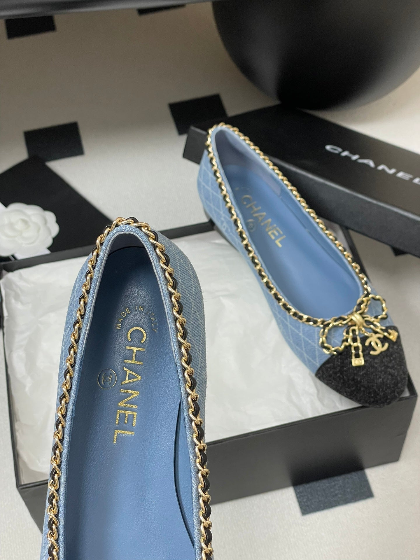 CC 25S 20mm Chain Bow Single Flat Blue Denim Black Grosgrain 247657