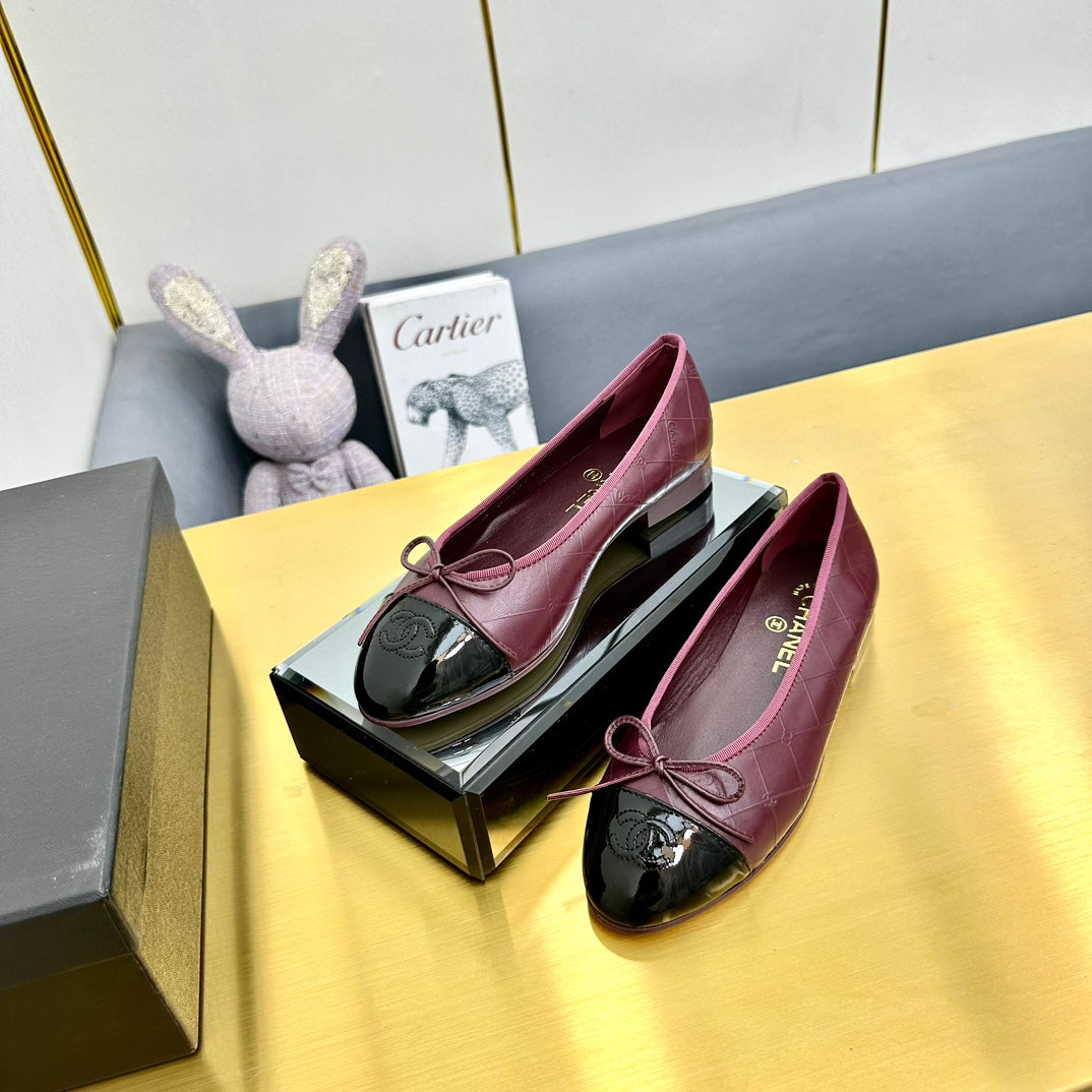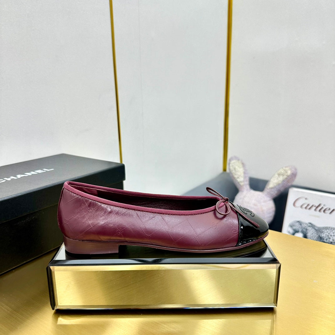 cc ballet flats in burgundy lambskin and black patent calfskin 137424