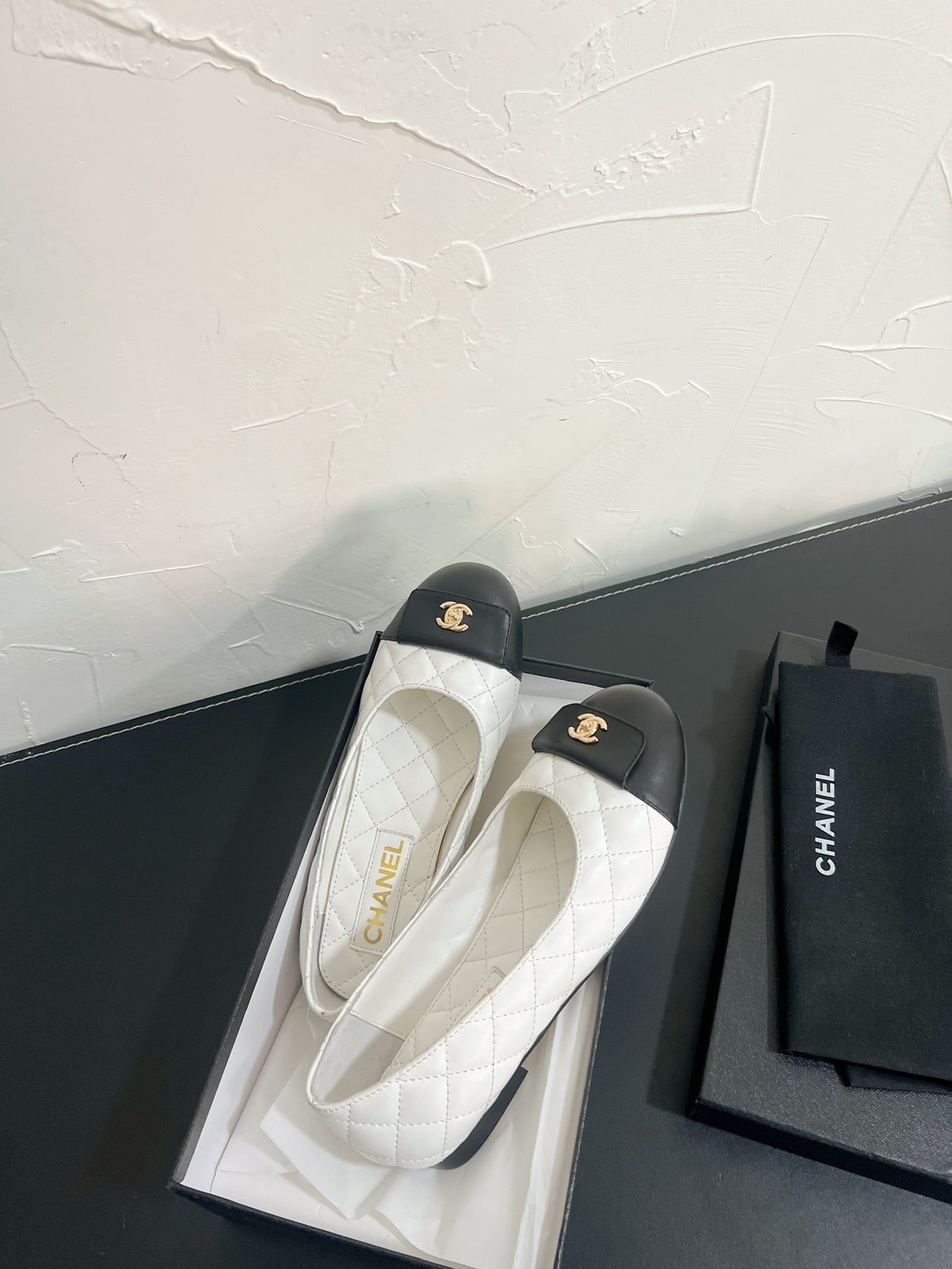 CC Ballet Flats In White Mix Black Quilted Lambskin 949711