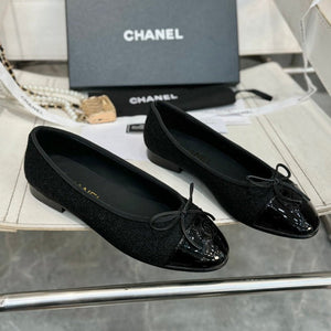 BALLET FLAT BLACK CALFSKIN AND FABRIC