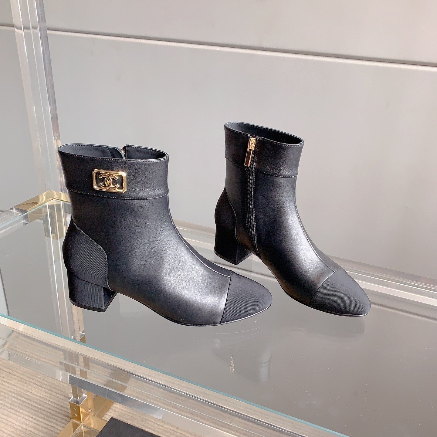 CC Low-Cut Logo Ankle Boots 50mm Black Sheepskin Frabic 464558