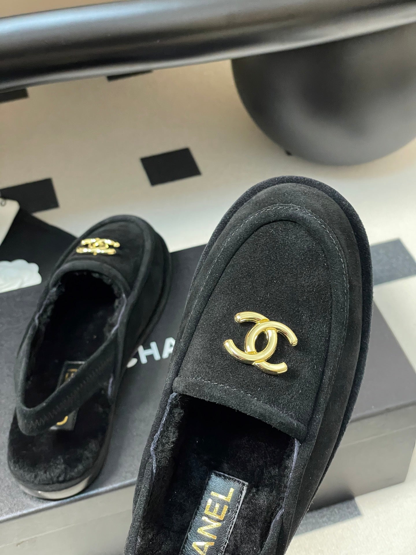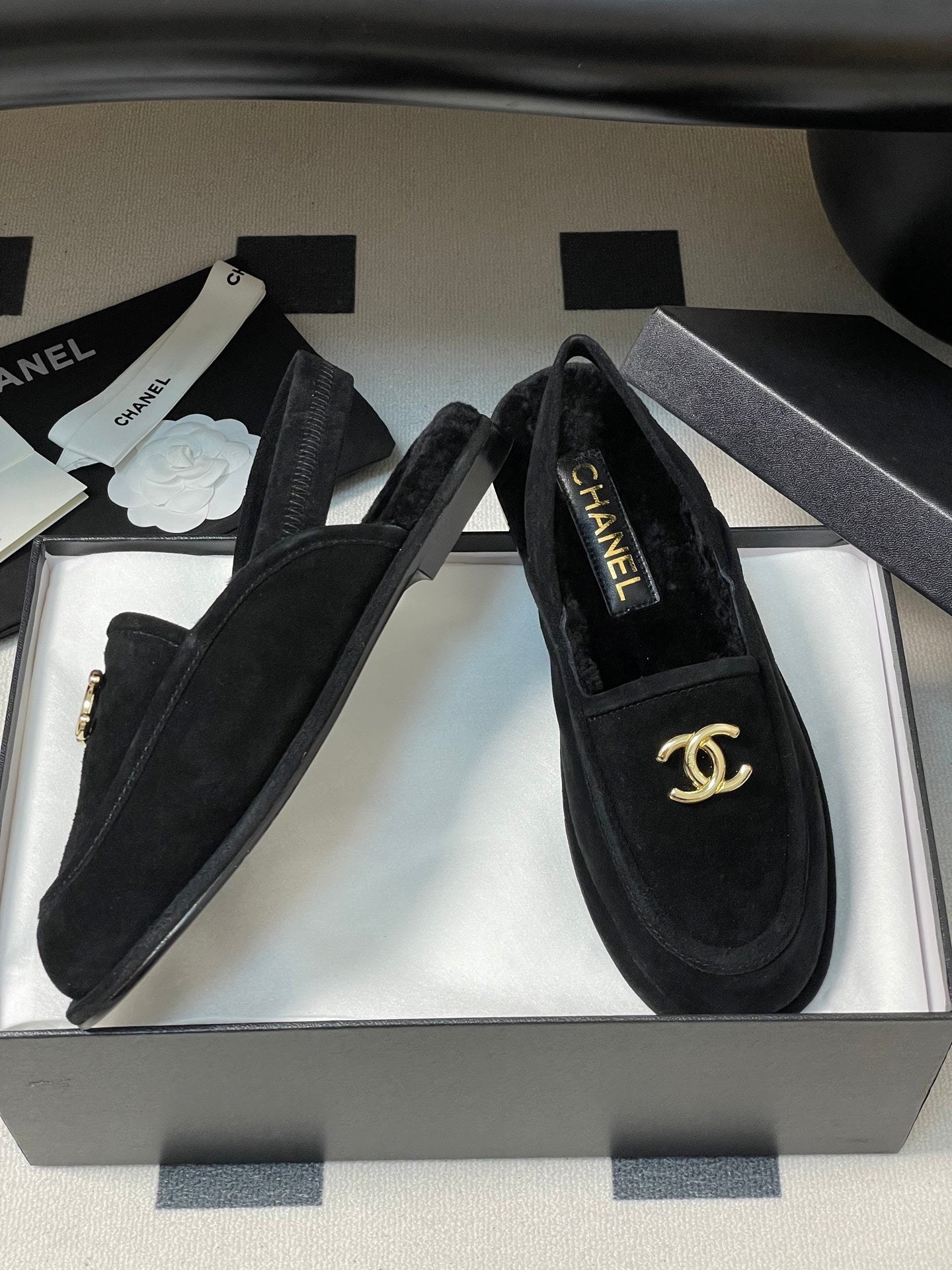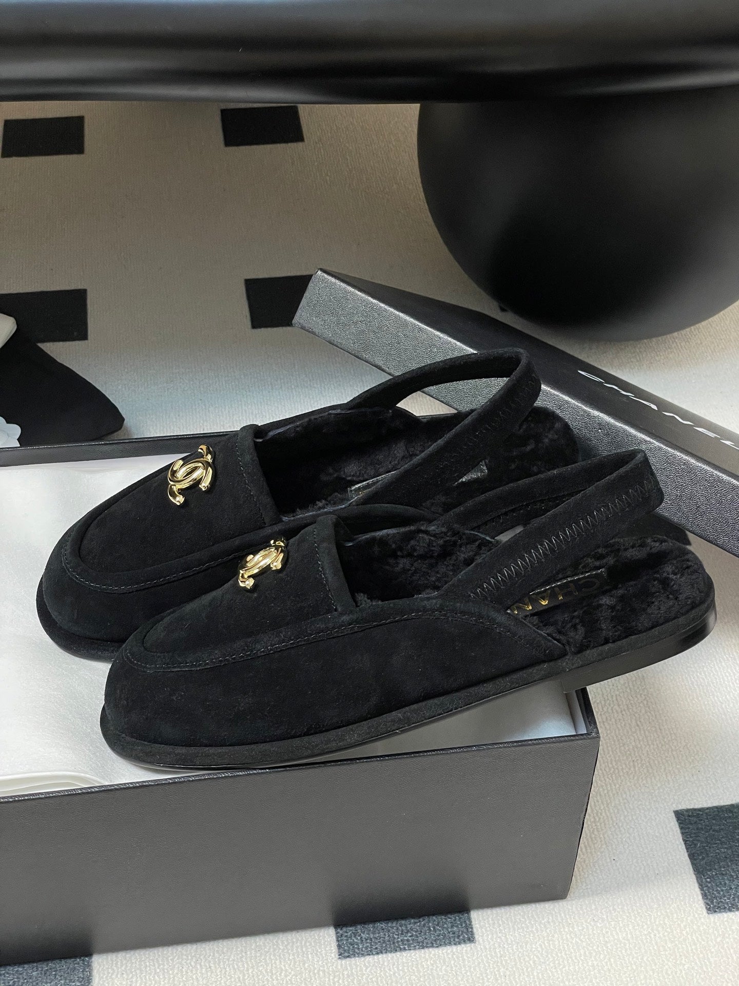 CC 25A Slingback Loafer Black Sherpa Suede