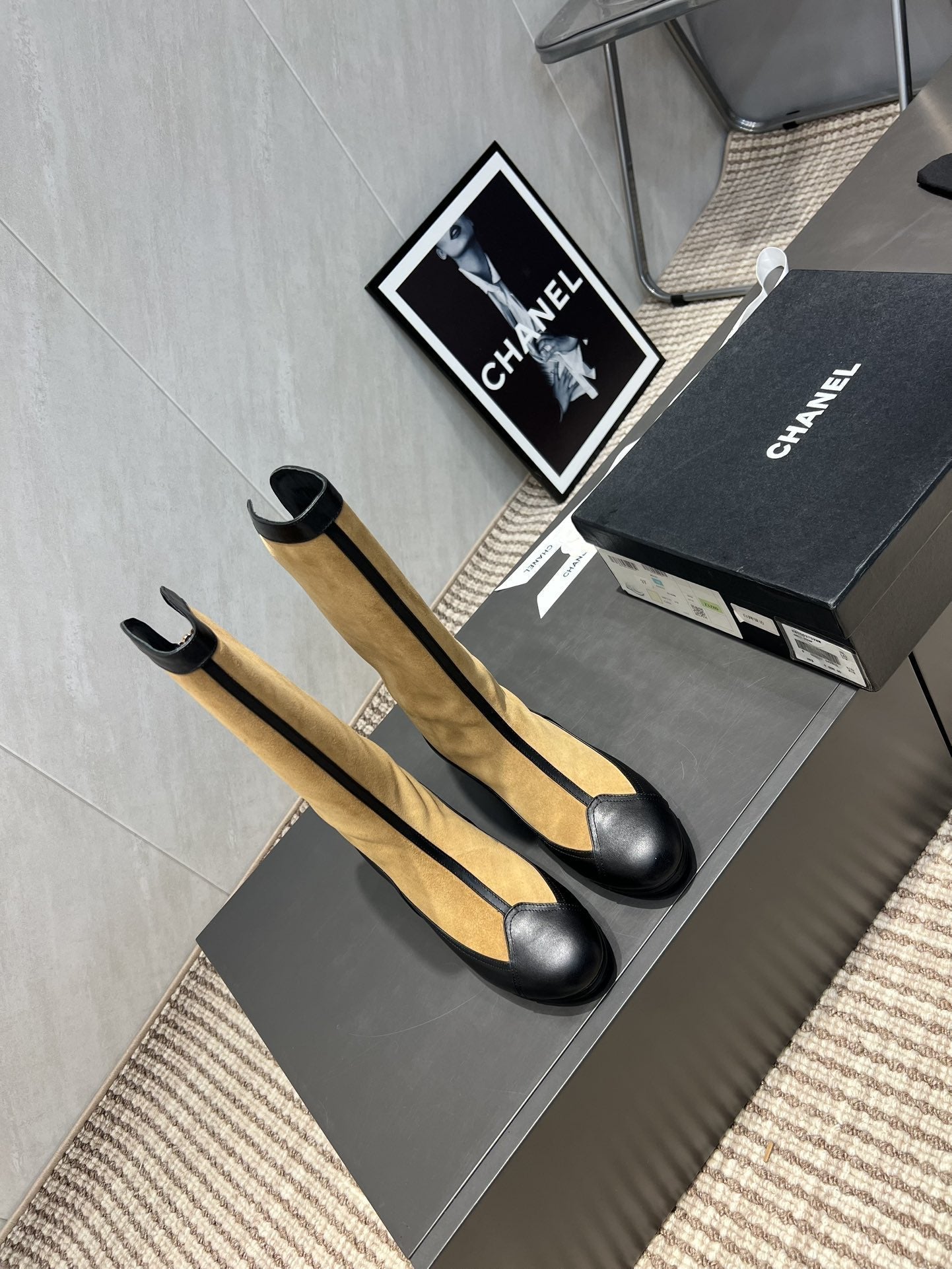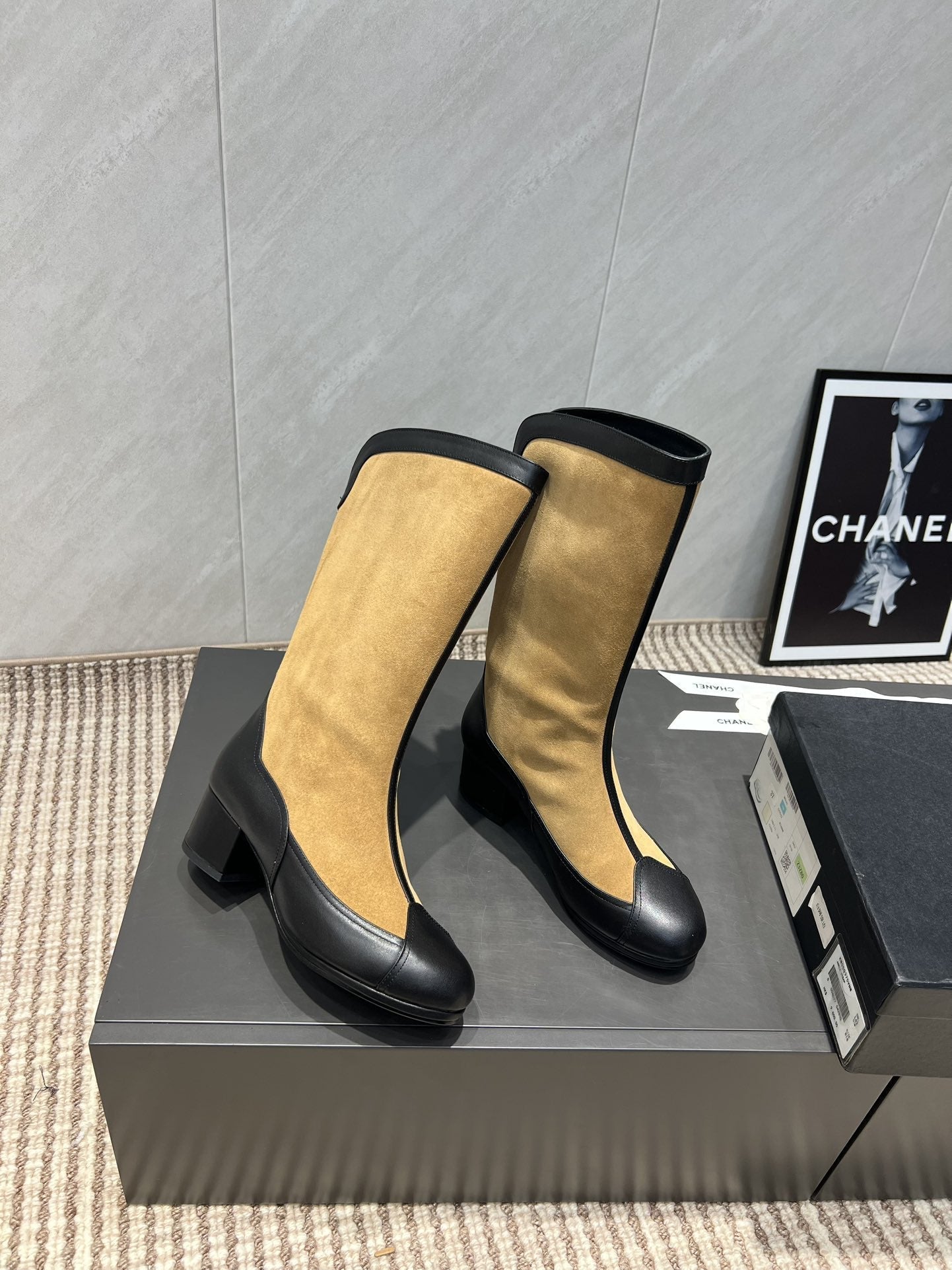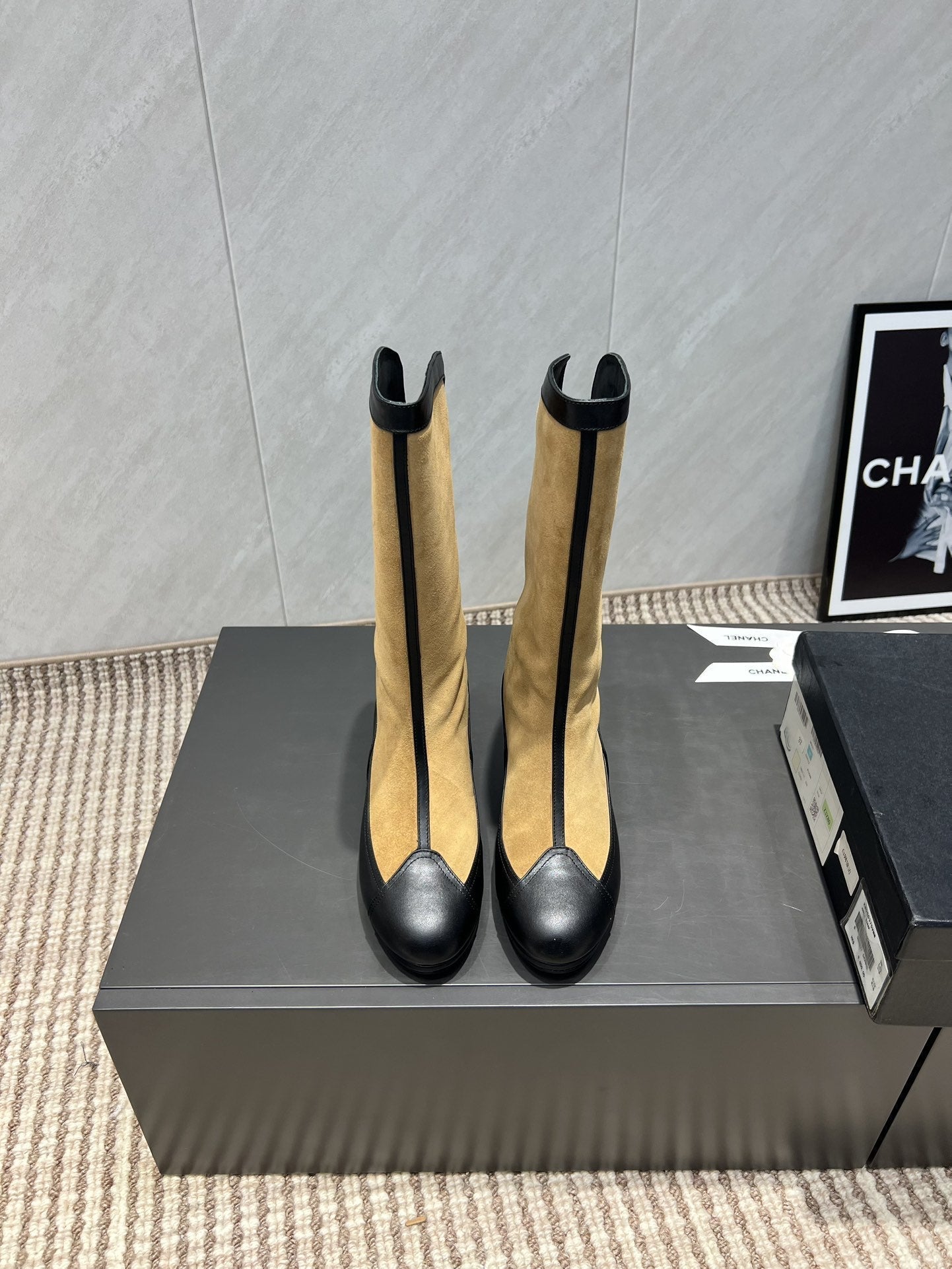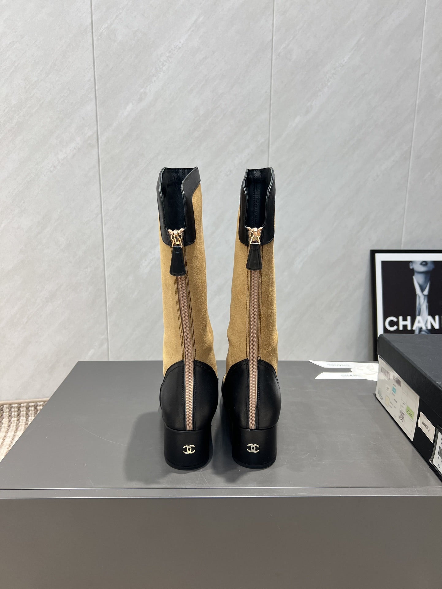 CC 25S Round Toe Mid-Heel Zippered High Boots in Brown Black Cowhide 442488