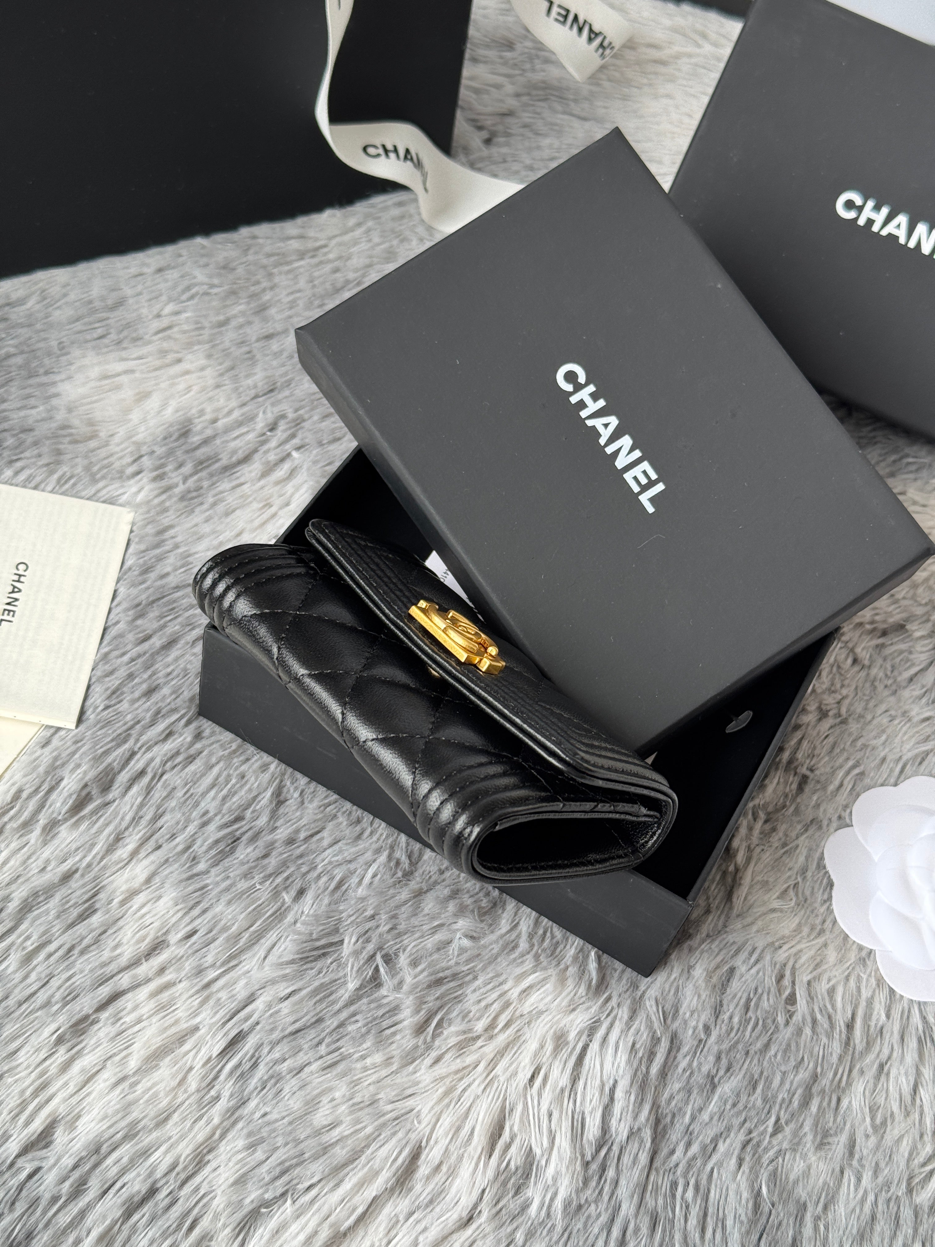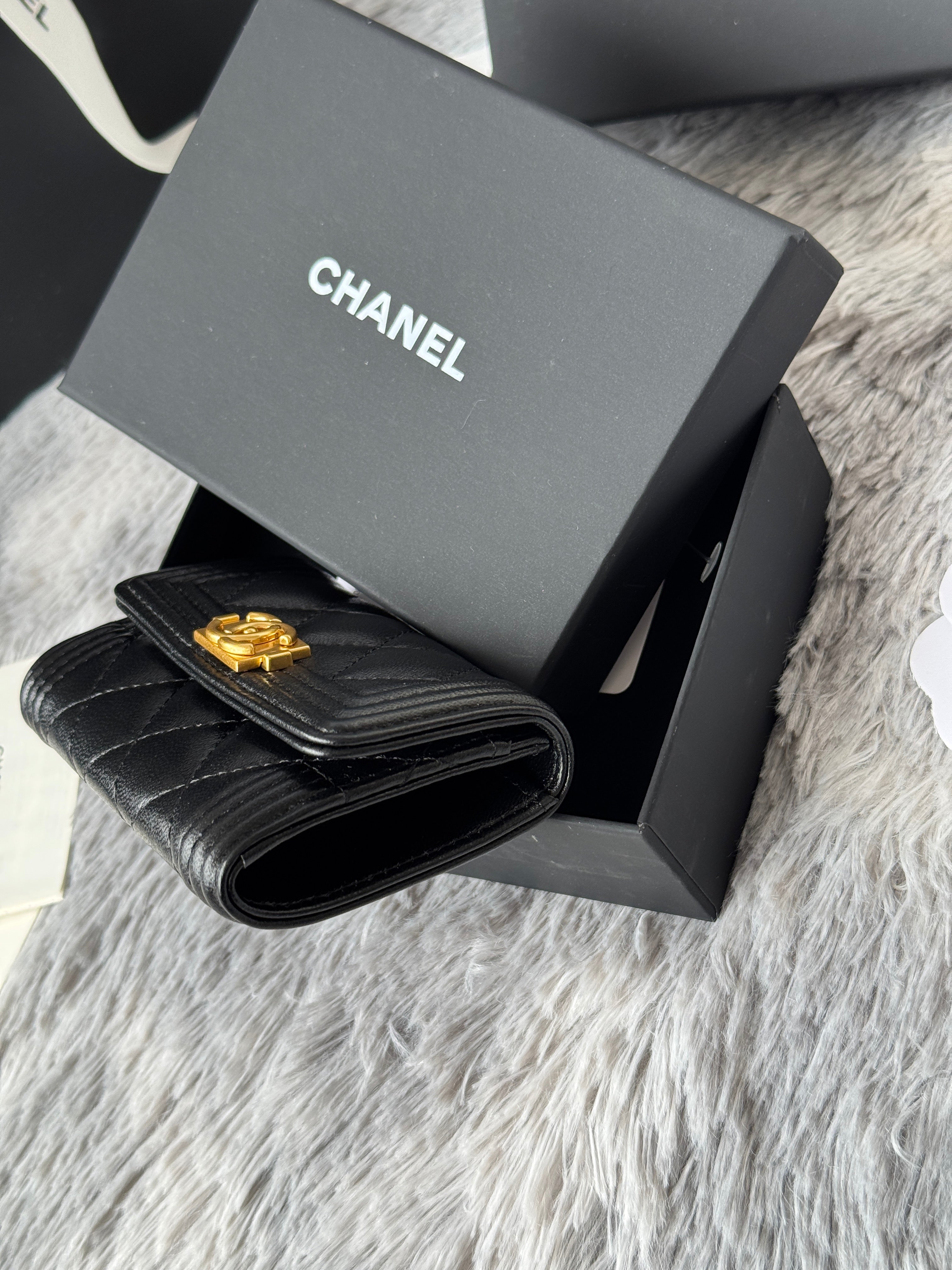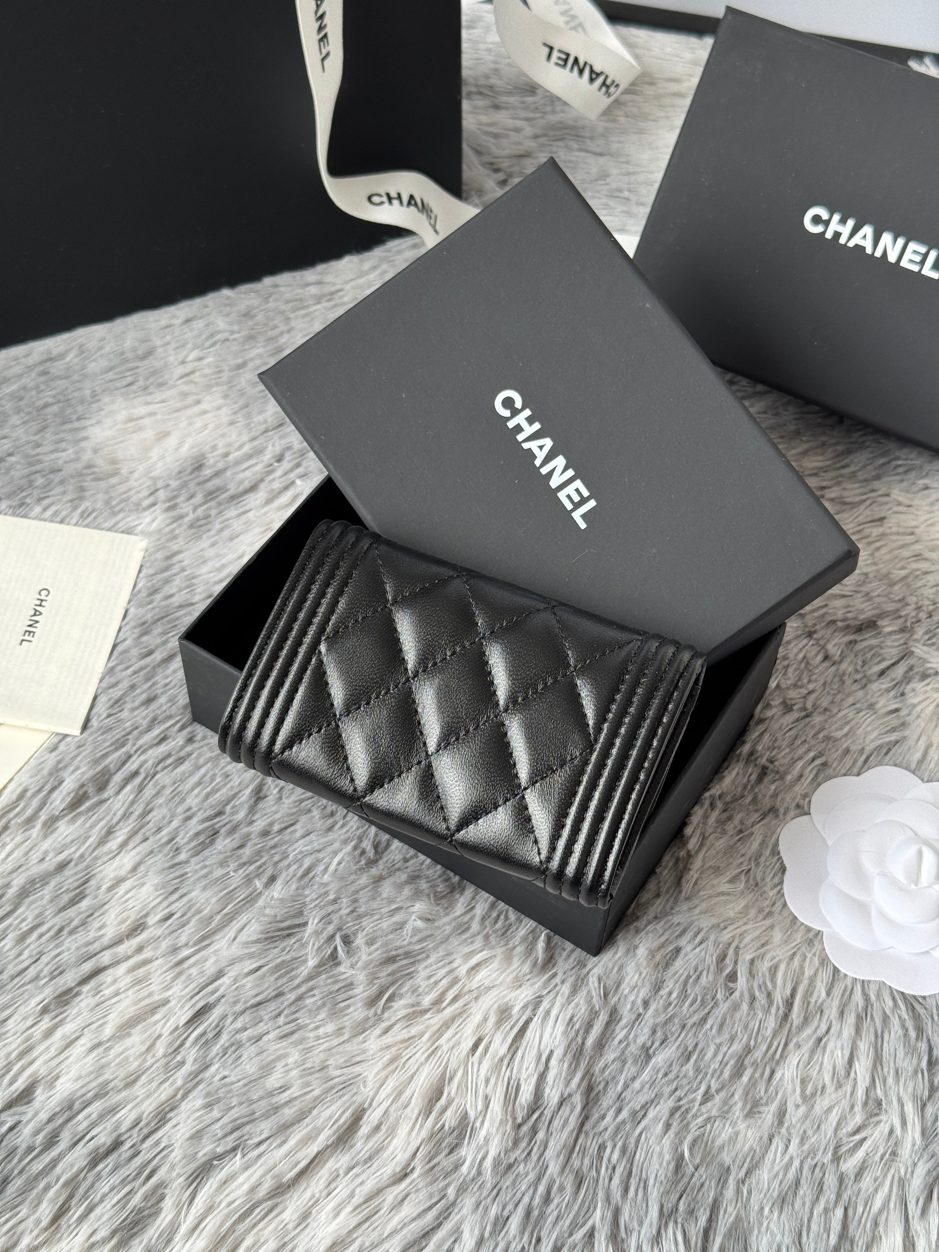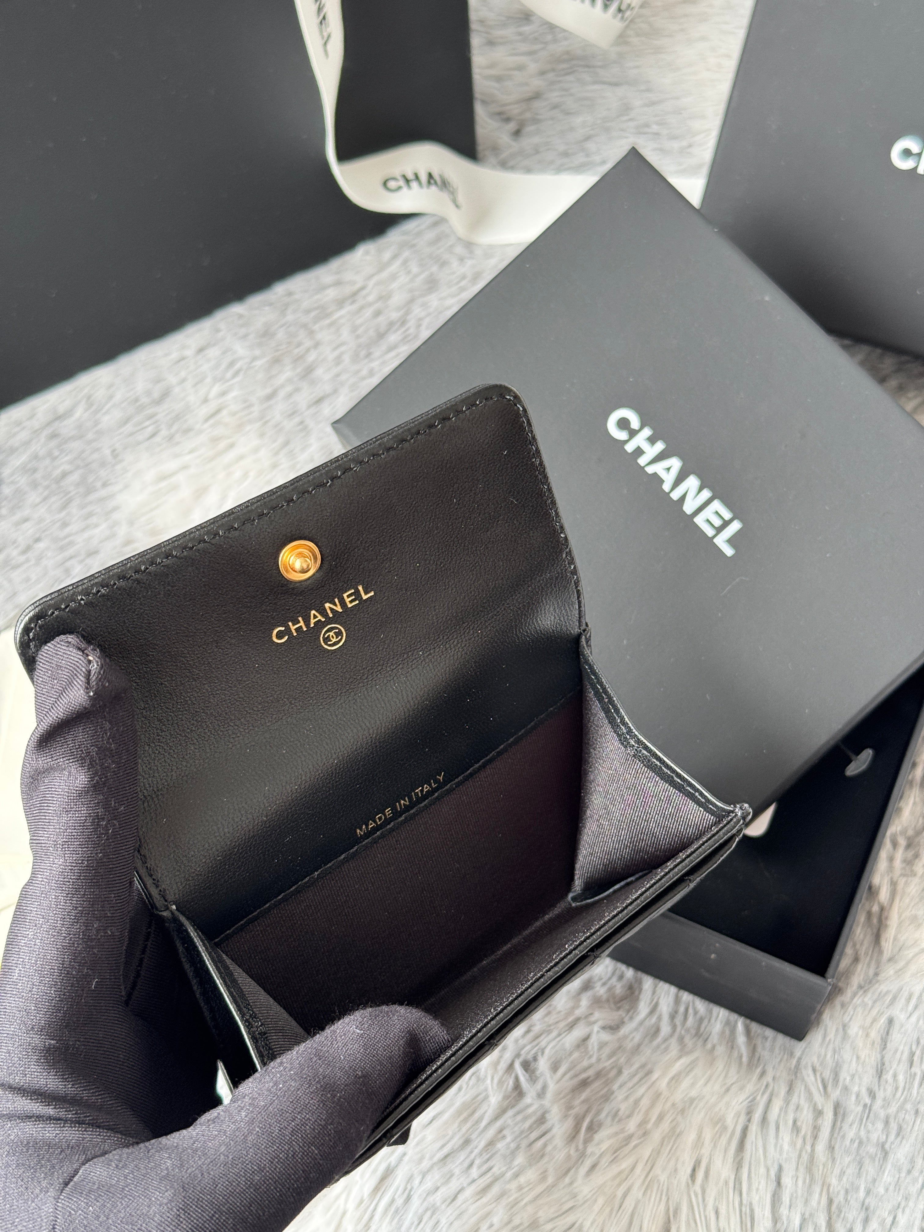 CC Boy Flap Card Holder Black Gold-tone Lambskin 242862