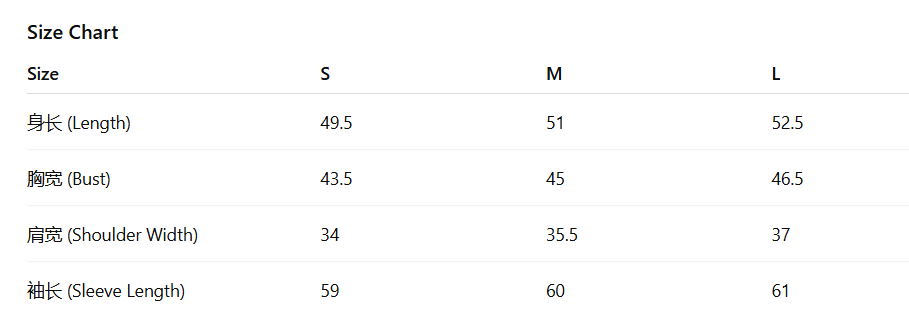 - Size : S, M, L