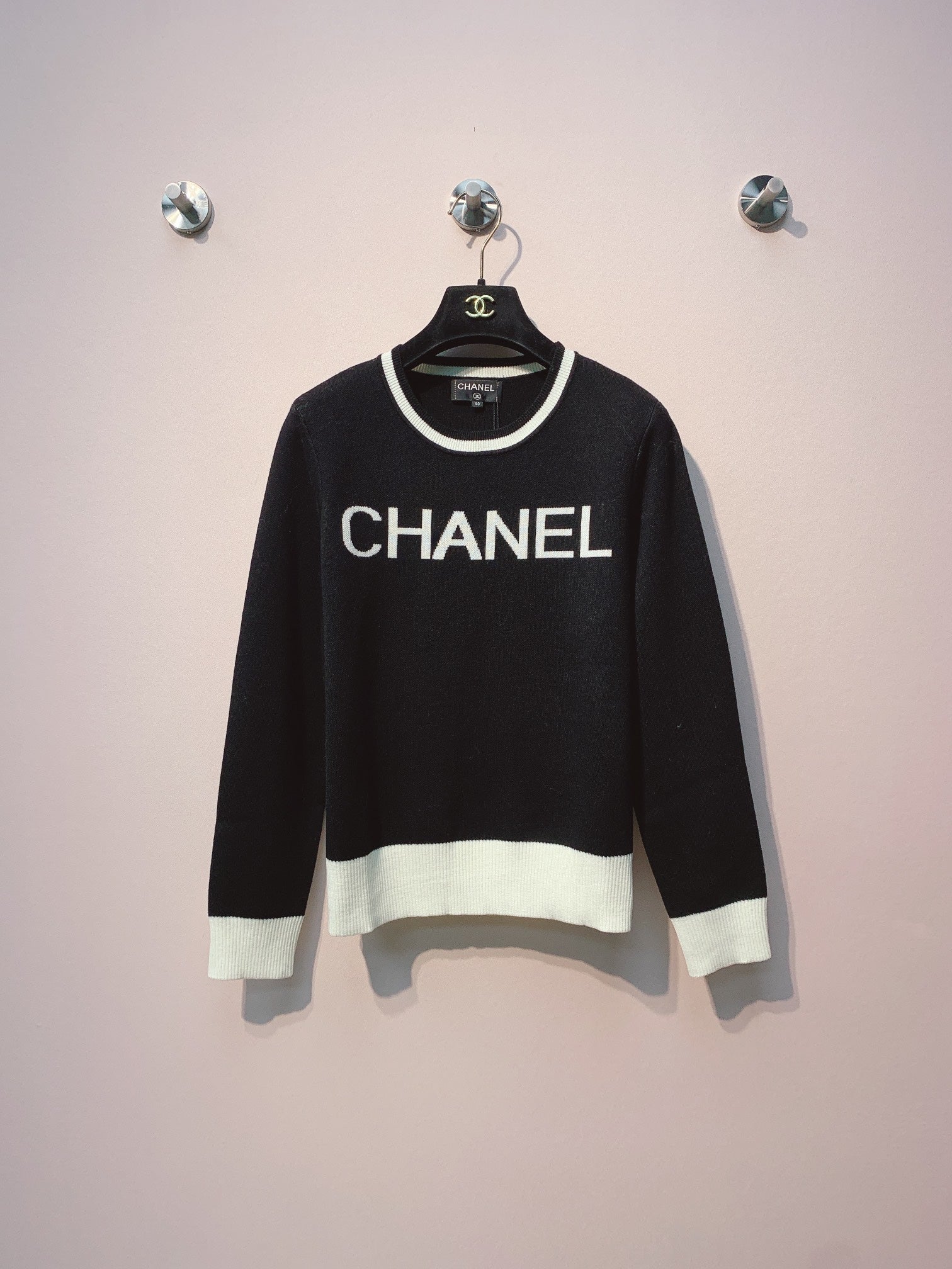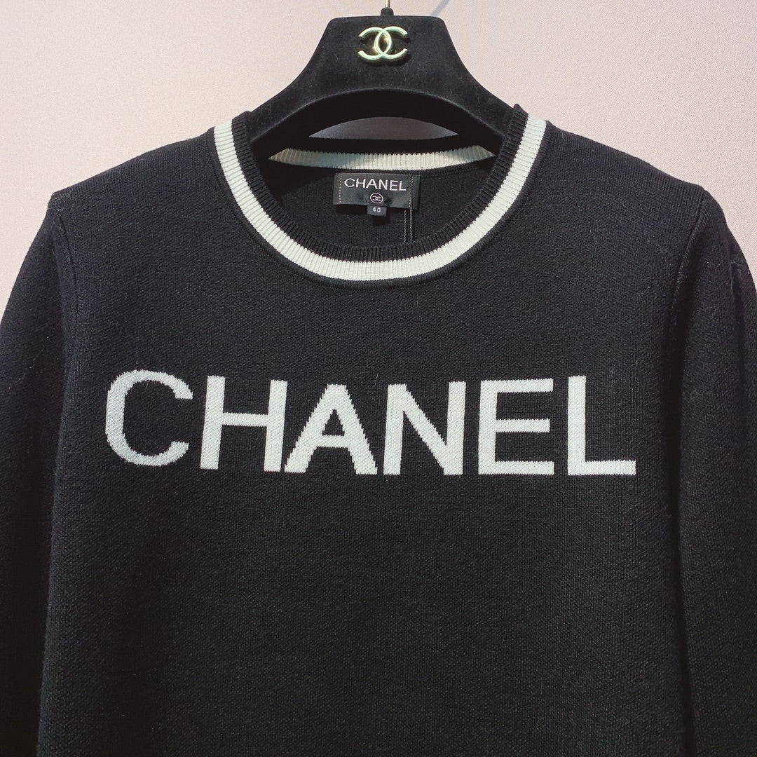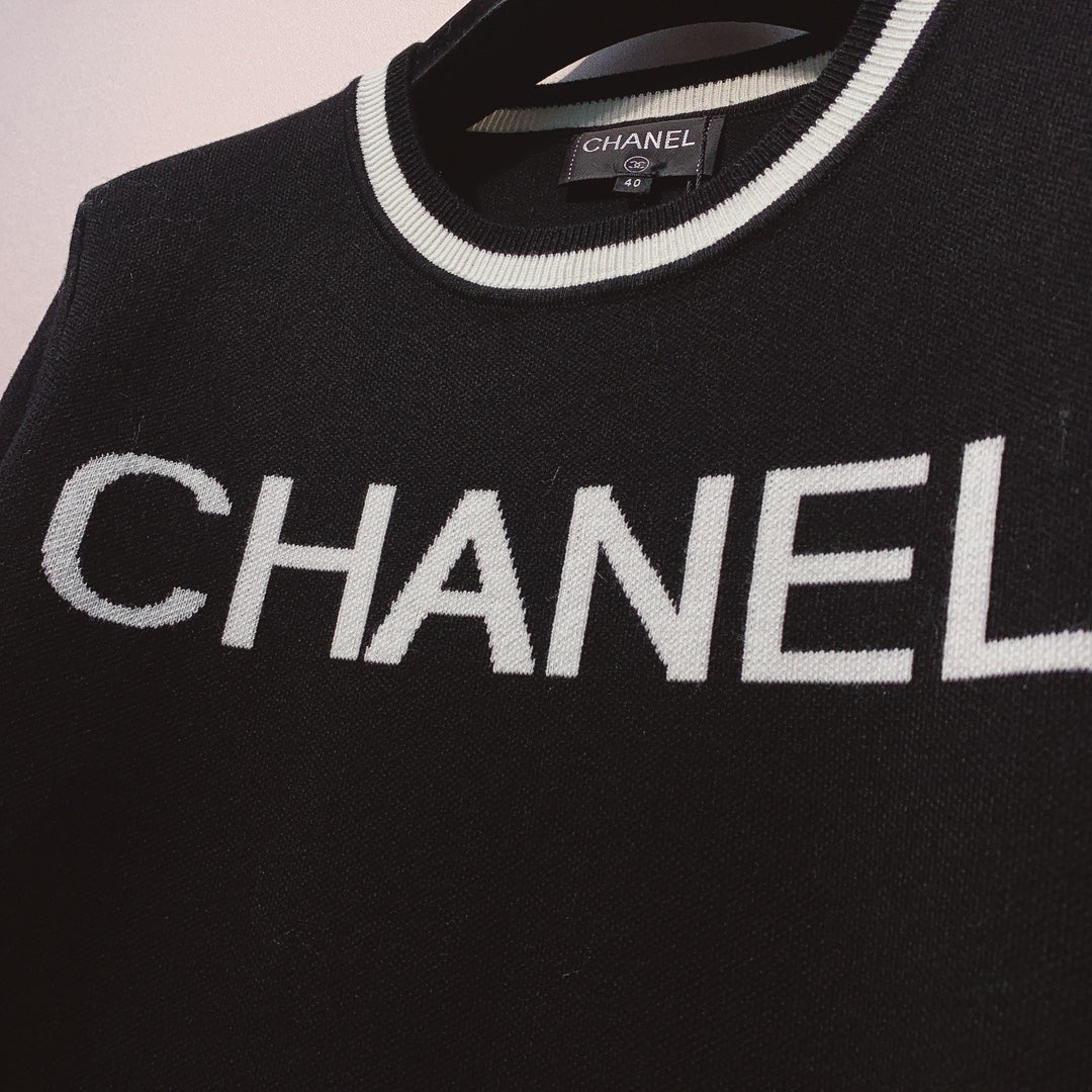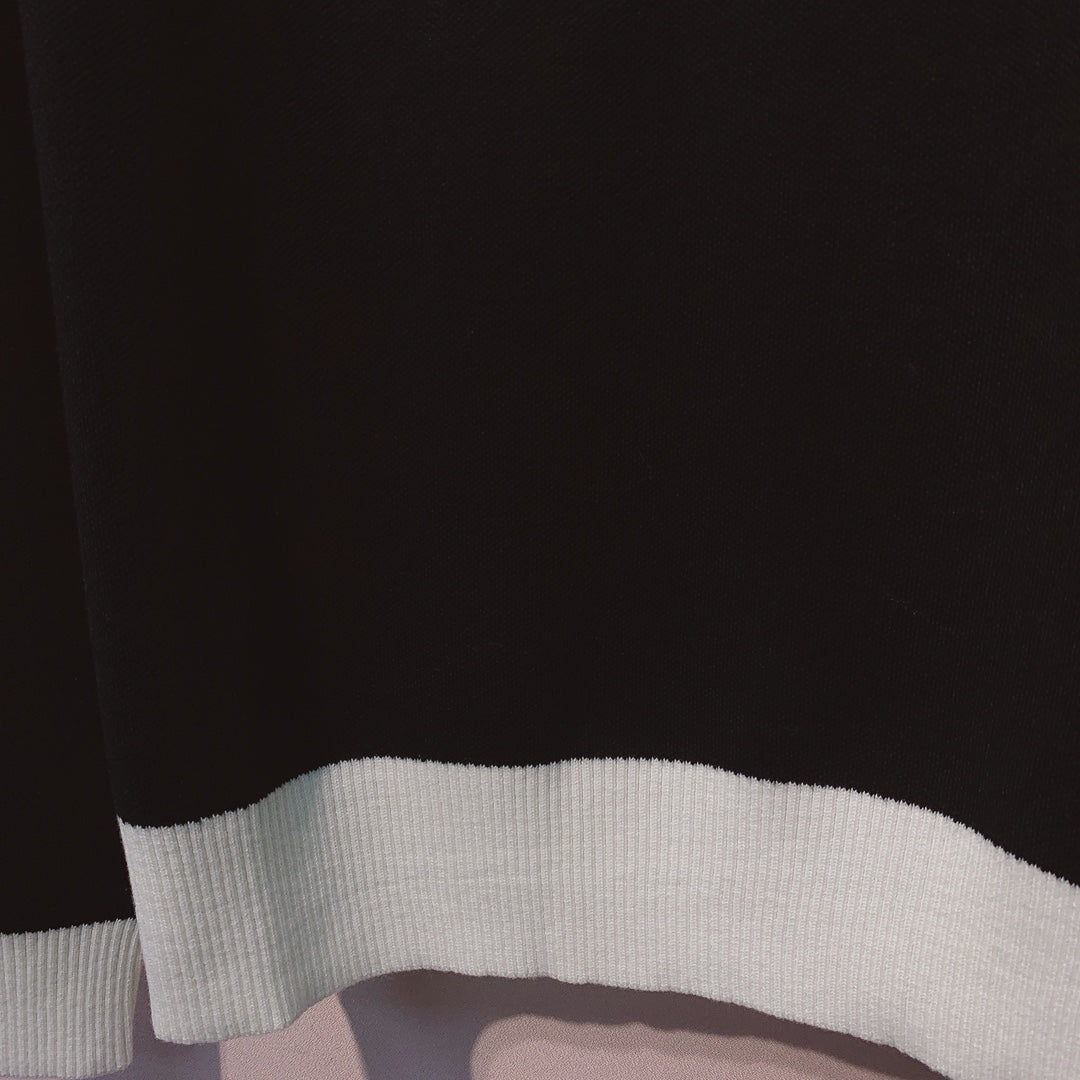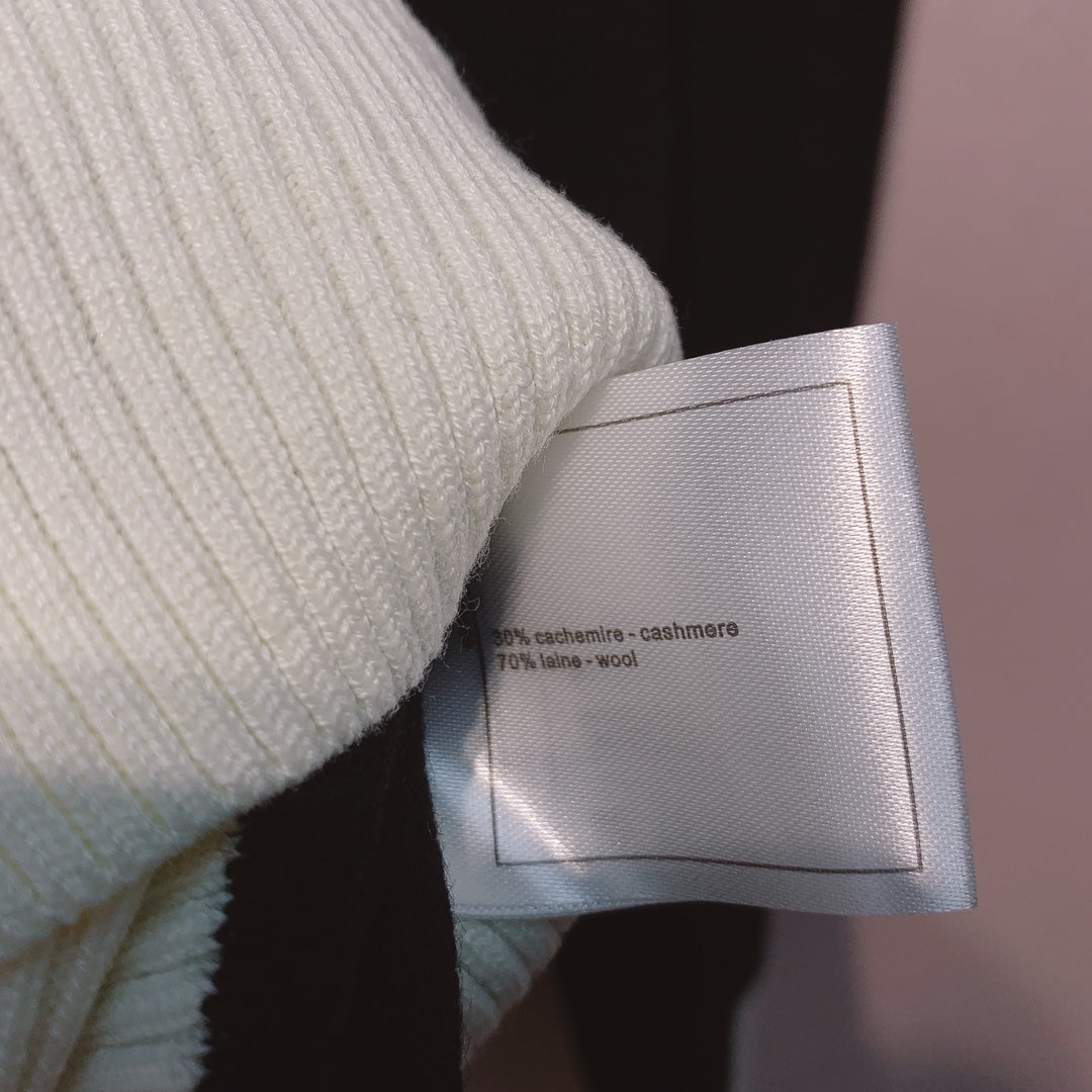 CC 25 Knitted Black and White Contrast Stitching Top Wool 305601