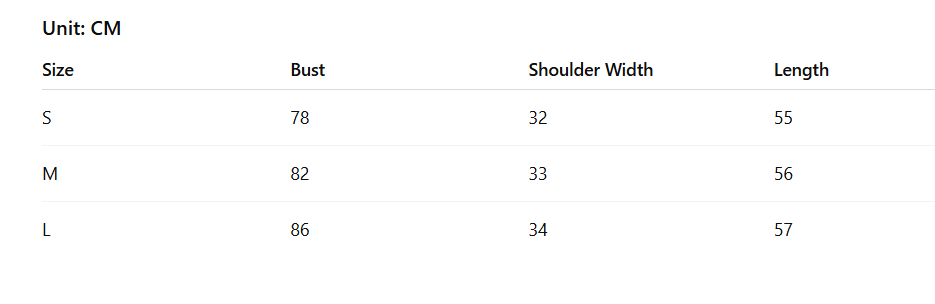 - Size : S, M, L