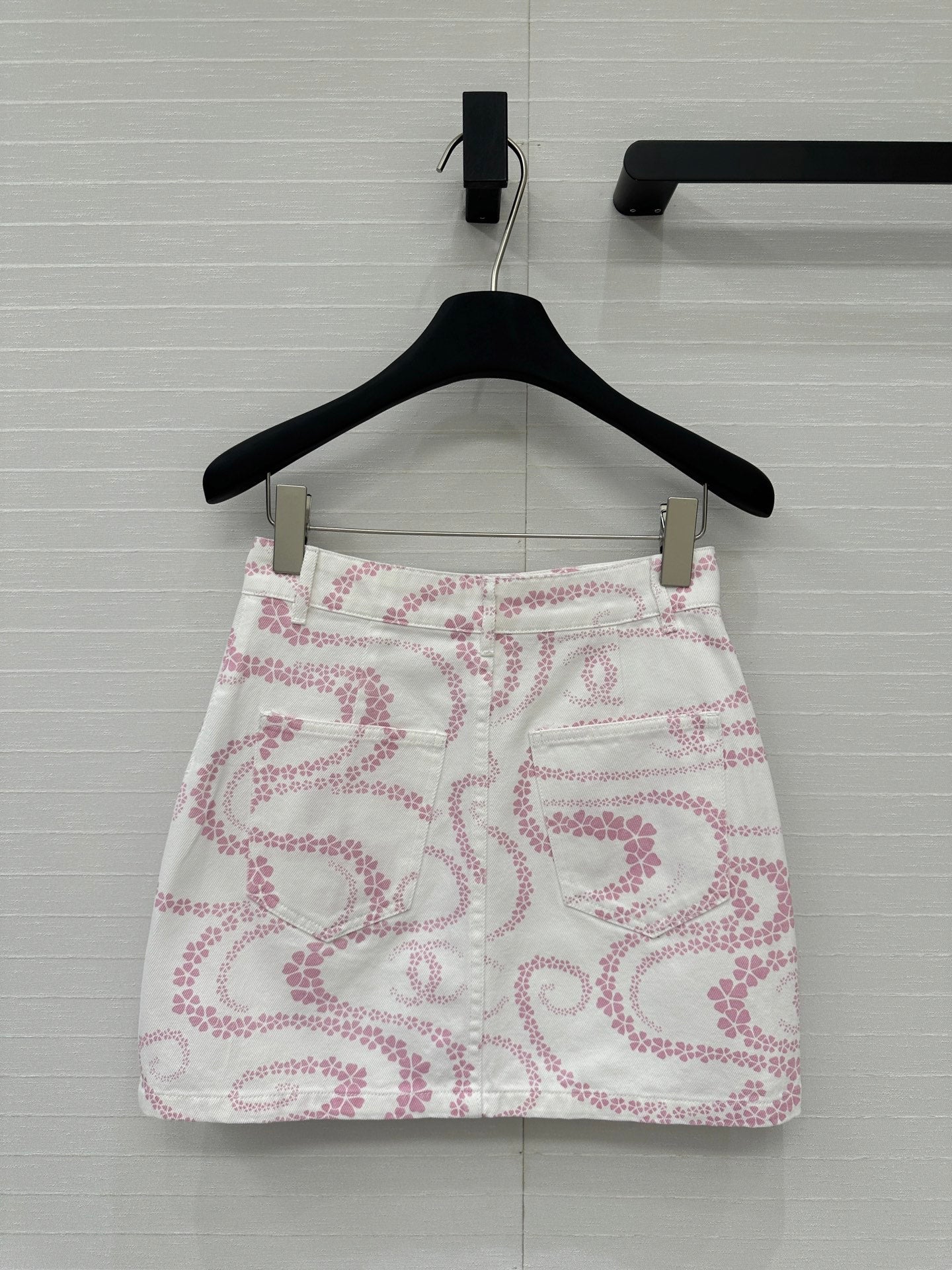 CC 25 Printed Denim Single-breasted Short Skirt Pink White Cotton