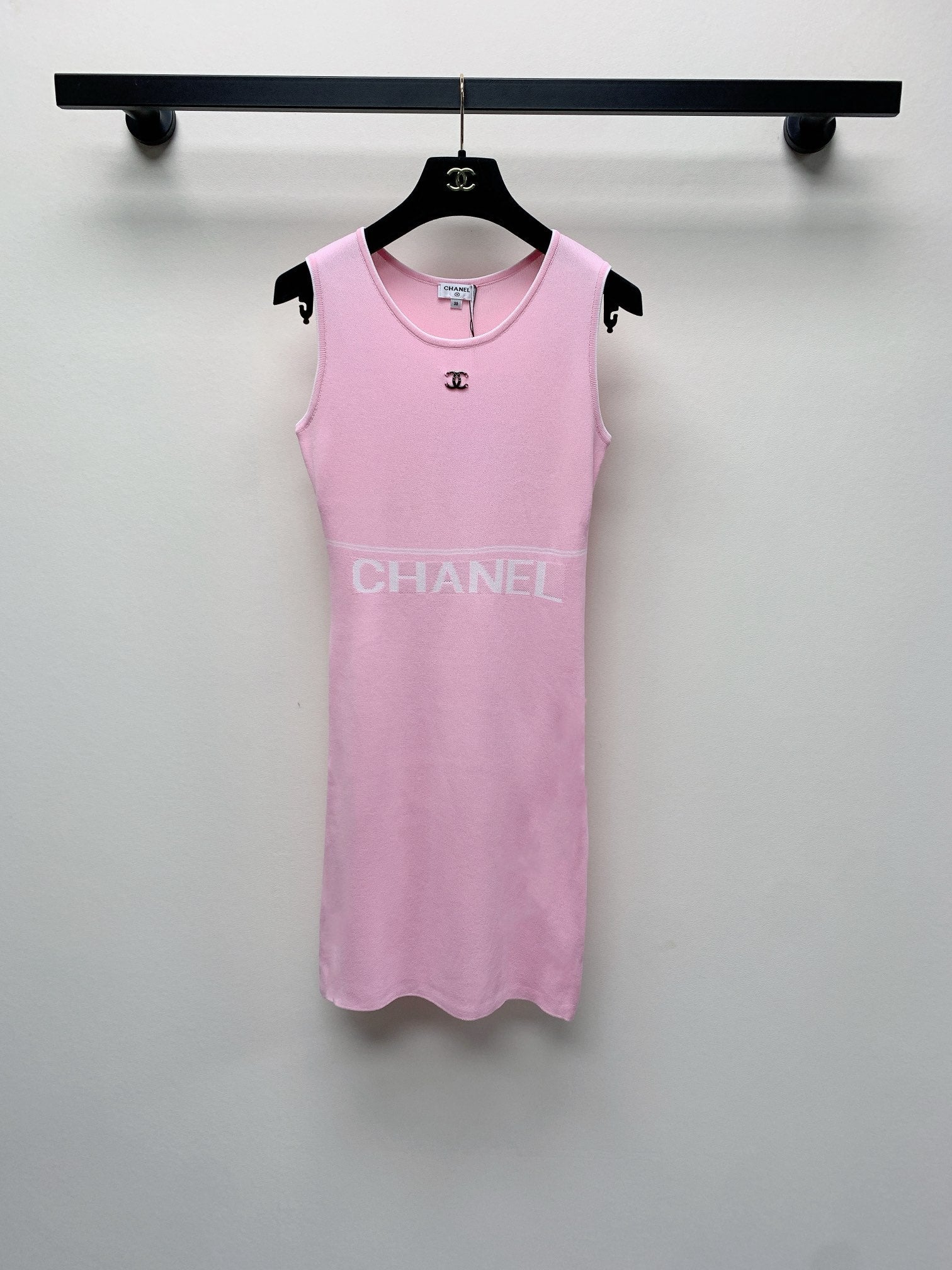 CC 25 Round Neck Knitted Embroidered Logo Vest Dress in Pink 277583