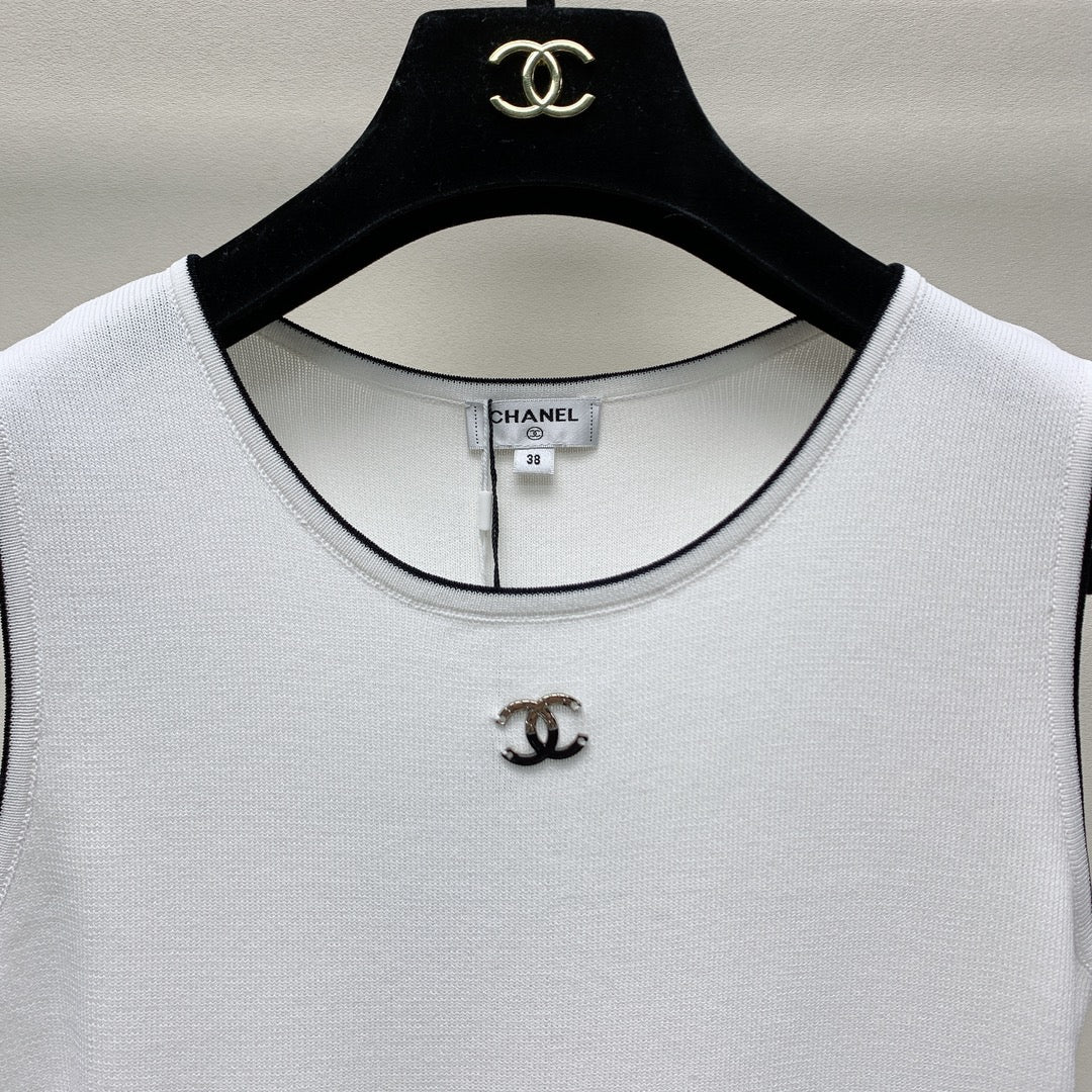 CC 25 Round Neck Knitted Embroidered Logo Vest Dress in White 277584