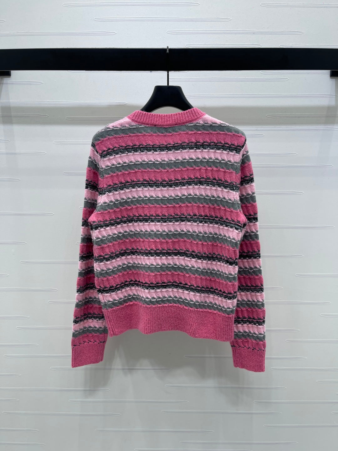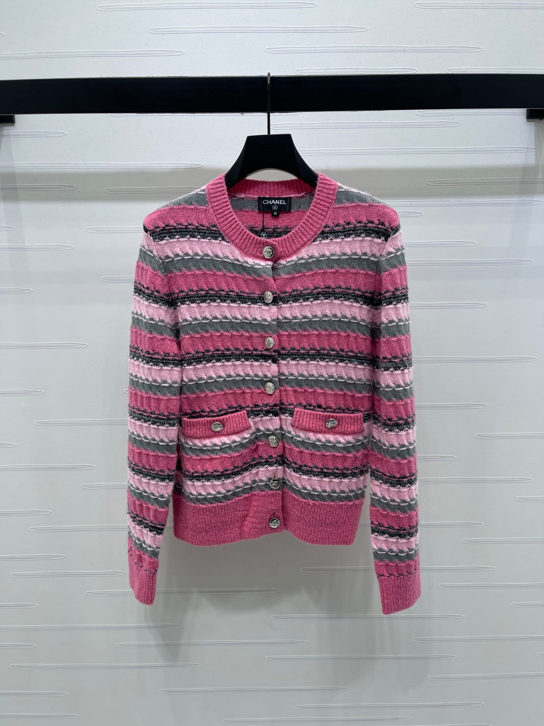 CC 25 Striped Knitted Long-Sleeved Pocket Cardigan Pink Tencel