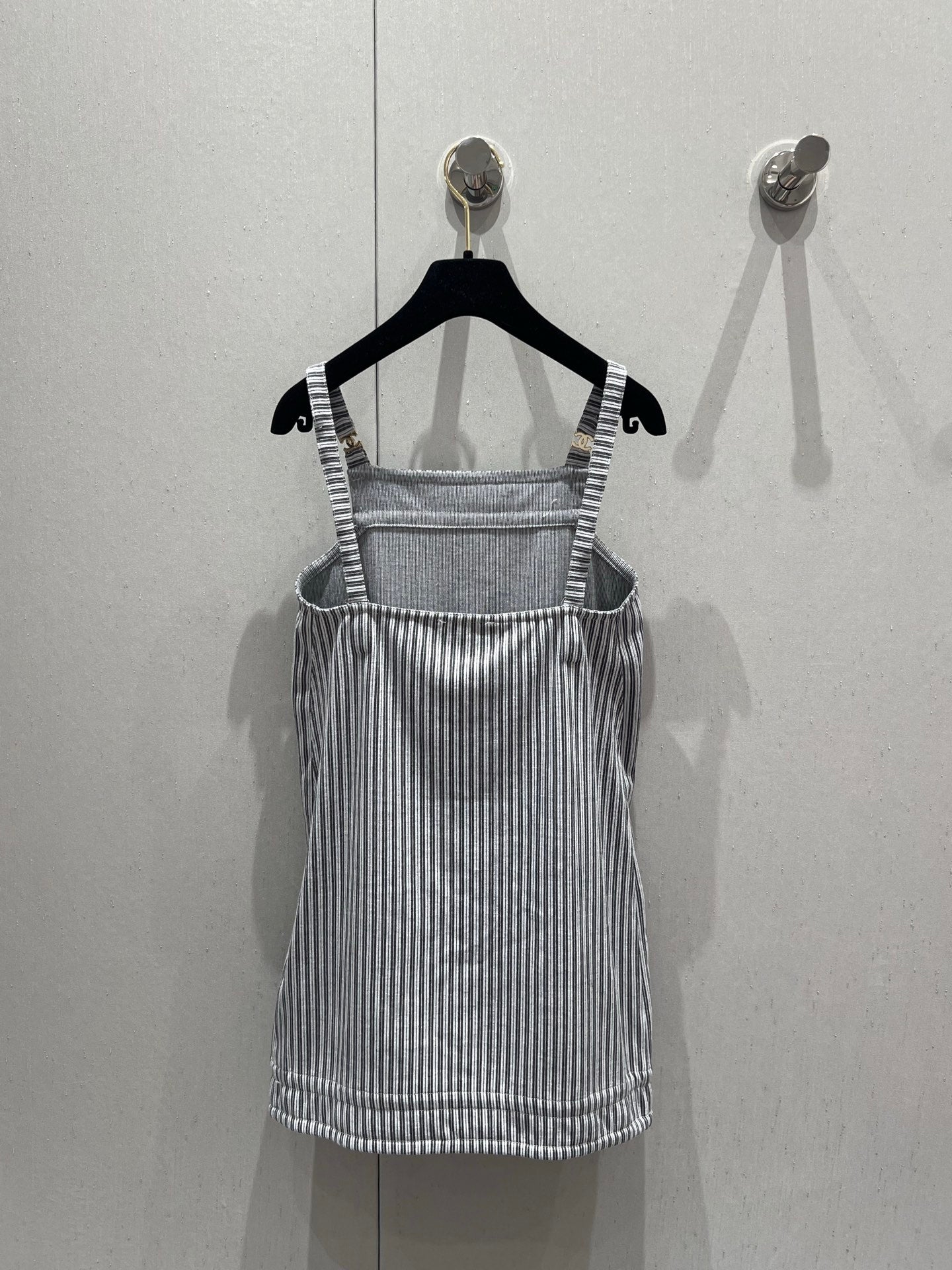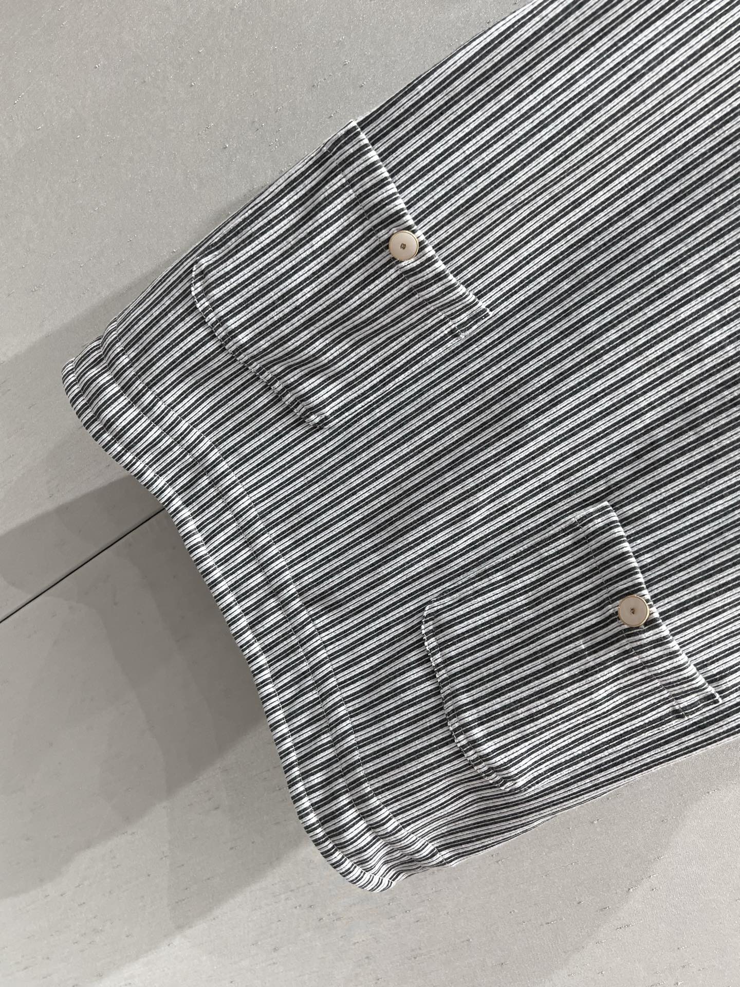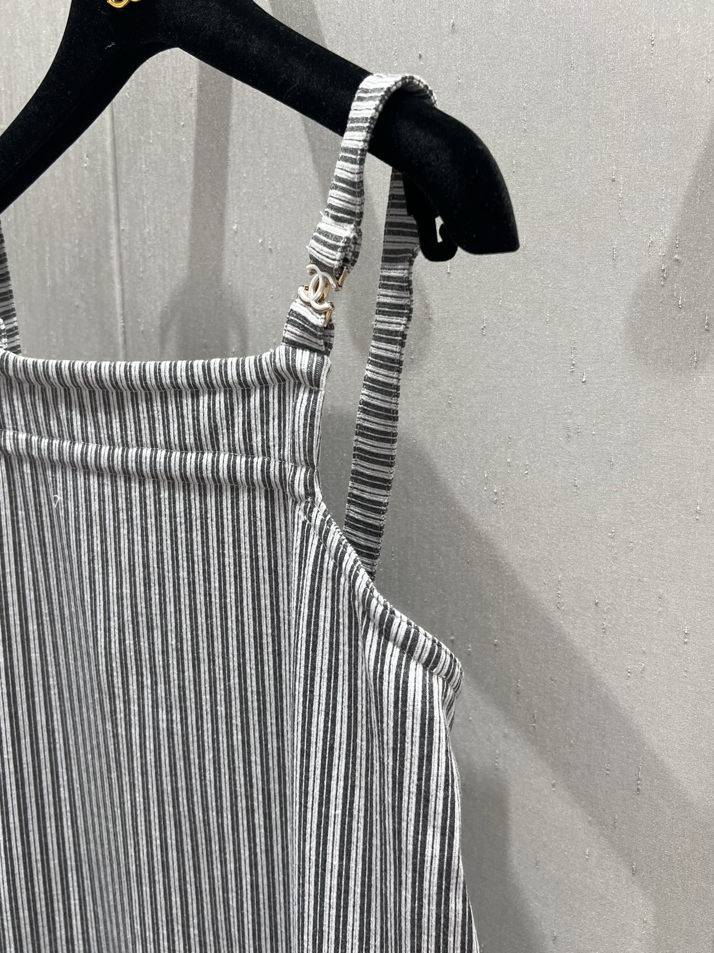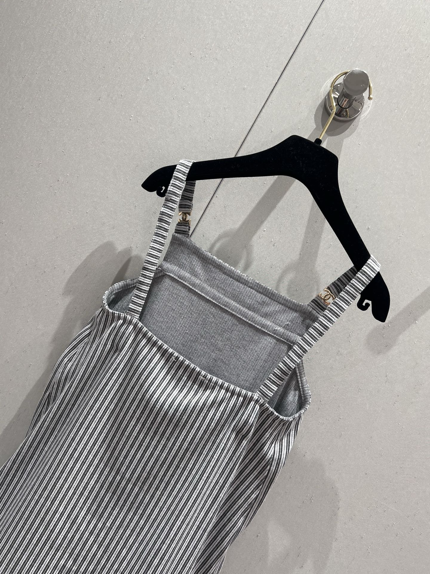 CC 25 Striped Suspender Skirt Gray White Cotton