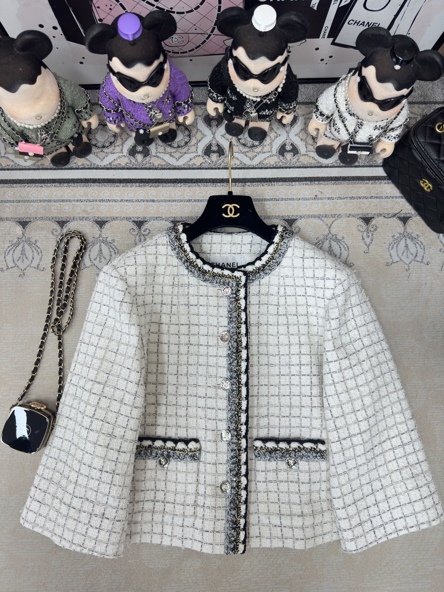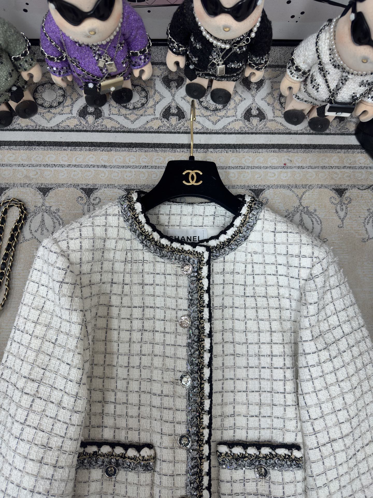 CC 25 Tweed Plaid Jacket White Cotton Polyester 251871