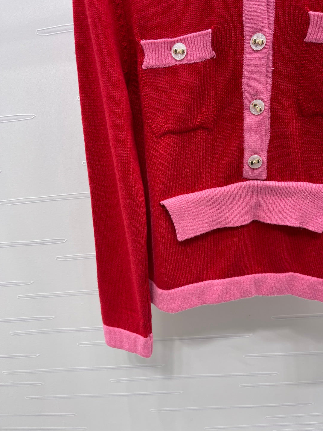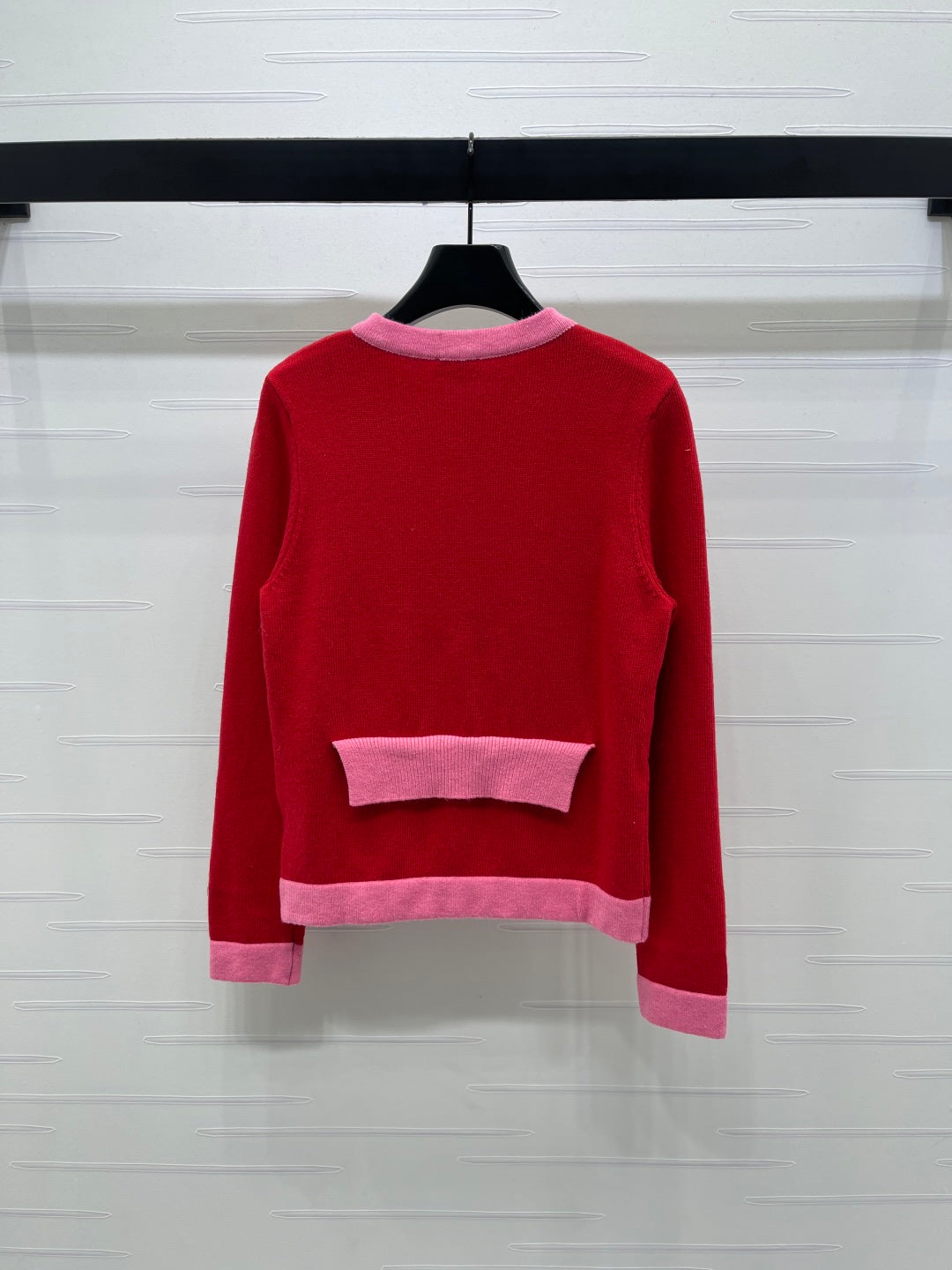 CC 25F Round-Neck Knitted Long-Sleeved Cardigan Red Wool