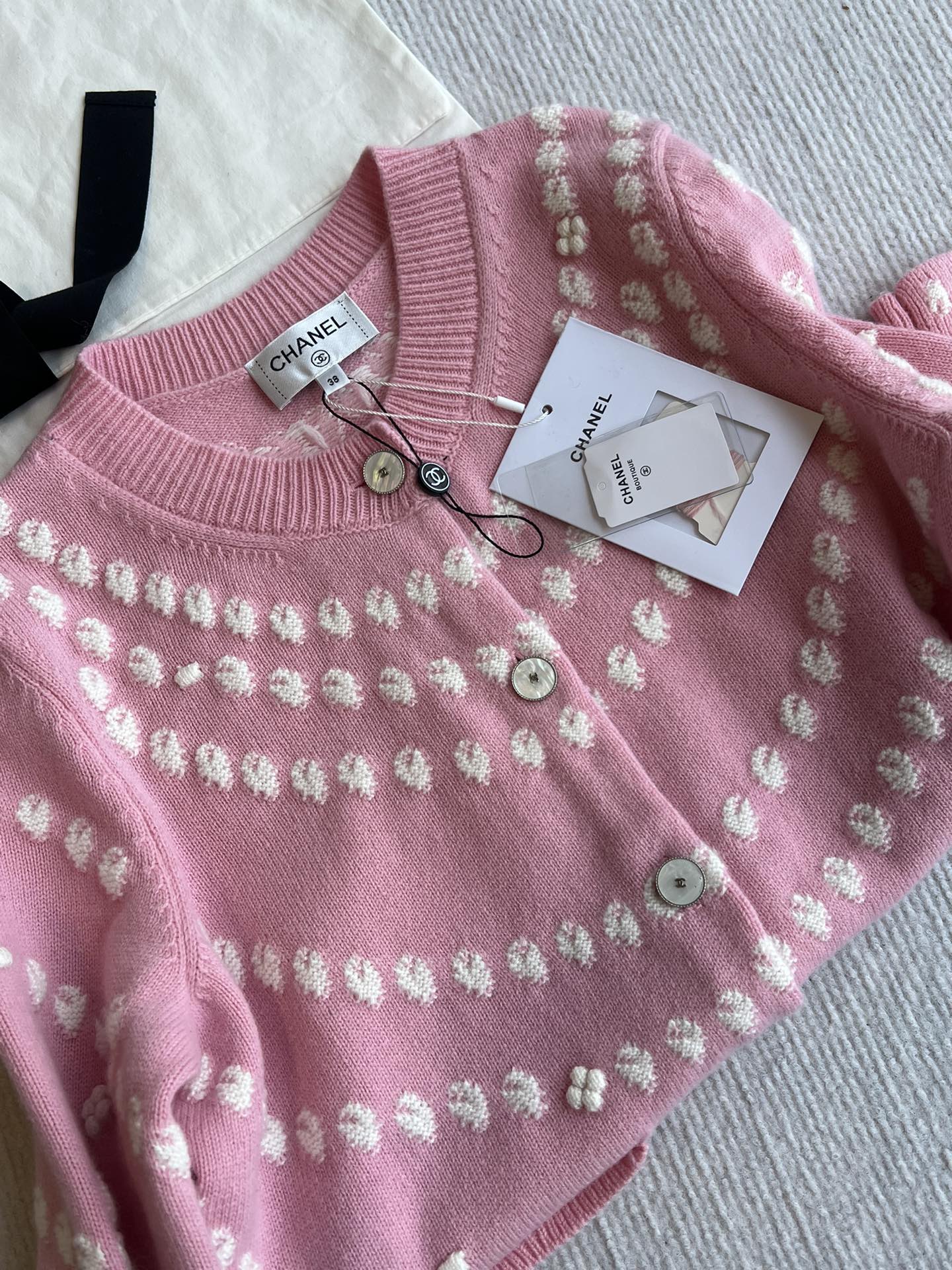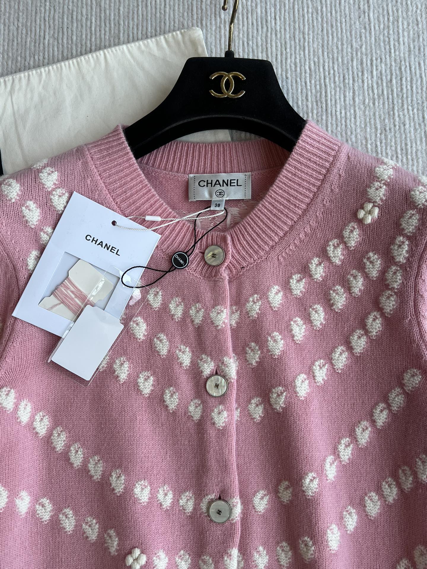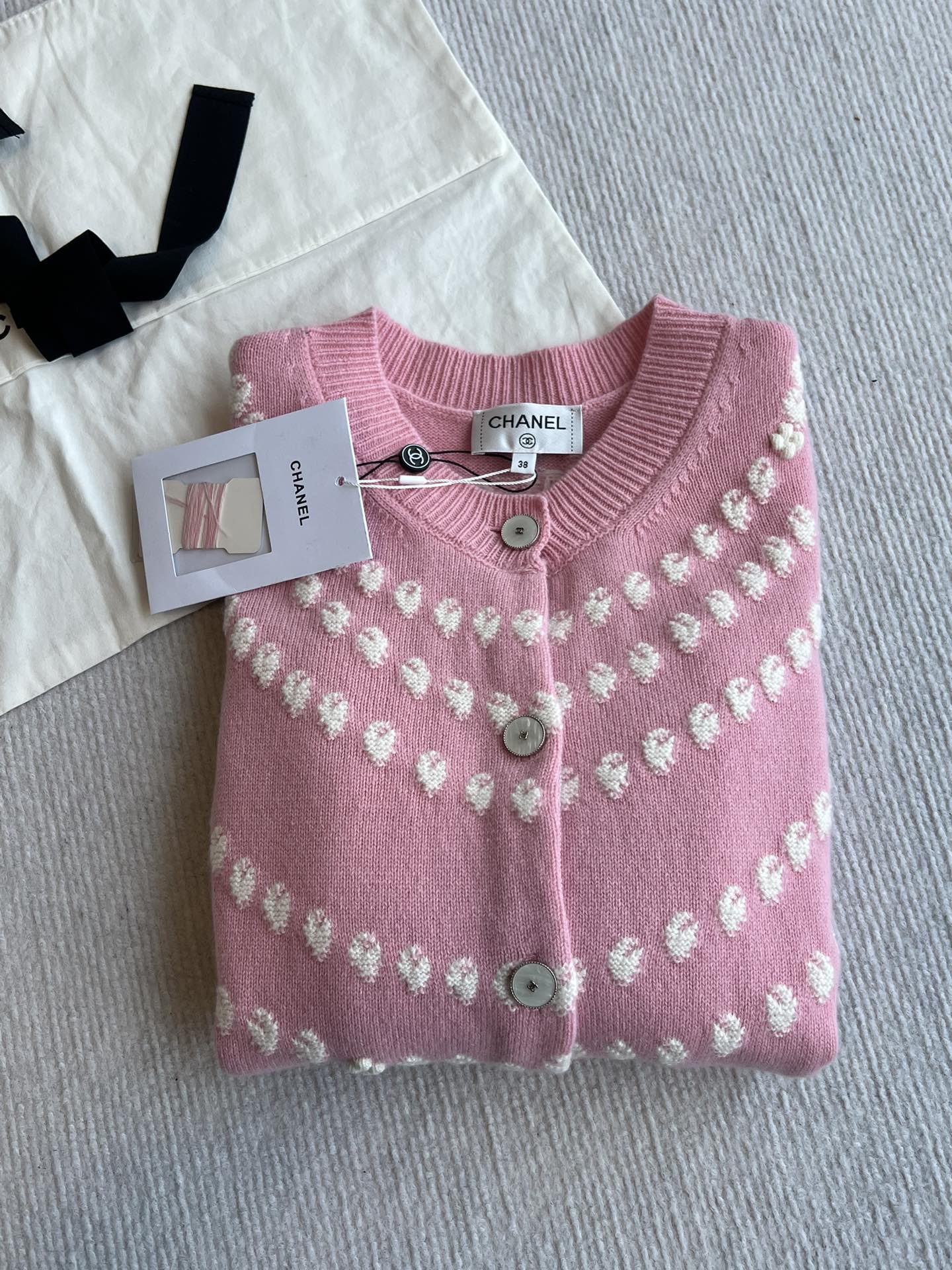 Chanel 25P Cardigan Pink Mix White Cashmere 229516