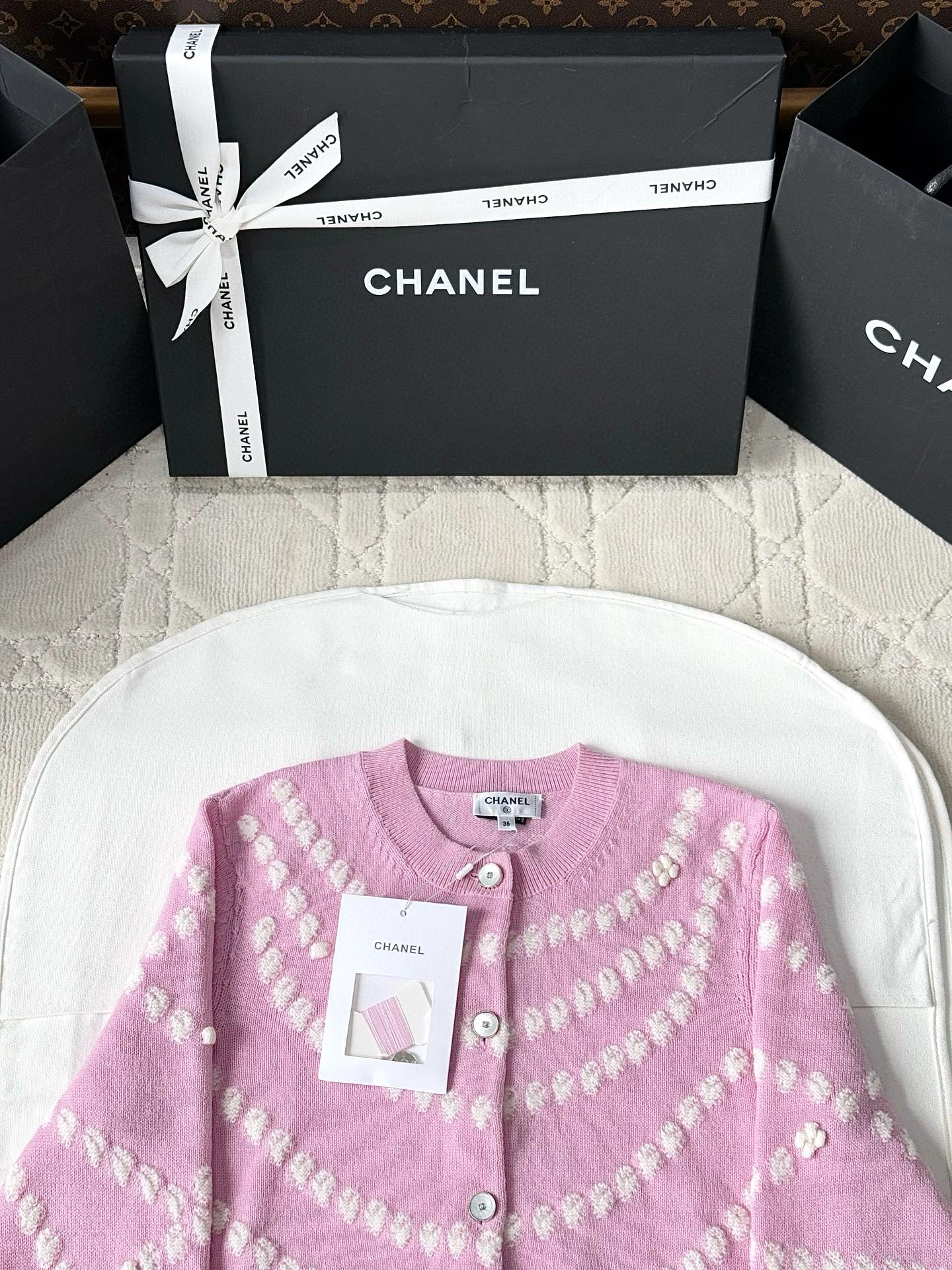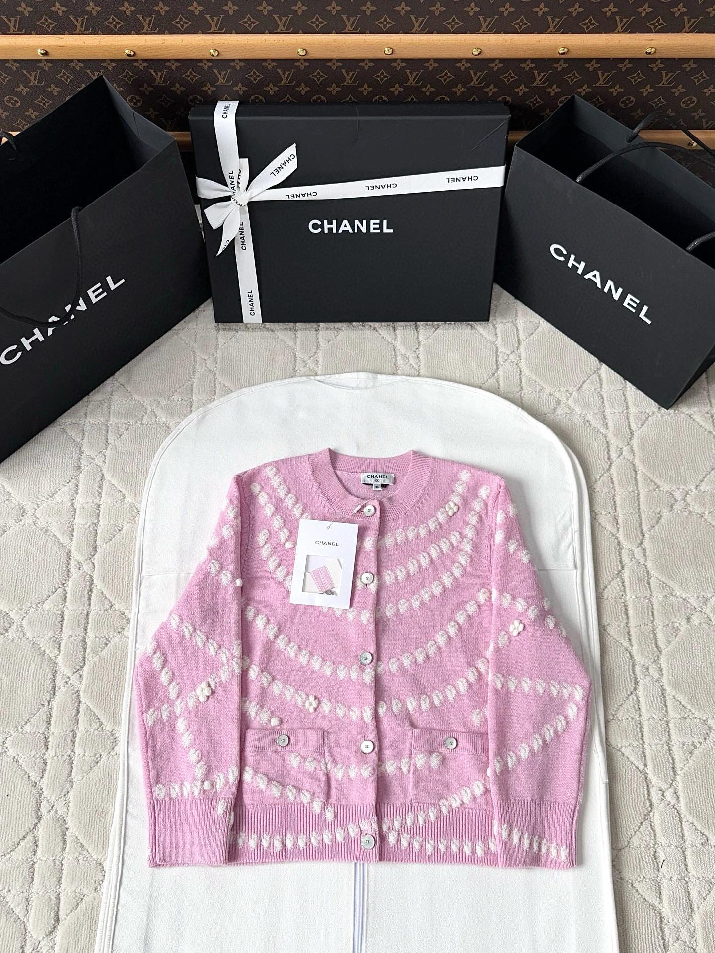 Chanel 25P Cardigan Pink Mix White Cashmere 237302