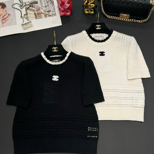 Chanel 25 T-shirt Black White Patchwork Knitted Crewneck