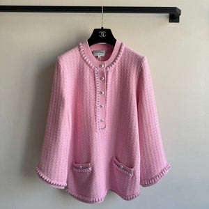 Chanel 25P Long-Sleeve Top Pink Tweed Pearl Buttons