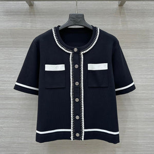CC 25 Embroidered Beaded Short Sleeve Top Cotton