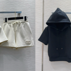 CC Hand-beaded Coco letter U-neck T-shirt Cotton