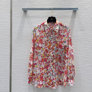 CC Long Floral Shirt Blue mix Colors Silk Cotton