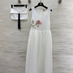 CC Retro Floral Dress White Cotton