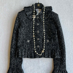 CHANEL HEAVY KNIT CARDIGAN WITH EMBELLISHED FLORAL DETAILS 274876