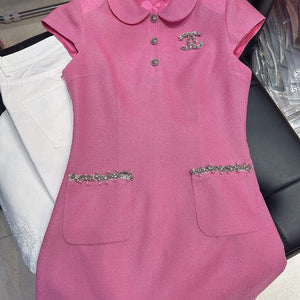 CHANEL SHORT-SLEEVE KNIT DRESS WITH RUFFLED TRIMS 274885
