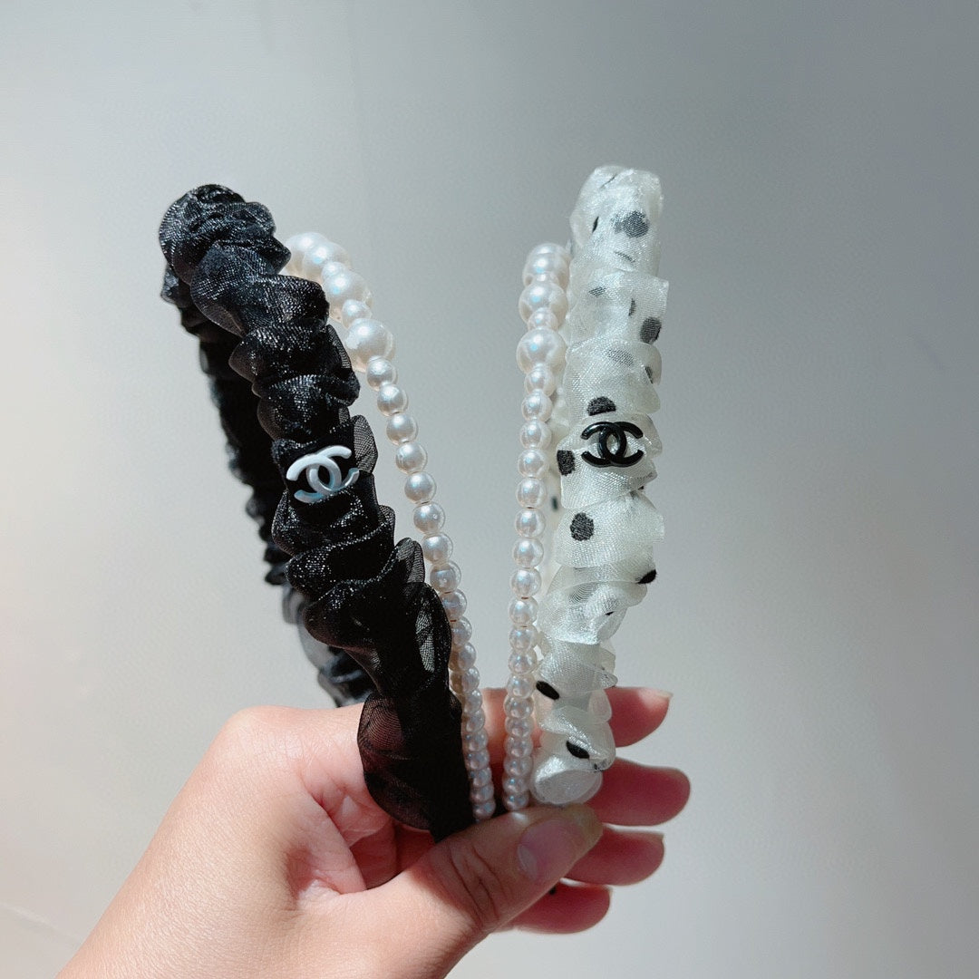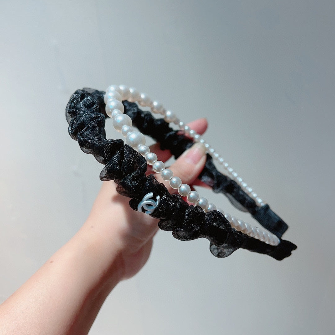 BLACK VOILE FABRIC HAIRBAND WITH PEARL CHAIN 867187